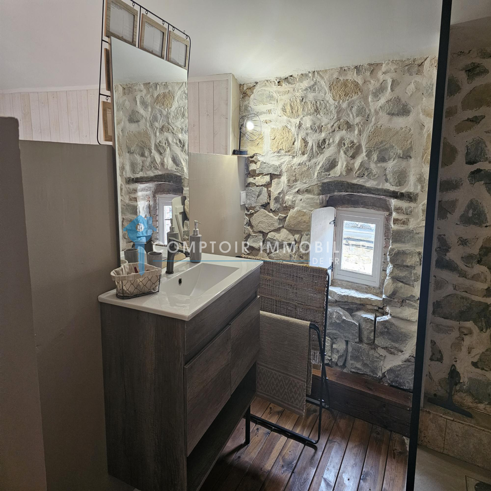 Vous y trouverez cette jolie maison en pierres rénovée avec goût - 80 m² env. elle offre une terrasse de 12 m² - une pièce de vie avec sa cuisine équipée - Une suite parentale - Au 1er étg. une Suite Parentale - wc séparé - et un salon pouvant également servir de chambre