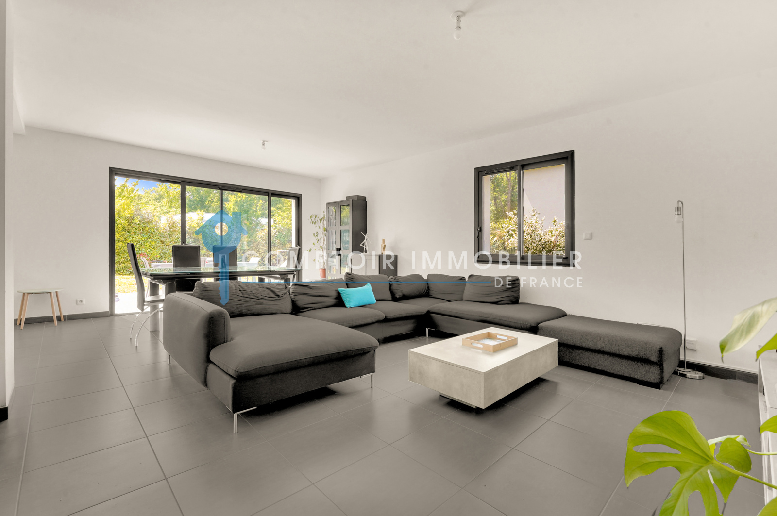 Dominant un environnement verdoyant d'une rare quiétude, à l’abri de l’agitation tout en restant proche des commodités de Rouffiac-Tolosan, cette maison contemporaine de 2015 est une véritable pépite rare sur le marché.