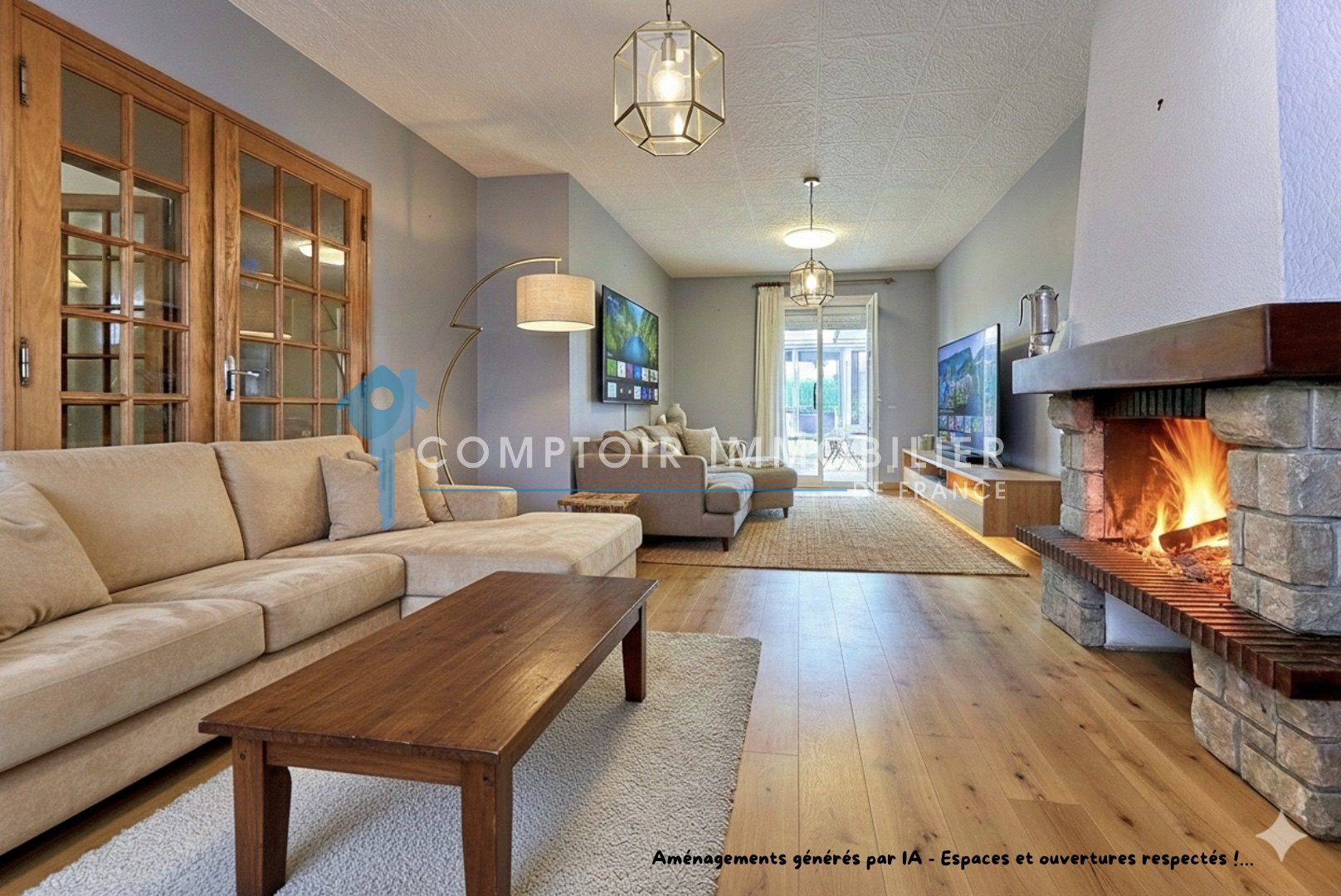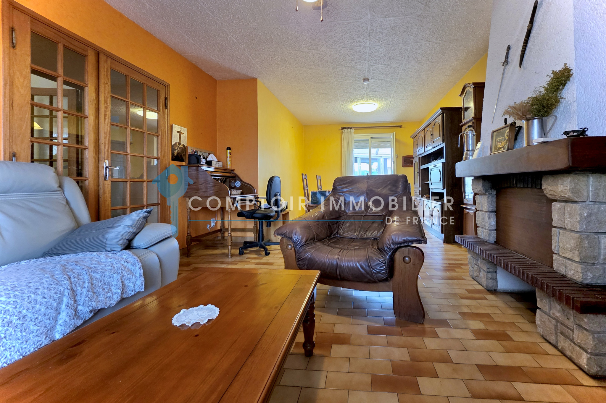A vivre : un séjour traversant agrémenté d'une cheminée insert, donnant sur une très grande véranda (soit un très bel espace de vie supplémentaire d’env 26 m2), une cuisine spacieuse, récente et entièrement équipée, une salle-d’eau avec douche à l’italienne et double-vasques, également rénovée, 2 chambres avec placards, wc séparés…