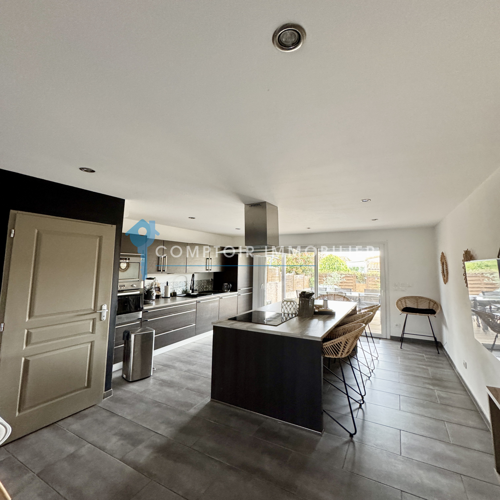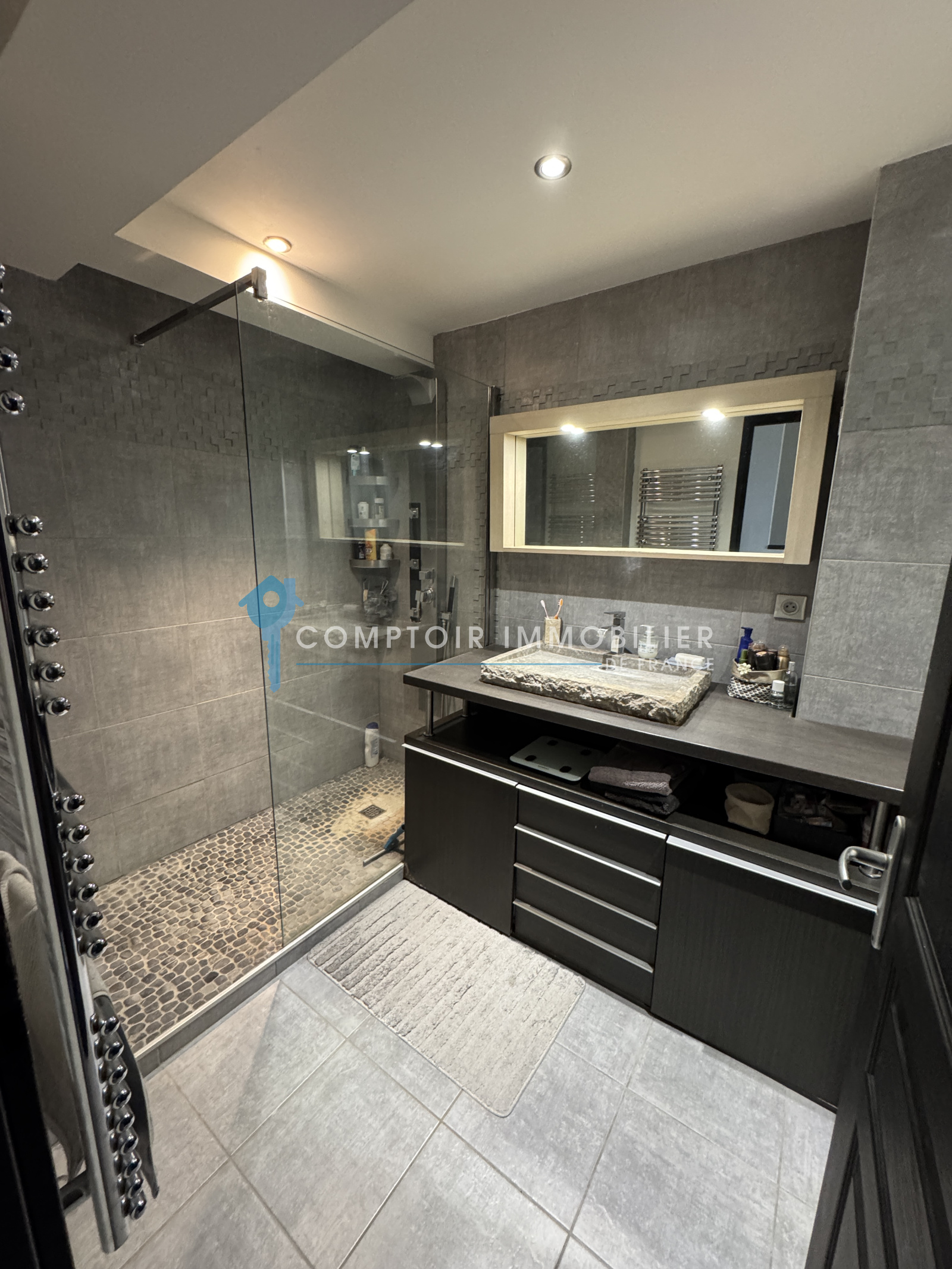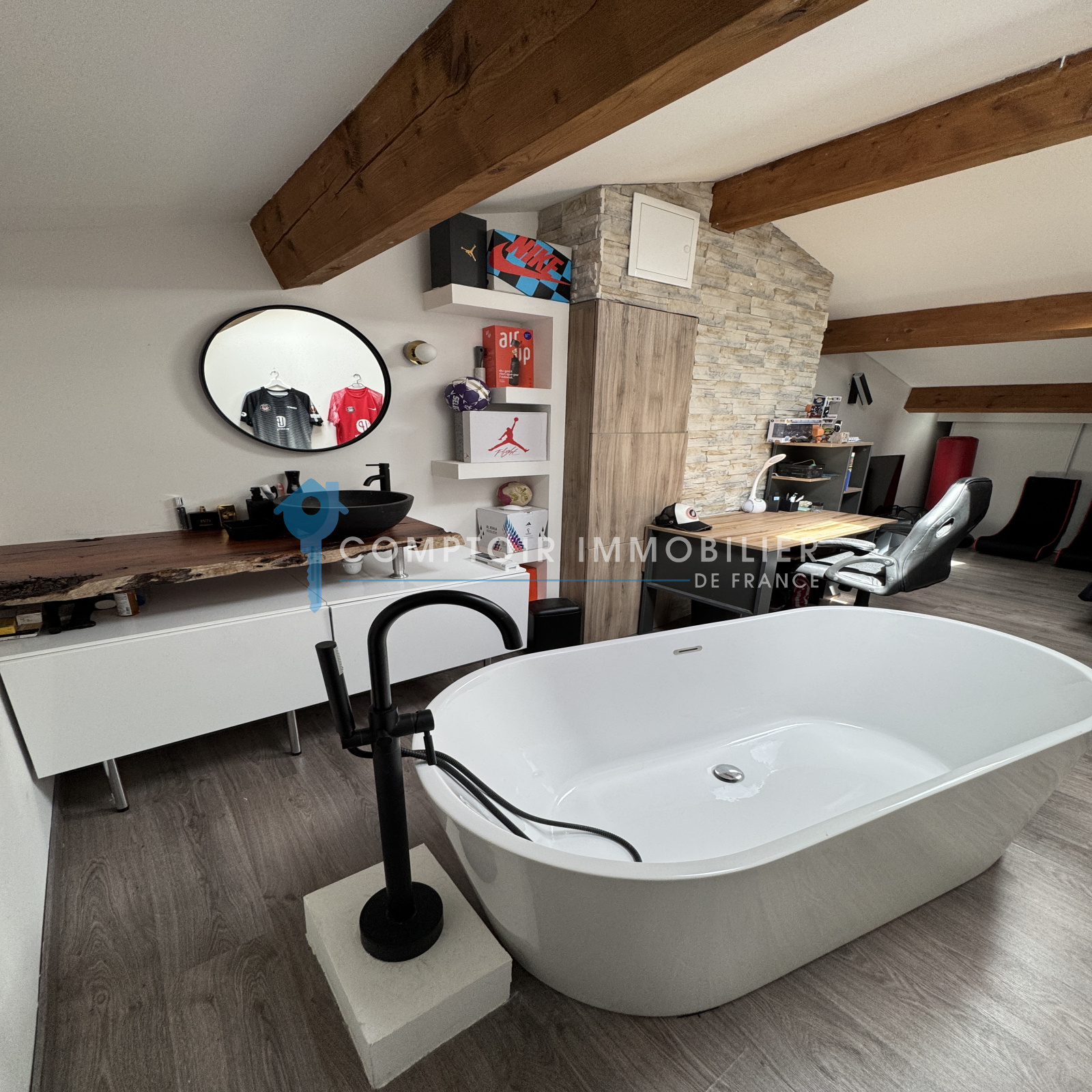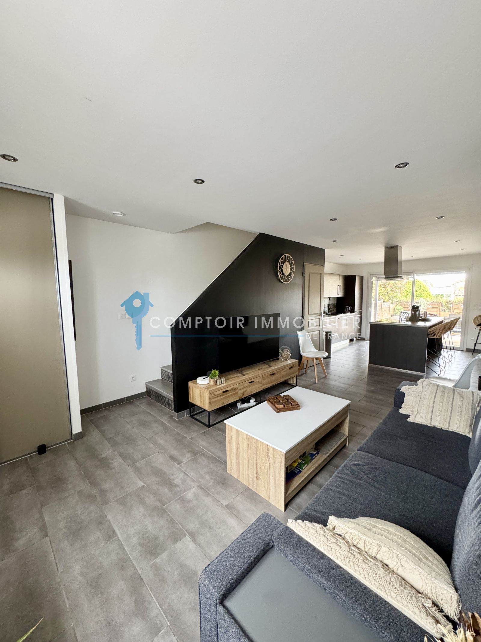 Au rez-de-chaussée, profitez d’un vaste séjour lumineux avec cuisine américaine équipée de qualité, ouvrant sur une agréable terrasse/patio d’environ 35 m², parfaite pour vos moments de détente ou repas en extérieur.