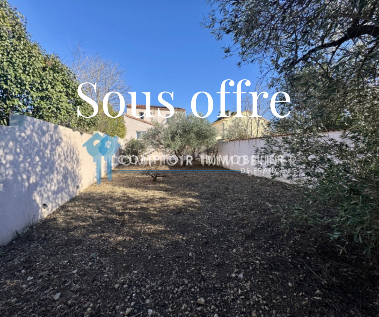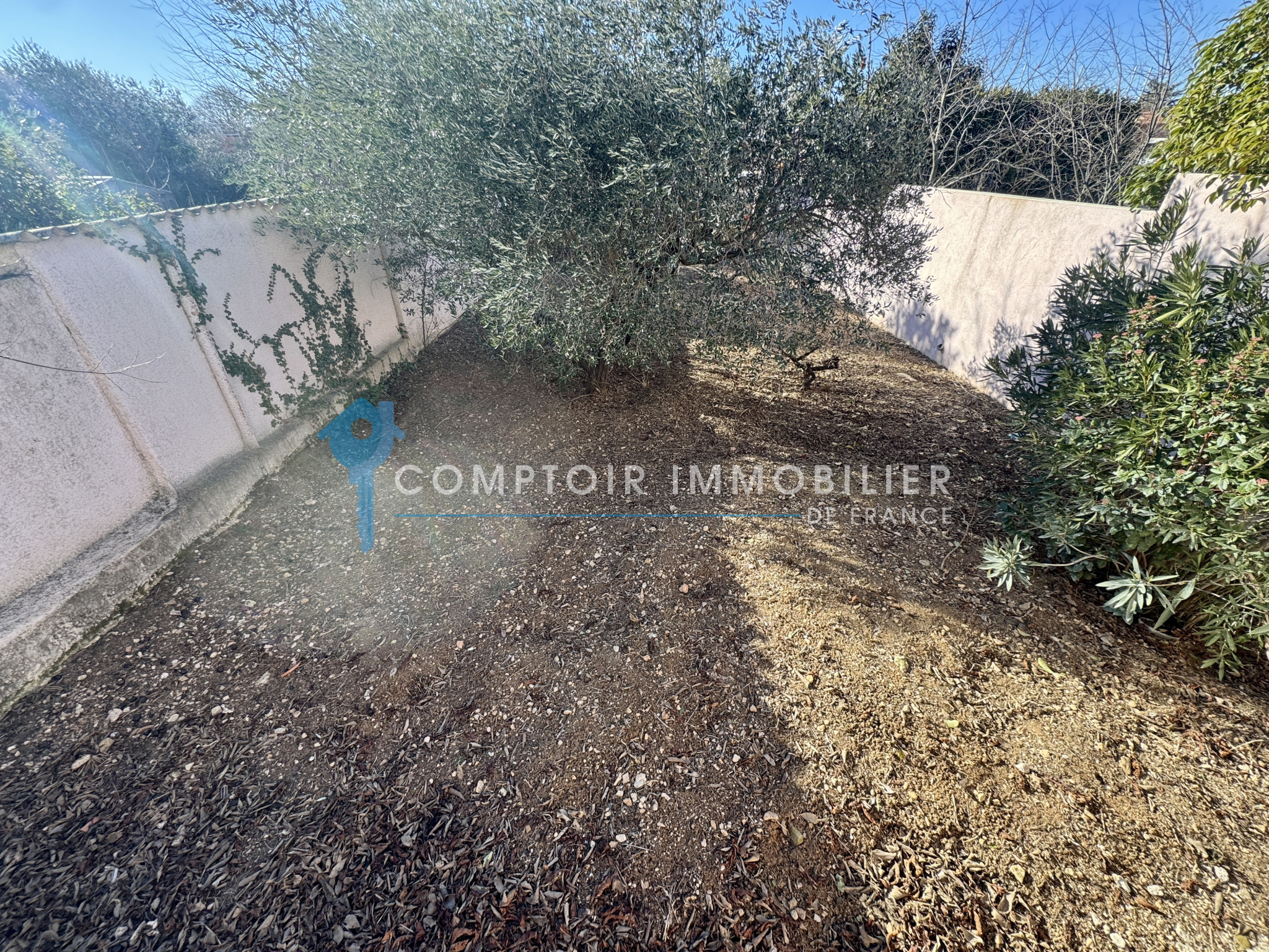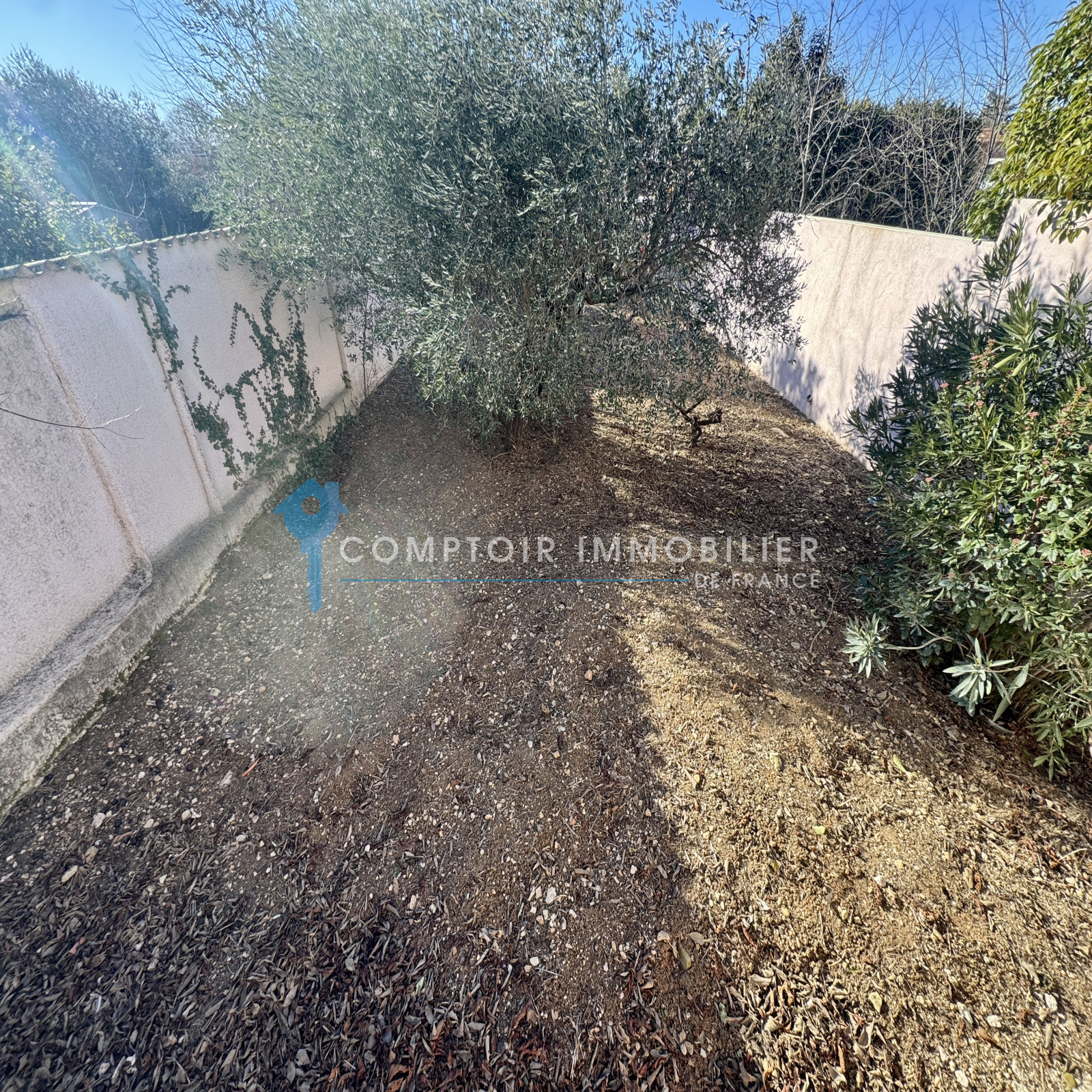 Terrain de 427 m², joliment arboré avec des oliviers, possibilité piscine.