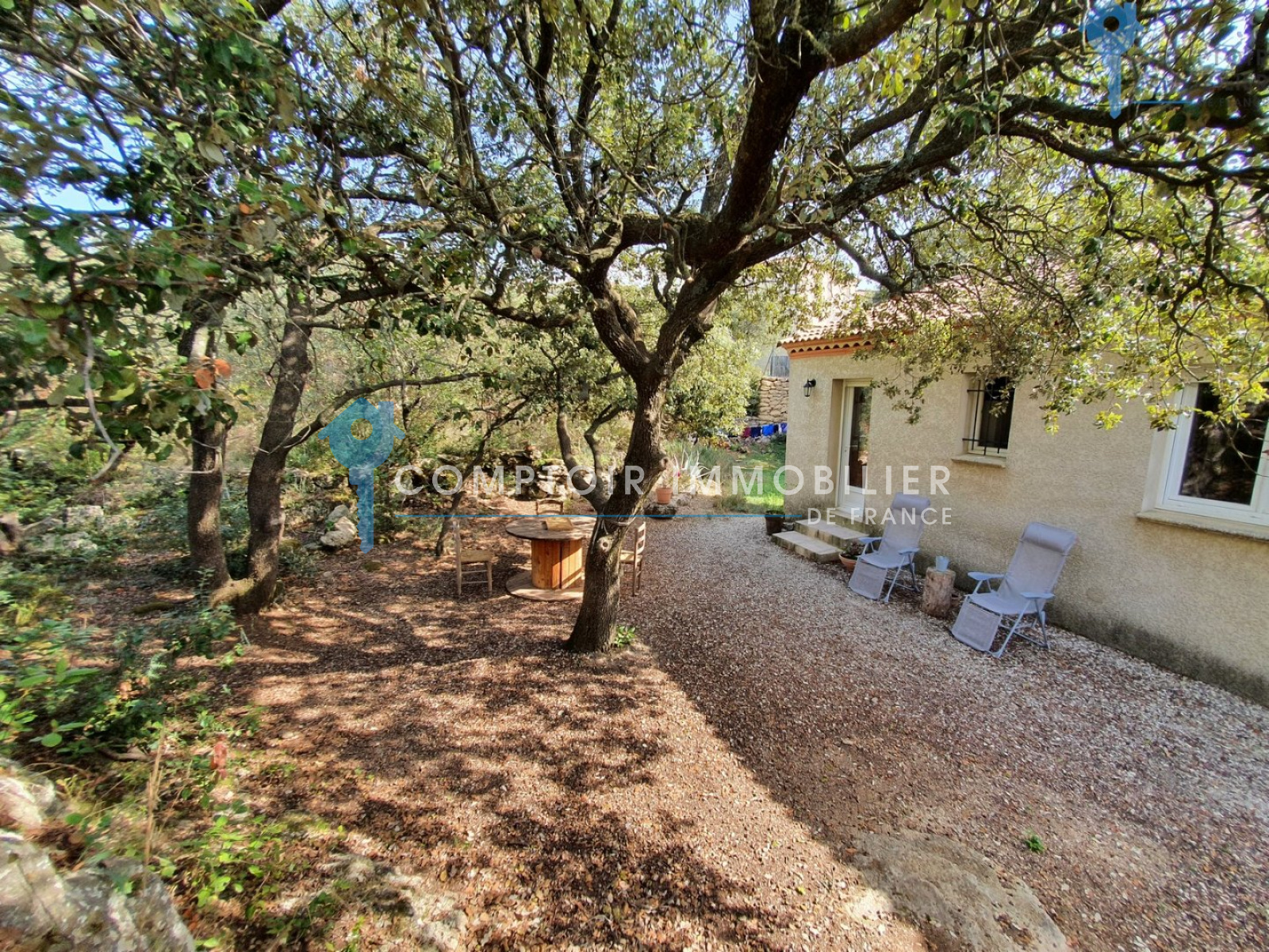 Proche Uzès et Pont du Gard : Villa récente plain pied 4 chambres dont 1 studio indépendant sur terrain arboré d'essences méditerranéennes en limite de garrigue (possibilité achat terres municipales). Dans un environnement calme et verdoyant pouvant accueillir une piscine, ce bien dispose d'un garage avec possibilité mezzanine donnant accès à une immense cave. Réagencement possible de la pièce à vivre. Situé dans un très beau village provençal avec commerces, à 25 minutes des gares TGV d'Avignon et Nîmes, à moins d'1 heure de la mer, ce bien ne manque pas d'atouts. Honoraires charge vendeur Prix moyens des énergies indexés au 01/01/2021 (abonnement compris). Montant estimé des dépenses annuelles d'énergie pour un usage standard : entre 1 080 € et 15 820 € par an. COMPTOIR IMMOBILIER DE FRANCE - Bruno CAMPOREALE - 06 67 97 52 76 - EI Agent commercial RSAC N° 879 820 249 - Ville du greffe : NIMES - Plus d'informations sur www.cif-immo.com (réf. 15438)