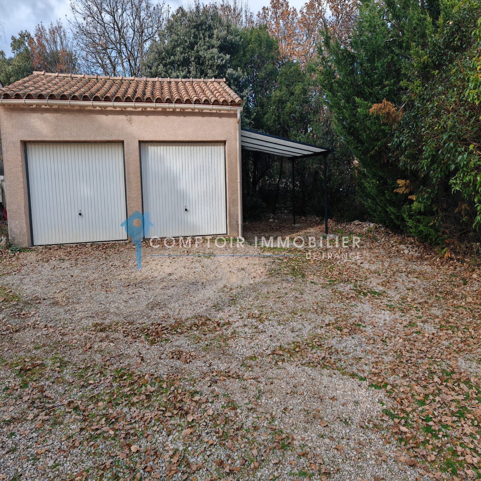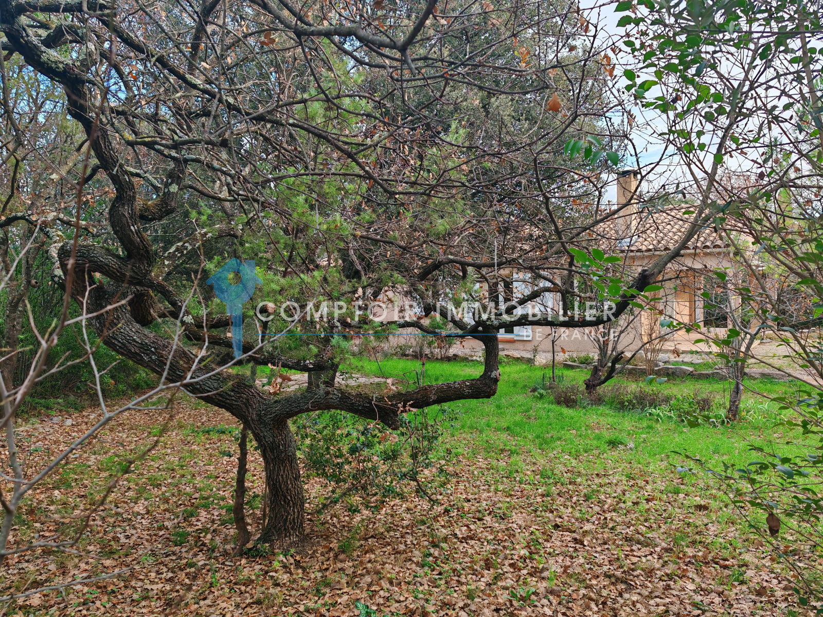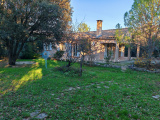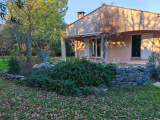 SAINT MARTIN DE LONDRES proche, Dans un écrin de verdure sur 1415 m² env de terrain , au calme, de plain pied à 5 mn de toutes commodités, superbe VILLA F 5 d'une superficie habitable de 98 m² + grand garage, chalet. Séjour ouvrant sur terrasse, cuisine indépendante, trois chambres, SDB -SD - WC et SD - WC.