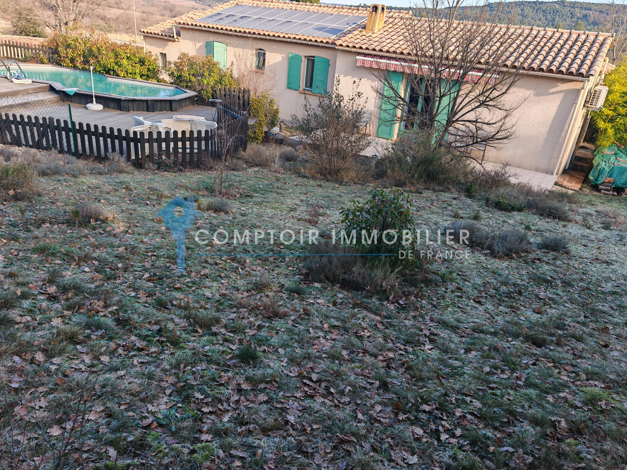 Proche de Saint Martin de Londres au calme, environement campagne priviliégié à 5mn de toutes comodités, un revenu annuel attractif gräce à une installation photovoltaïque. Superbe Villa plain-pied F6 d'une superficie habitable de 102 m² environ, piscine, ateliers, garage sur terrain 1500 m² environ. Séjour avec poêle à bois , cuisine indépendante, quatre chambres, salle d'eau - wc, wc. Bien RARE alliant qualité de vie, tranquilité et rentabilité. A SAISIR !