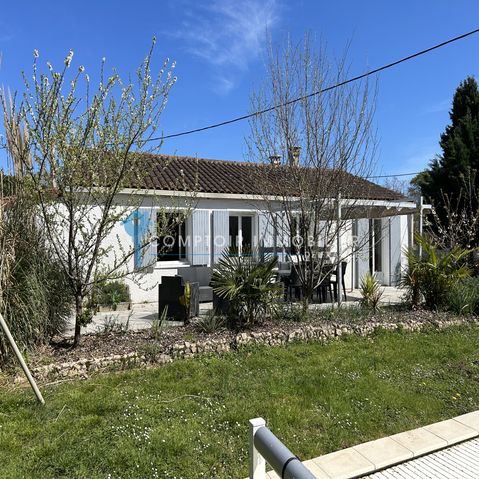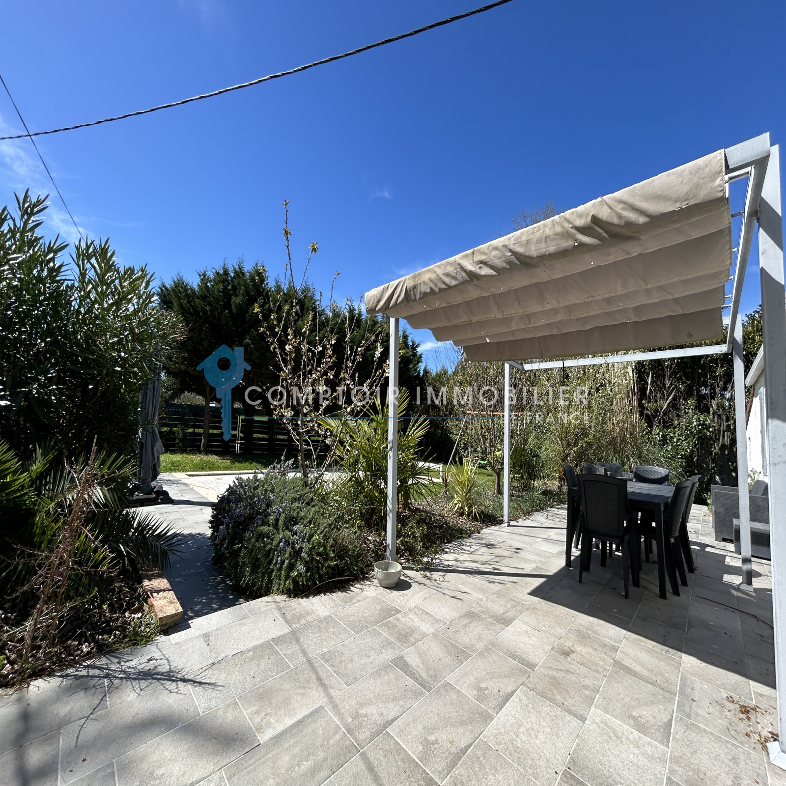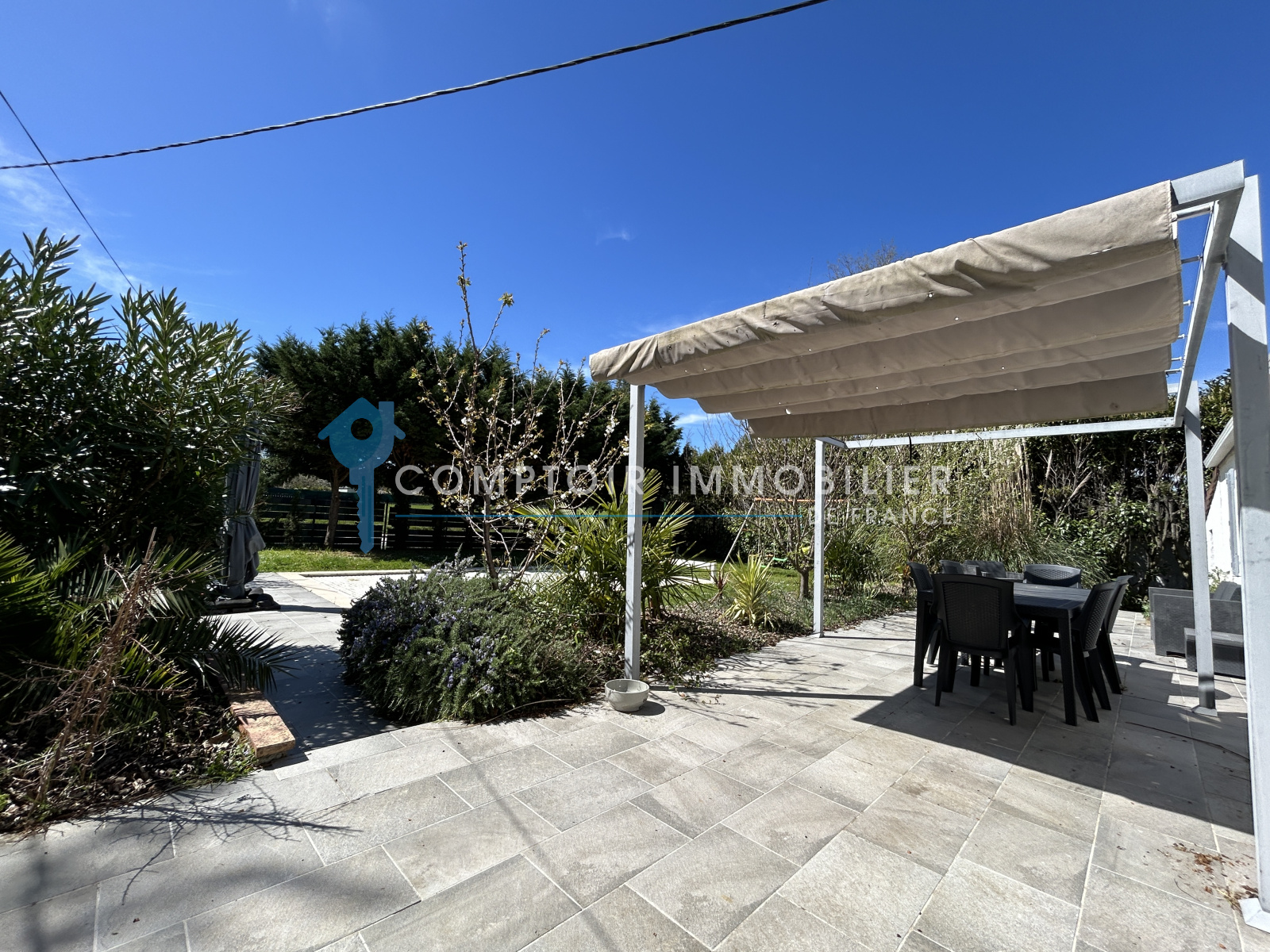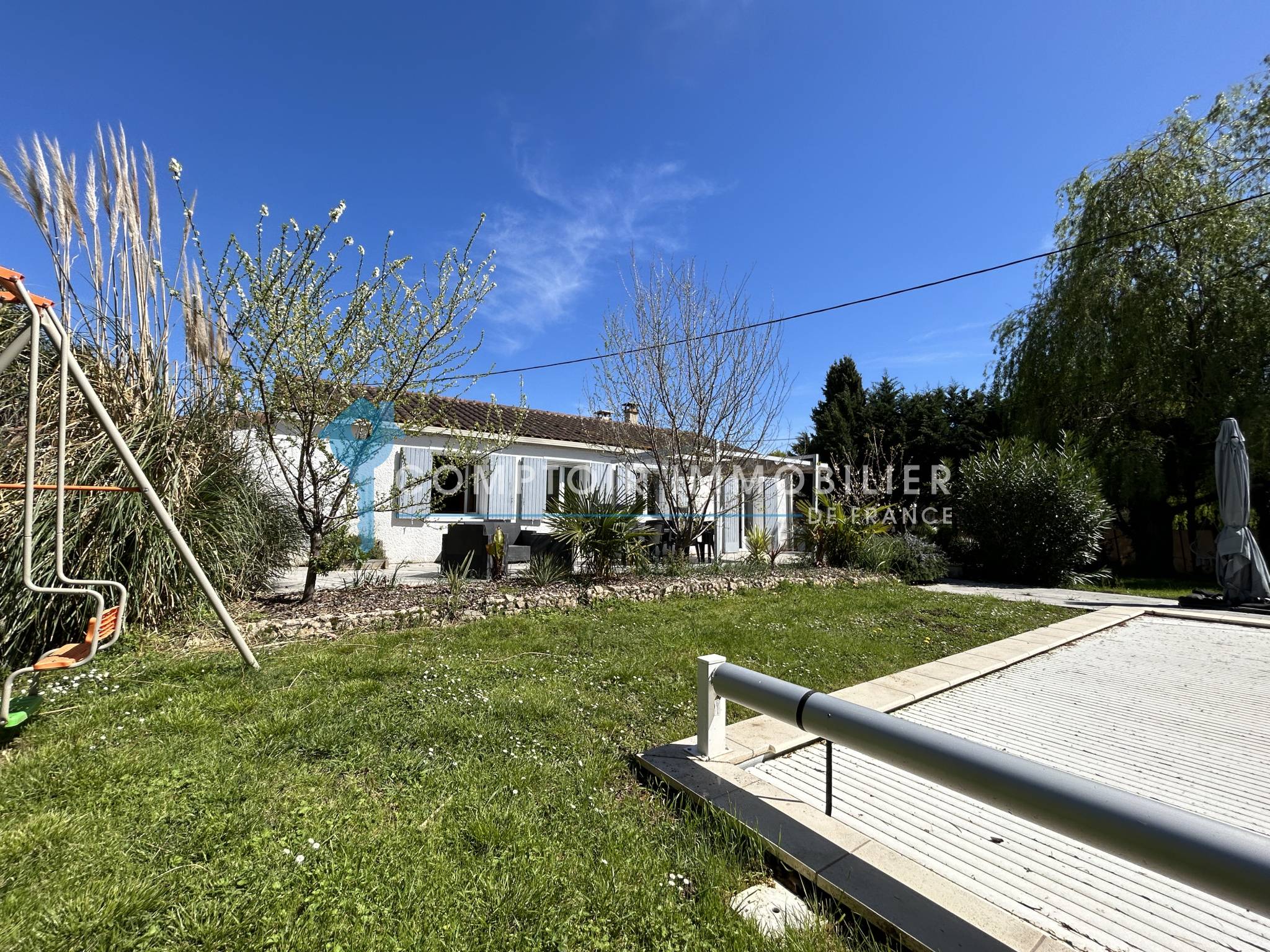 À l'extérieur, vous trouverez une très belle piscine 8x4 avec volets roulants électriques au sein d'un grand jardin paysagé et arboré.