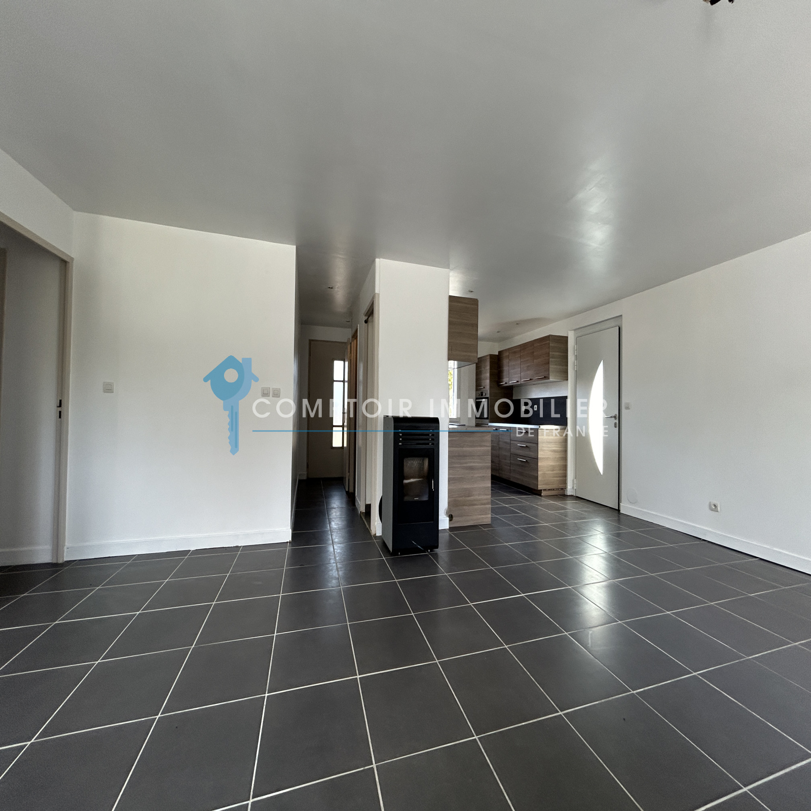 Cette maison se compose d'une entrée avec rangements, d'un bel espace de vie lumineux de 50 m ² avec cuisine ouverte équipée et aménagée, un poêle à granulés, 3 chambres dont une parentale avec salle d'eau, une salle de bain.