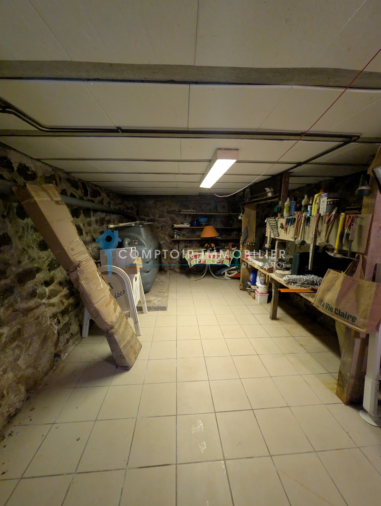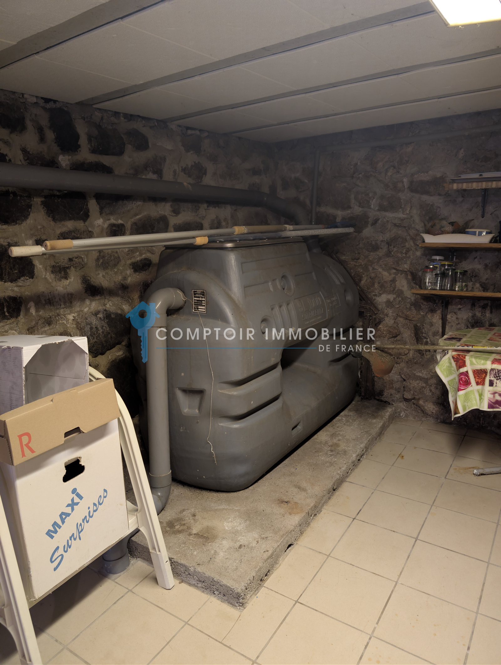 Le rez-de-chaussée se compose d'une vaste cave de 35 m2 environ avec une douche, une fosse toute eau, ainsi qu'un chauffe-eau.