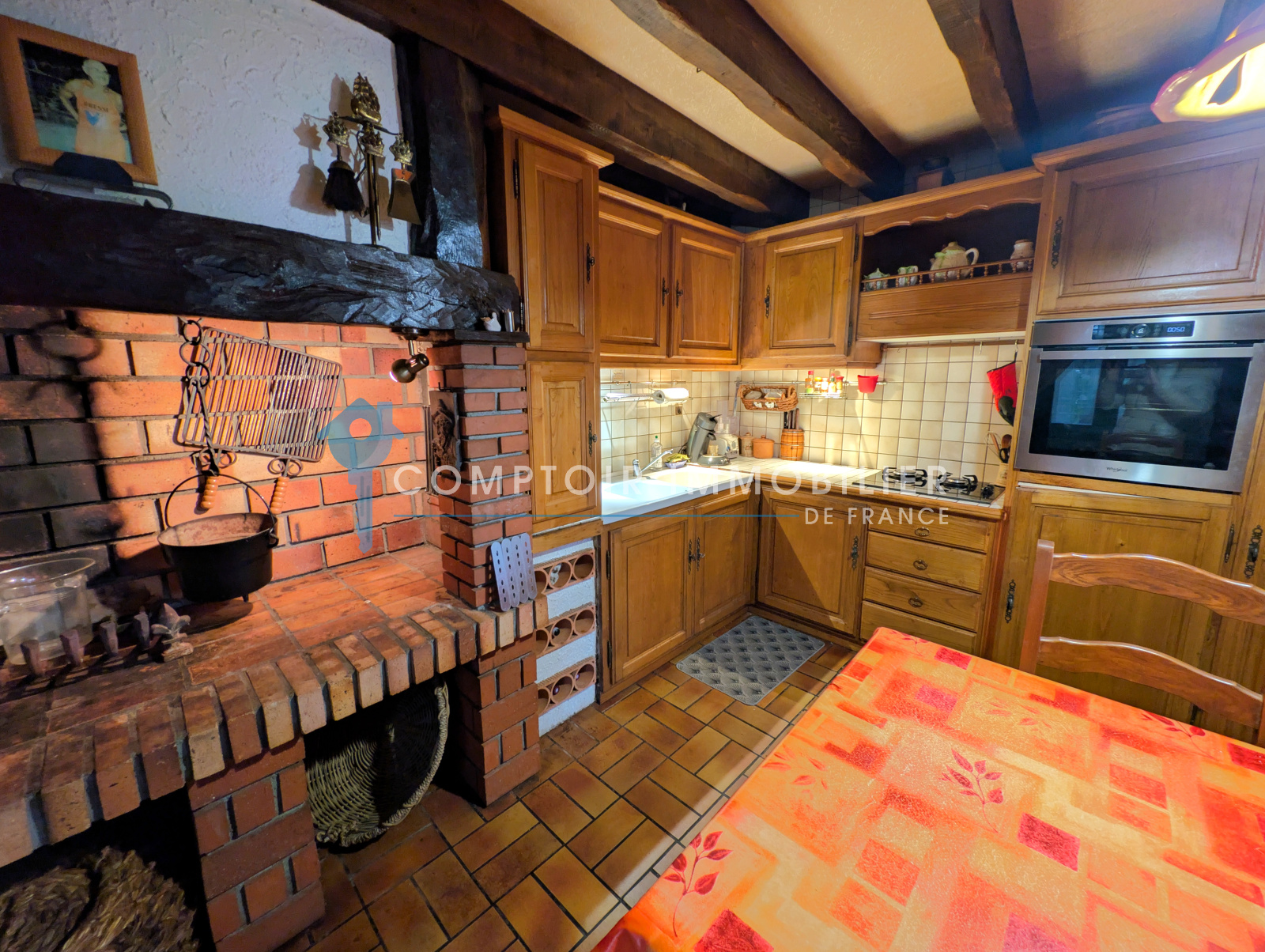 Le système de chauffages est assuré par des convecteurs électriques, il existe également une jolie cheminée près du coin cuisine.