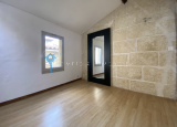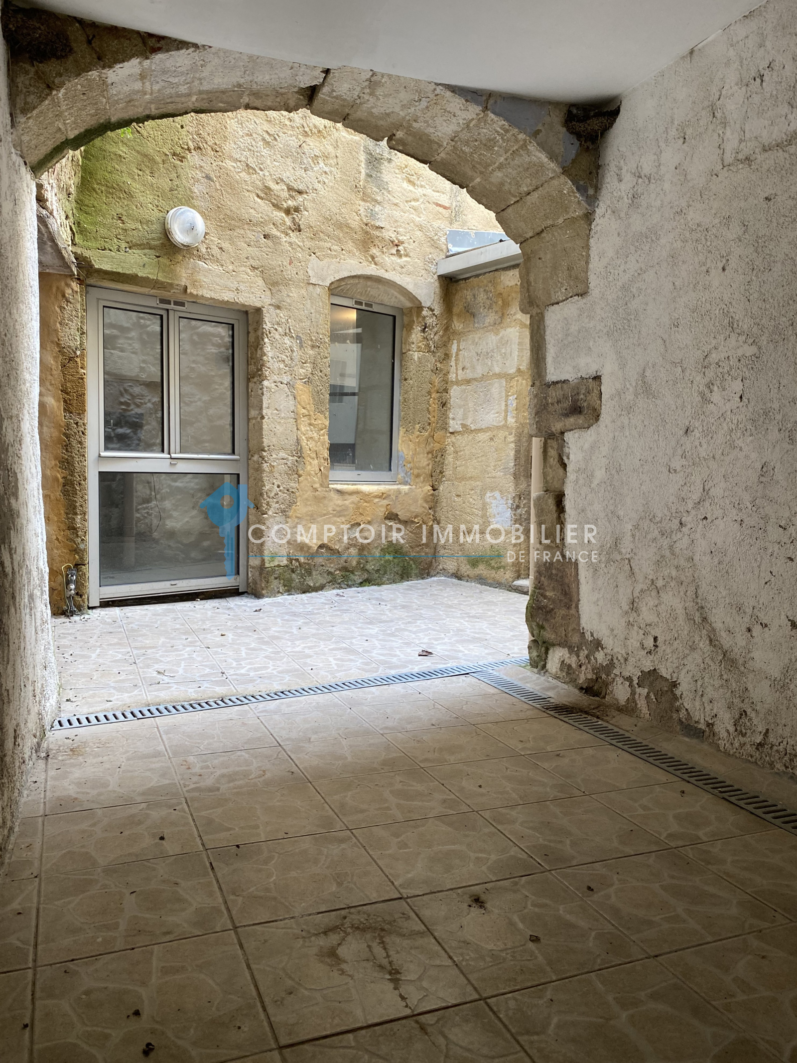Elle dispose d'une entrée principale de type porche couvert idéal pour y stationner moto ou vélo, donnant sur une petite cour à l'entrée, d'une grande pièce de vie avec cheminée, de deux chambres, un dressing et un bureau, et d'une salle d'eau avec wc.