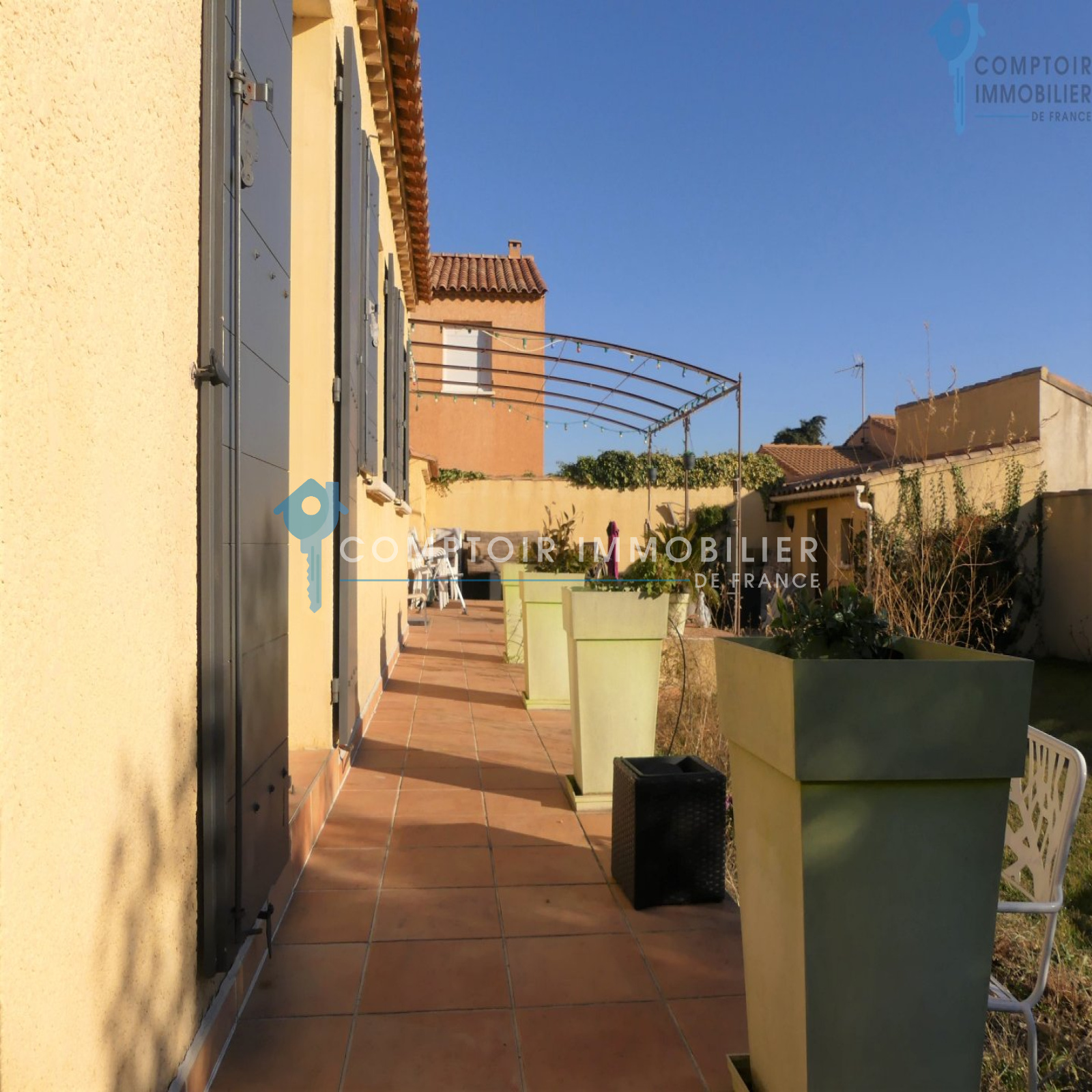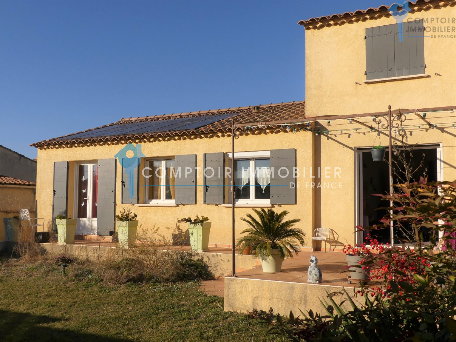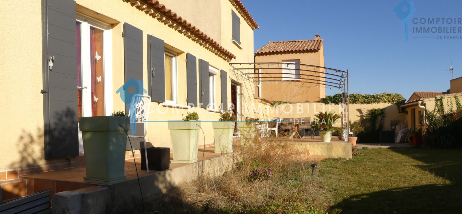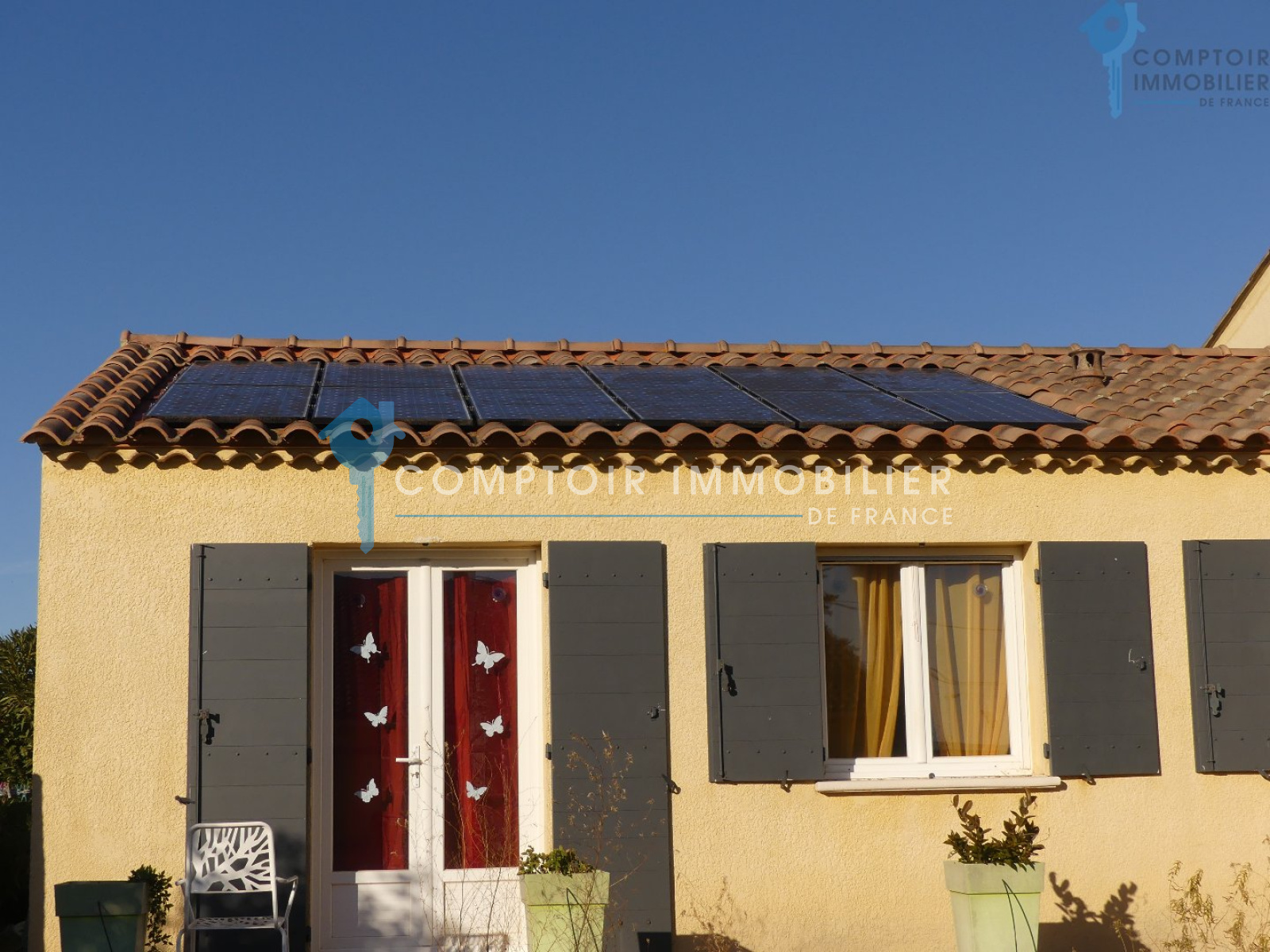 Villa 105m² T3 + Mezzanine et bureau assise sur une parcelle de 490m². Dans un petit lotissement en zone pavillonaire, se trouve cette jolie villa de plain pied, exposée plein sud et très agréable. Proximité de toutes les commodités. (autoroute et gare TGV à moins de 15min) Séjour avec belle hauteur sous plafond, poutres apparentes et mezzanine de belle taille servant de troisième chambre, le tout donnant sur une terrasse plein sud et un beau jardin piscinable. Cuisine semi-ouverte sur le séjour, 1 bureau/dressing, 2 belles chambres, sdb, wc indépendant... Raccordement au BRL et arrosage auto. Panneaux solaires (2000 euros de revente annuelle à EDF) Garage de 23m². Une maison agréable, familiale et récente qui n'attend que vous et vos valises ! COMPTOIR IMMOBILIER DE FRANCE - Nicolas SERVOL - 06 34 56 46 37 - Plus d'informations sur www.cif-immo.com (réf. 14214) -- Informations CORONAVIRUS : Nos visites s'effectueront avec la mise en place d'un protocole sanitaire, notamment avec le port d'un masque et dans le respect des gestes barrières, afin d'assurer la protection de tous. -- Honoraires charge vendeur
