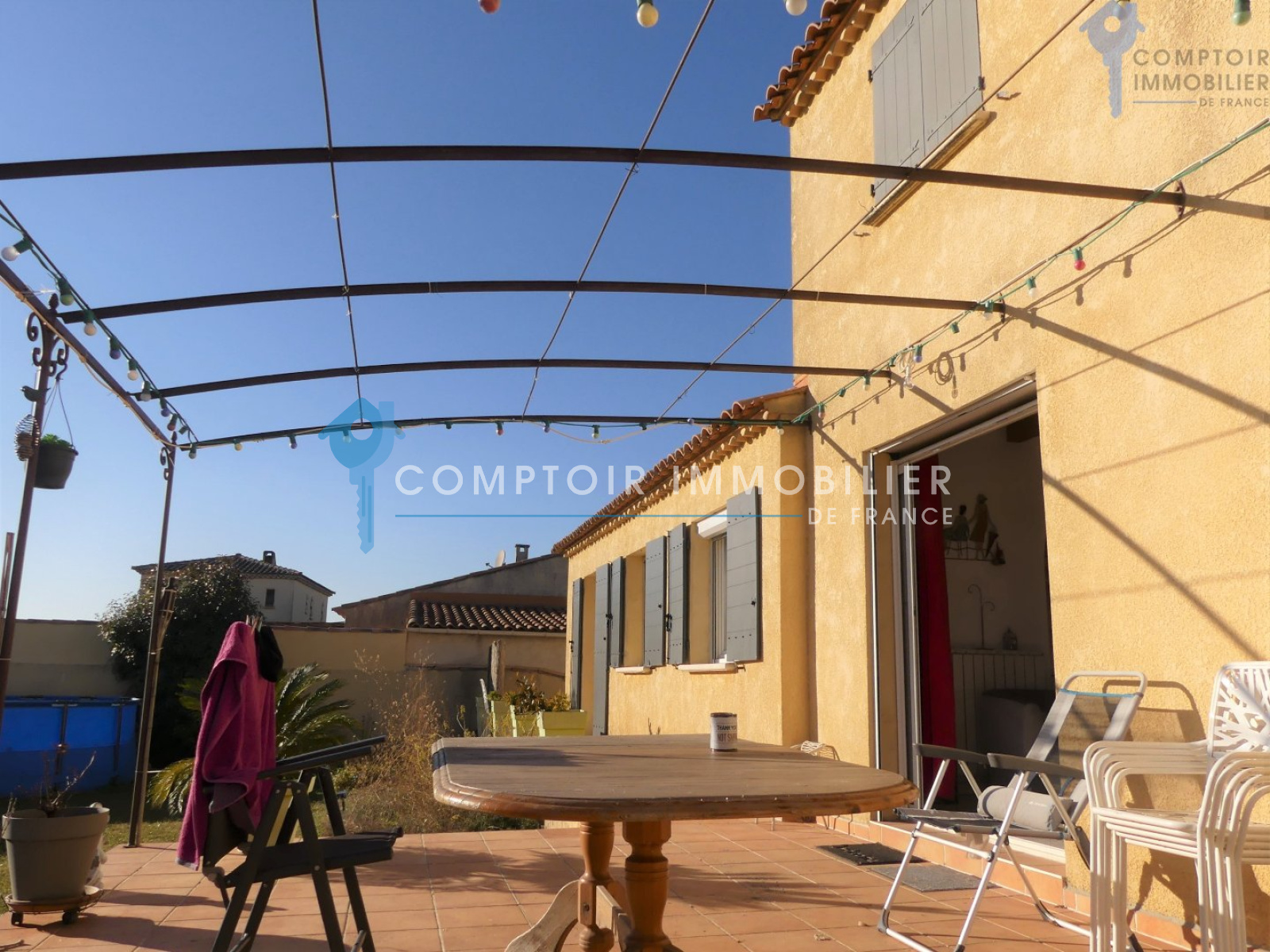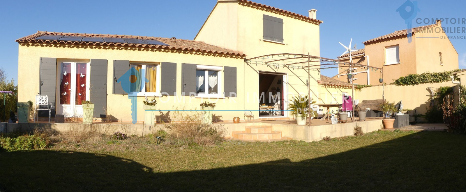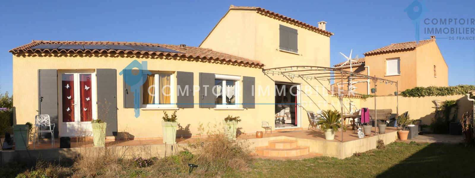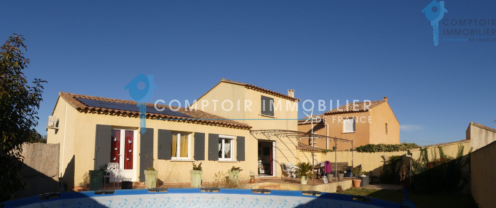 Villa 105m² T3 + Mezzanine et bureau assise sur une parcelle de 490m². Dans un petit lotissement en zone pavillonaire, se trouve cette jolie villa de plain pied, exposée plein sud et très agréable. Proximité de toutes les commodités. (autoroute et gare TGV à moins de 15min) Séjour avec belle hauteur sous plafond, poutres apparentes et mezzanine de belle taille servant de troisième chambre, le tout donnant sur une terrasse plein sud et un beau jardin piscinable. Cuisine semi-ouverte sur le séjour, 1 bureau/dressing, 2 belles chambres, sdb, wc indépendant... Raccordement au BRL et arrosage auto. Panneaux solaires (2000 euros de revente annuelle à EDF) Garage de 23m². Une maison agréable, familiale et récente qui n'attend que vous et vos valises ! COMPTOIR IMMOBILIER DE FRANCE - Nicolas SERVOL - 06 34 56 46 37 - Plus d'informations sur www.cif-immo.com (réf. 14214) -- Informations CORONAVIRUS : Nos visites s'effectueront avec la mise en place d'un protocole sanitaire, notamment avec le port d'un masque et dans le respect des gestes barrières, afin d'assurer la protection de tous. -- Honoraires charge vendeur