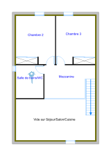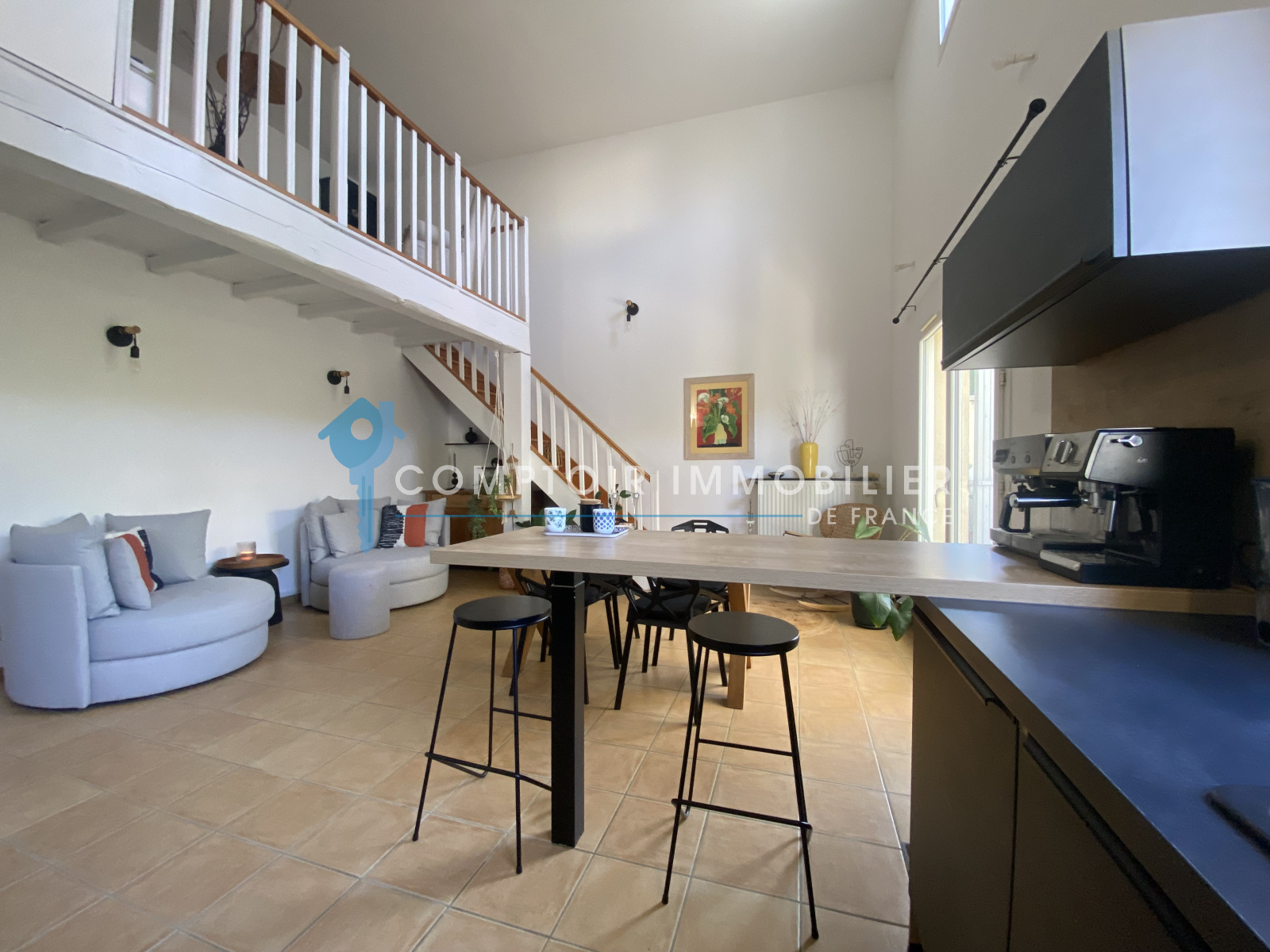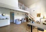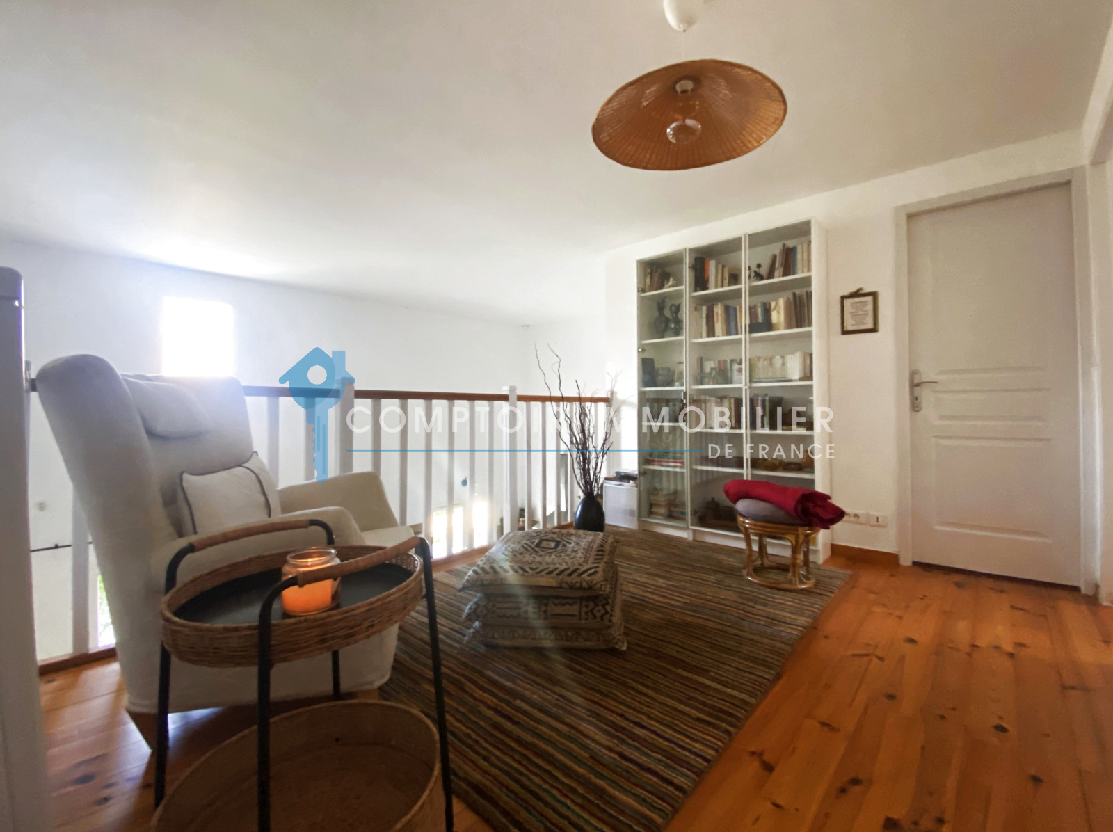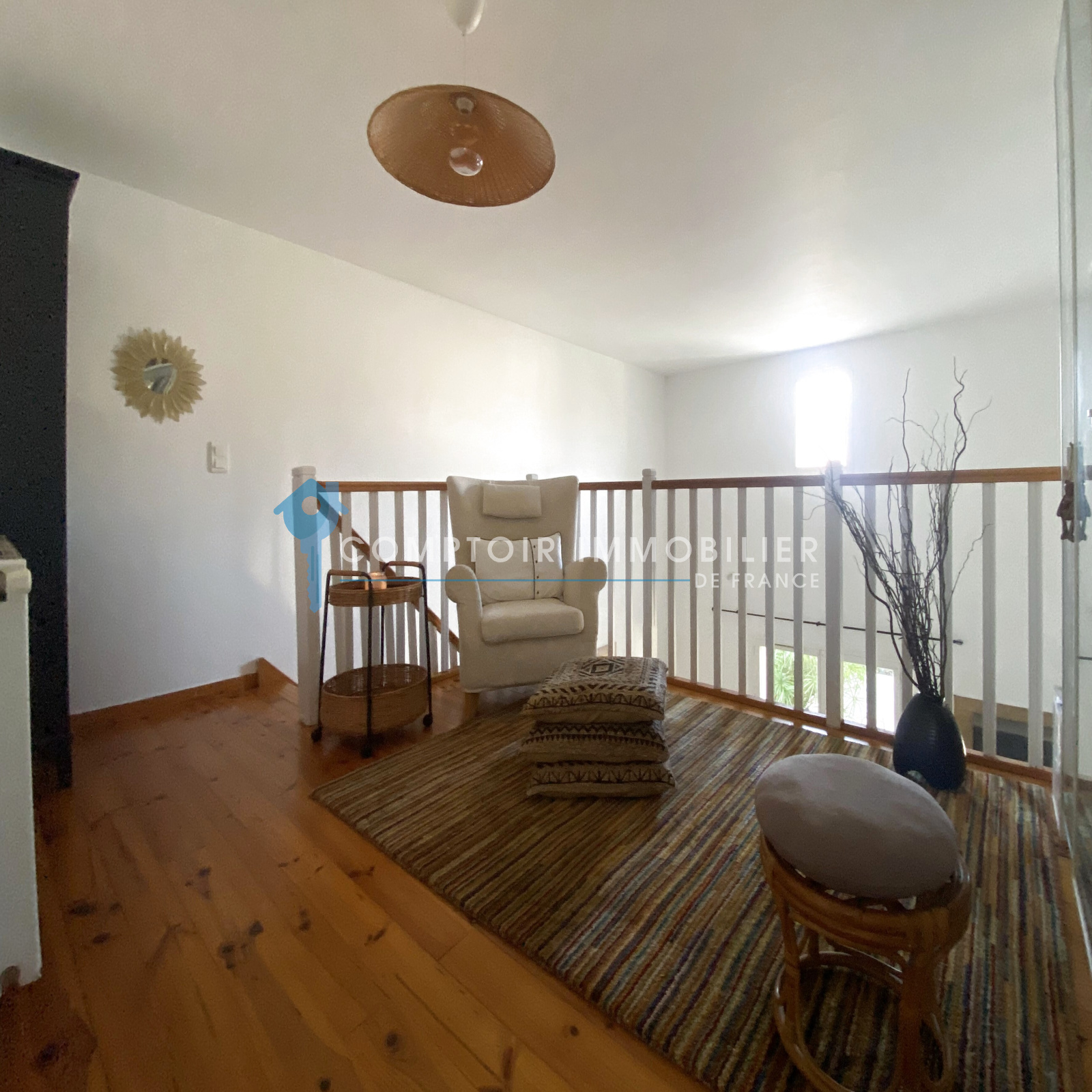 Au dessus vous trouverez une belle mezzanine surplombant le séjour, une salle de bain avec wc et deux chambres spacieuses.