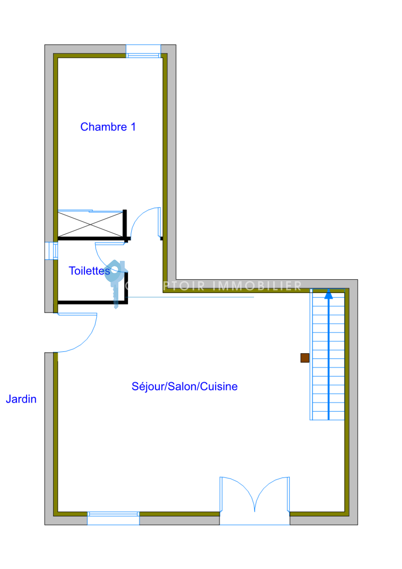 La maison se compose en RDC d'un garage + un stationnement privatif devant celui-ci, et d'un portillon d'accés à l'habitation pour une entrée totalement indépendante.