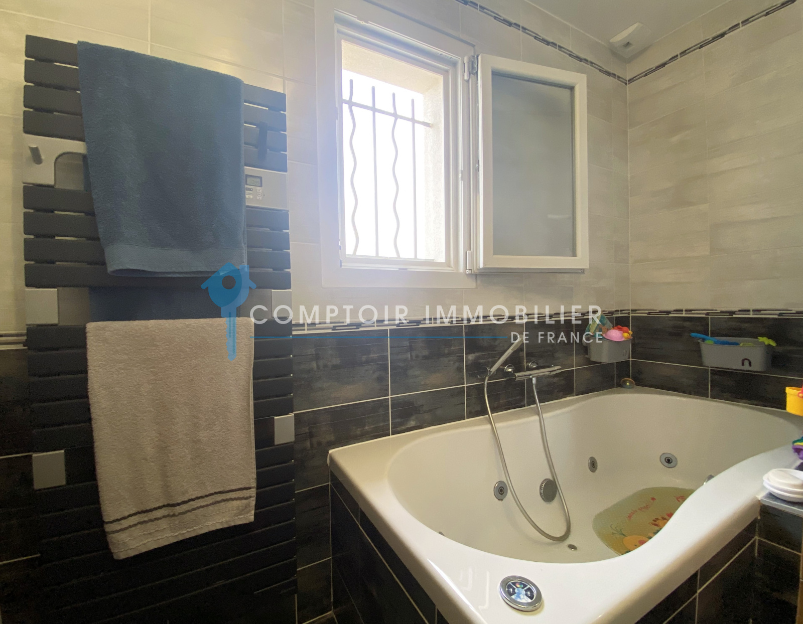 Cette villa jouit d'une grande luminosité et dispose de tout le confort avec la climatisation réversible, un ballon thermodynamique, des volets roulants éléctriques avec domotique, moustiquaires, portail automatique, visiophone...