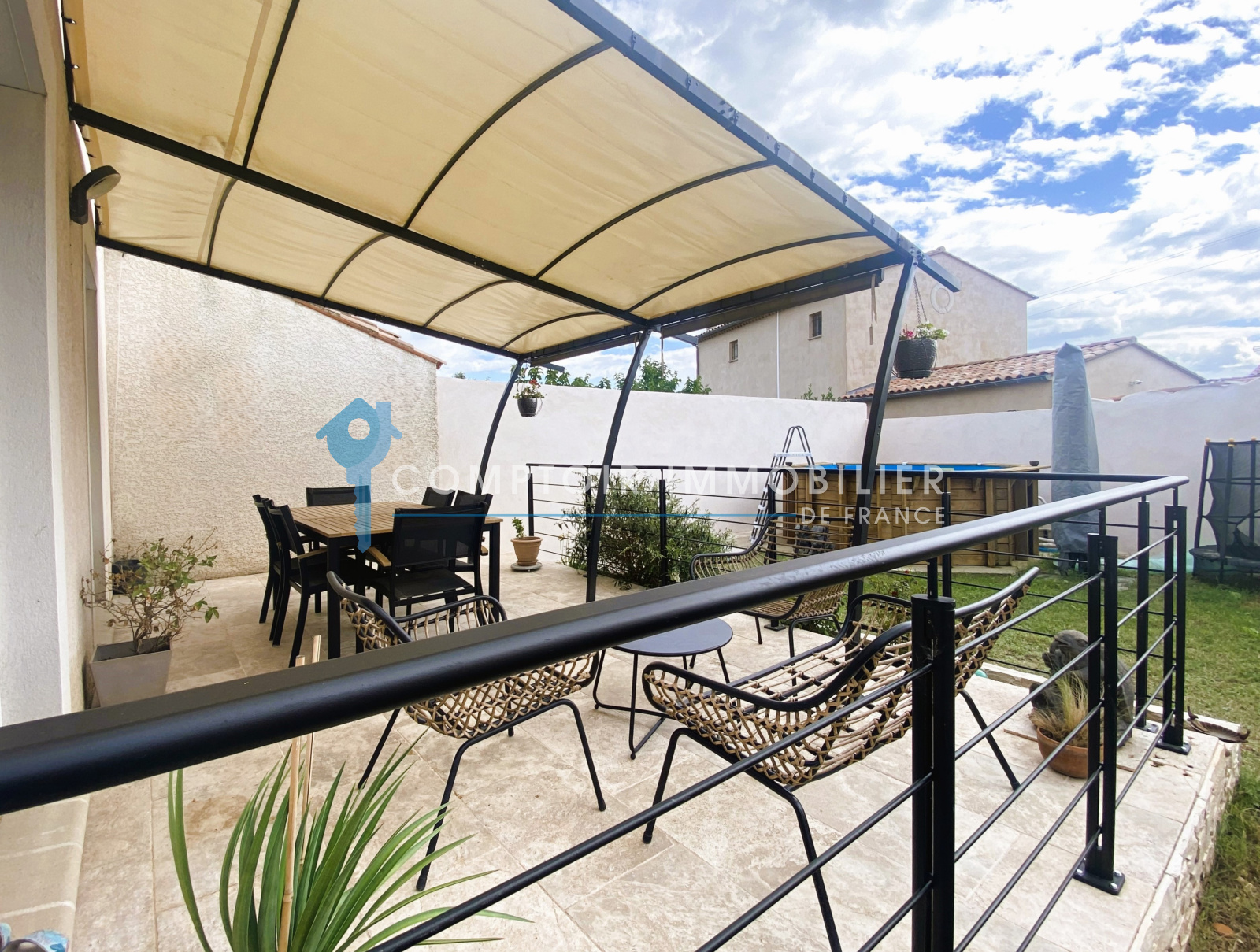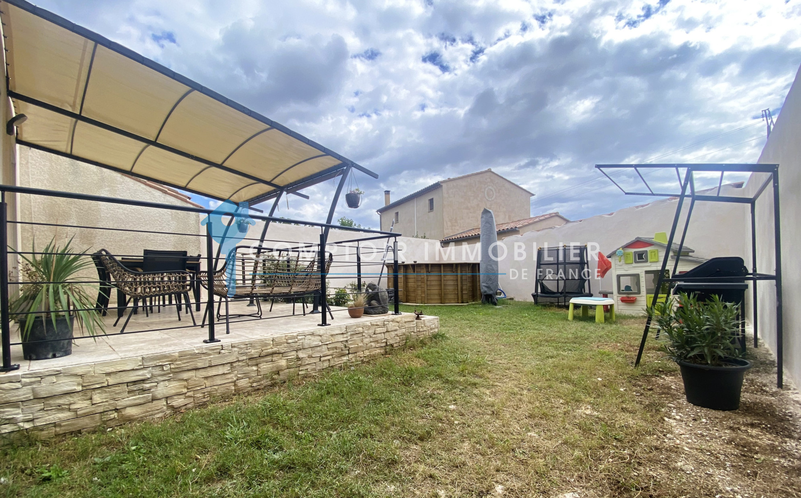 Ce bien ne nécessite aucun travaux, aussi bien à l'intérieur qu'a l'extérieur et dispose également d'une petite piscine hors sol en bois.