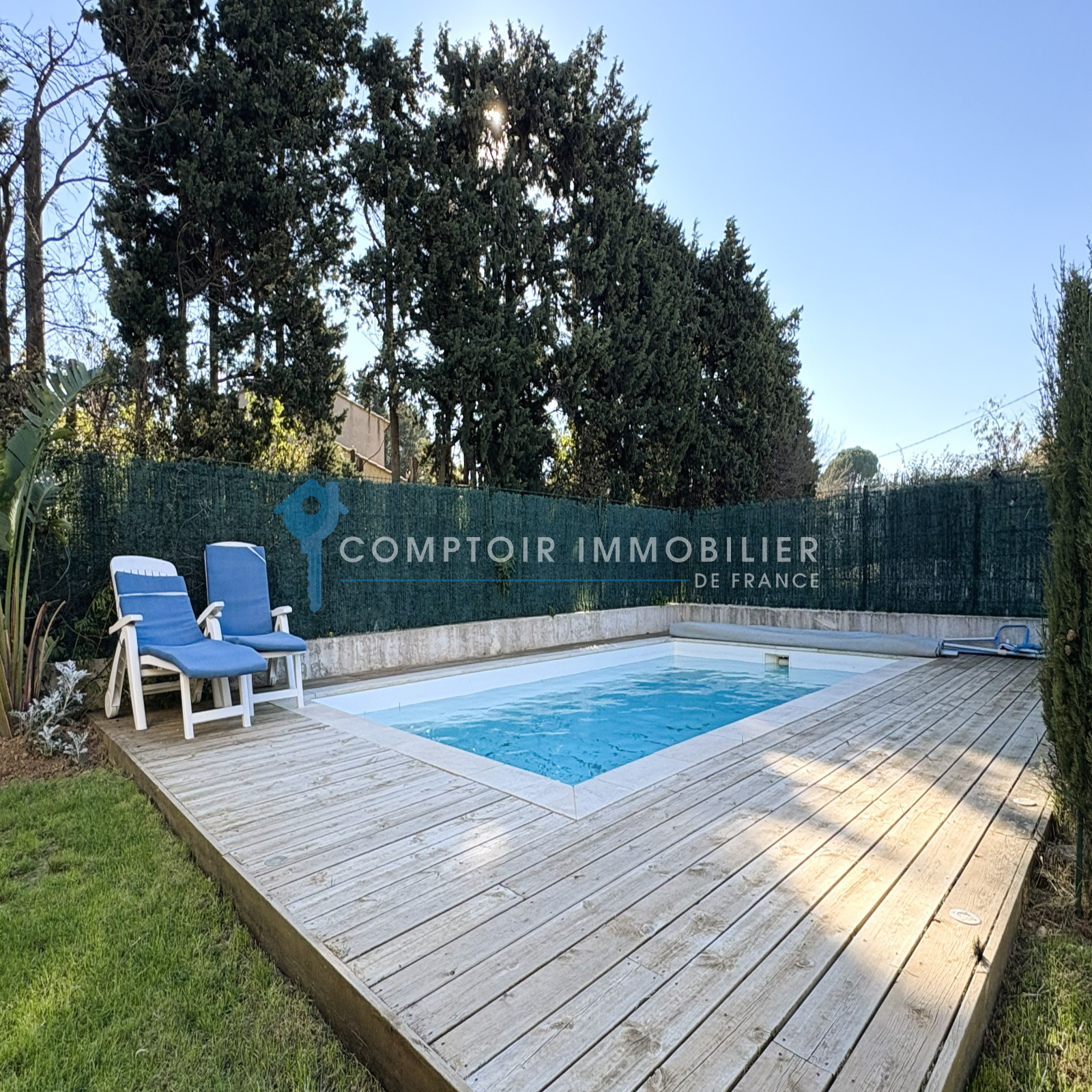 Le bien dispose également d'un garage de 24m² avec mezzanine, d'un portail électrique, d'un forage et pour profiter des beaux jours d'une piscine avec filtration au sel.