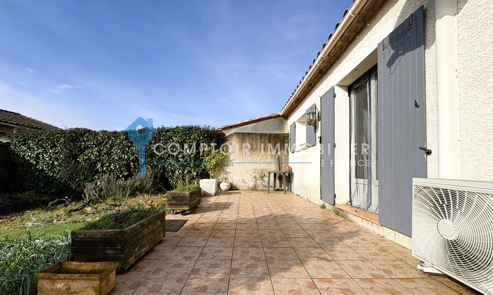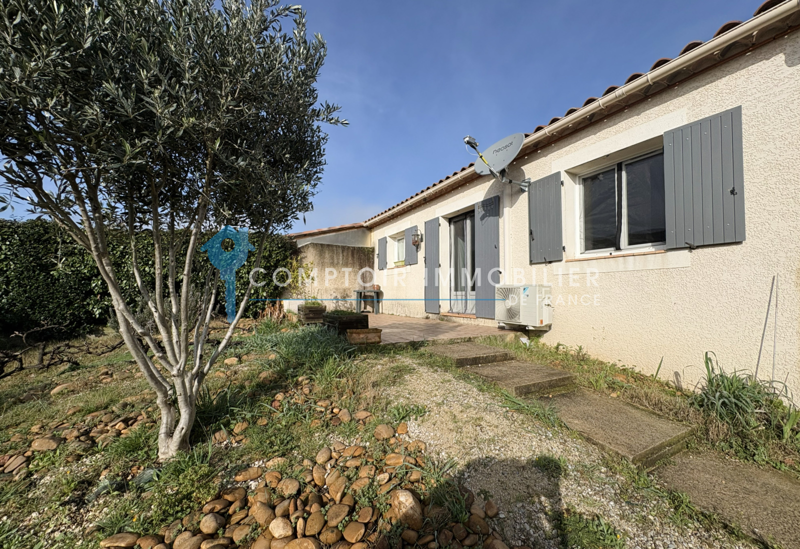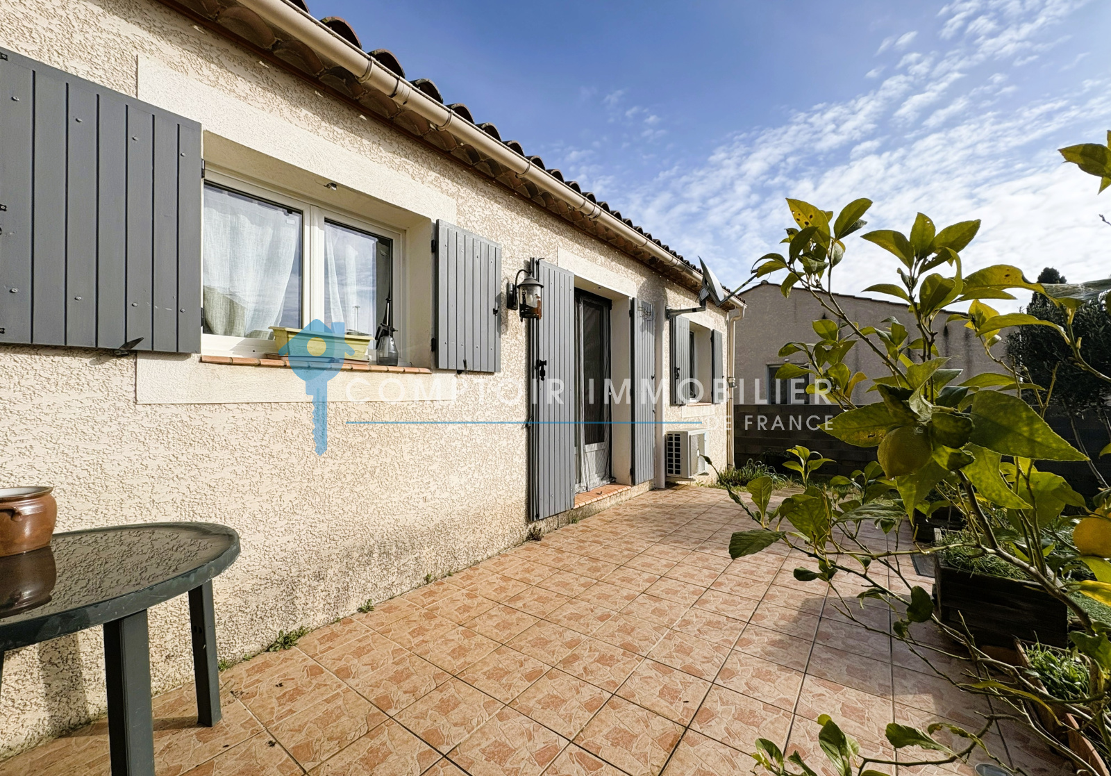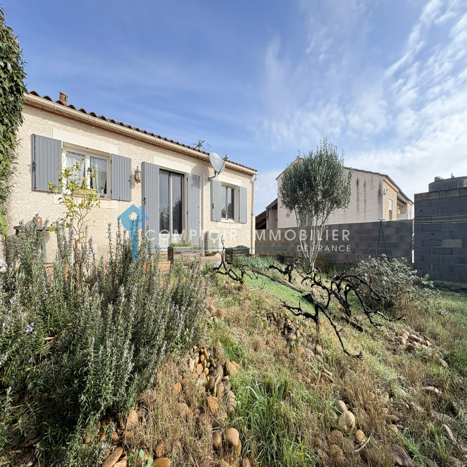 Elle offre environ 75m² habitables + un garage de 18m² le tout en plain pied sur une parcelle de près de 350m²