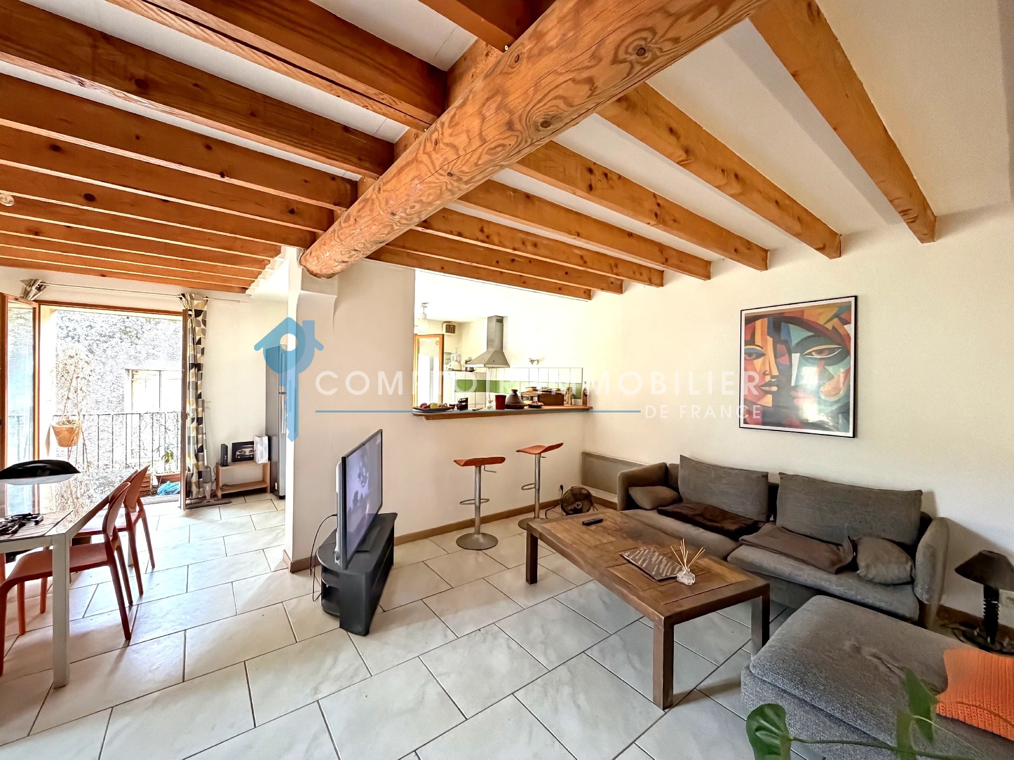 Répartie sur plusieurs niveaux, elle offre un bel espace de vie lumineux avec salon-séjour et cuisine semi-ouverte, idéal pour les moments de partage.