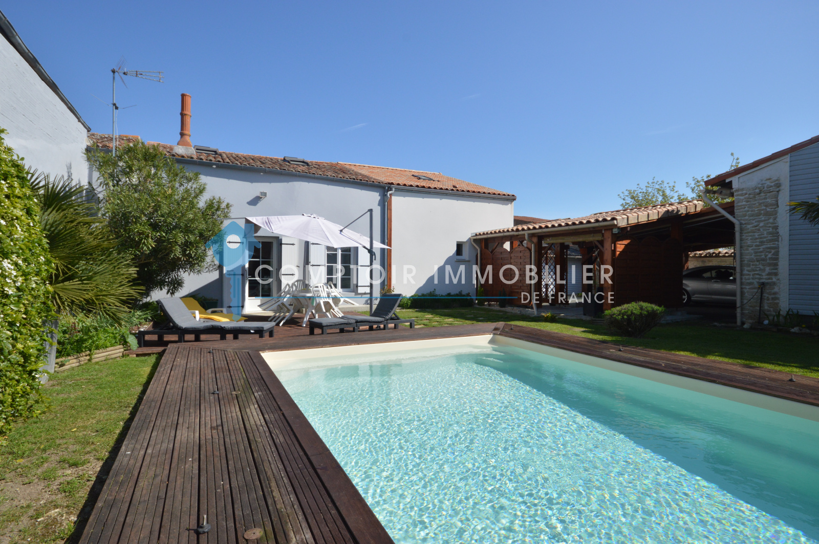 Proche La Greve sur Mignon, située au calme, à 20 minutes de La Rochelle, je vous propose de découvrir cette jolie maison de 150 m2 se composant de 8 pièces sur un terrain de 705 m2 avec piscine et une dépendance de 20 m2