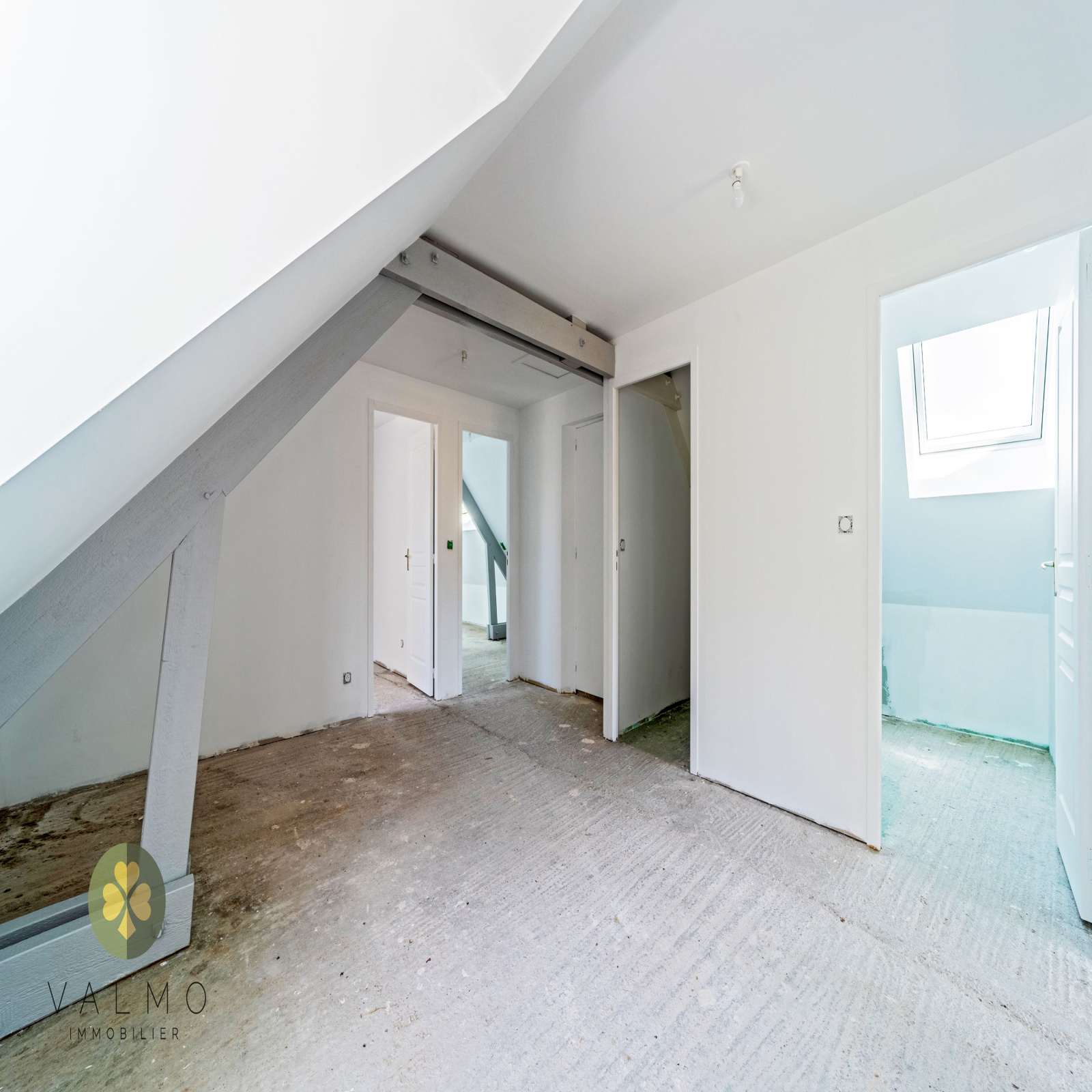 Les combles ont été aménagées en une belle pièce palière de 19m², trois chambres de 16m², 16m² et 28m² au sol, un wc et une salle de douche à aménager.