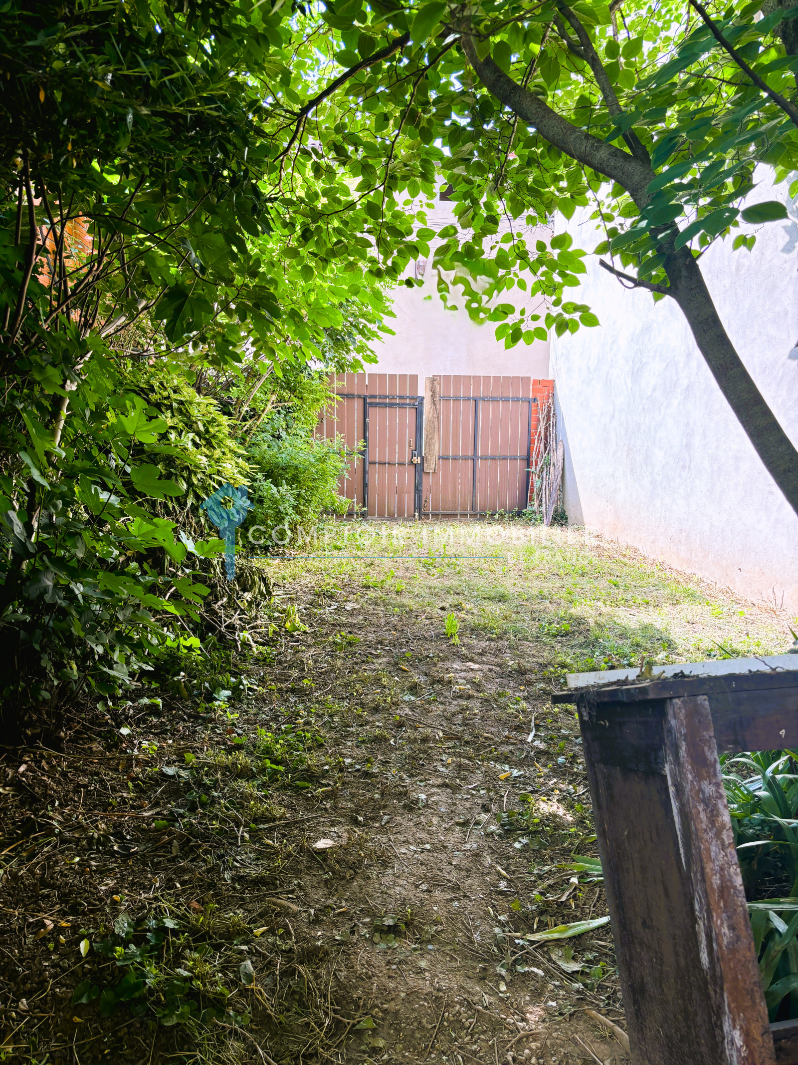 Le jardin est doté d'un portail. et peut permettre d'accéder à l'étage . Possibilité également d'y stationner.