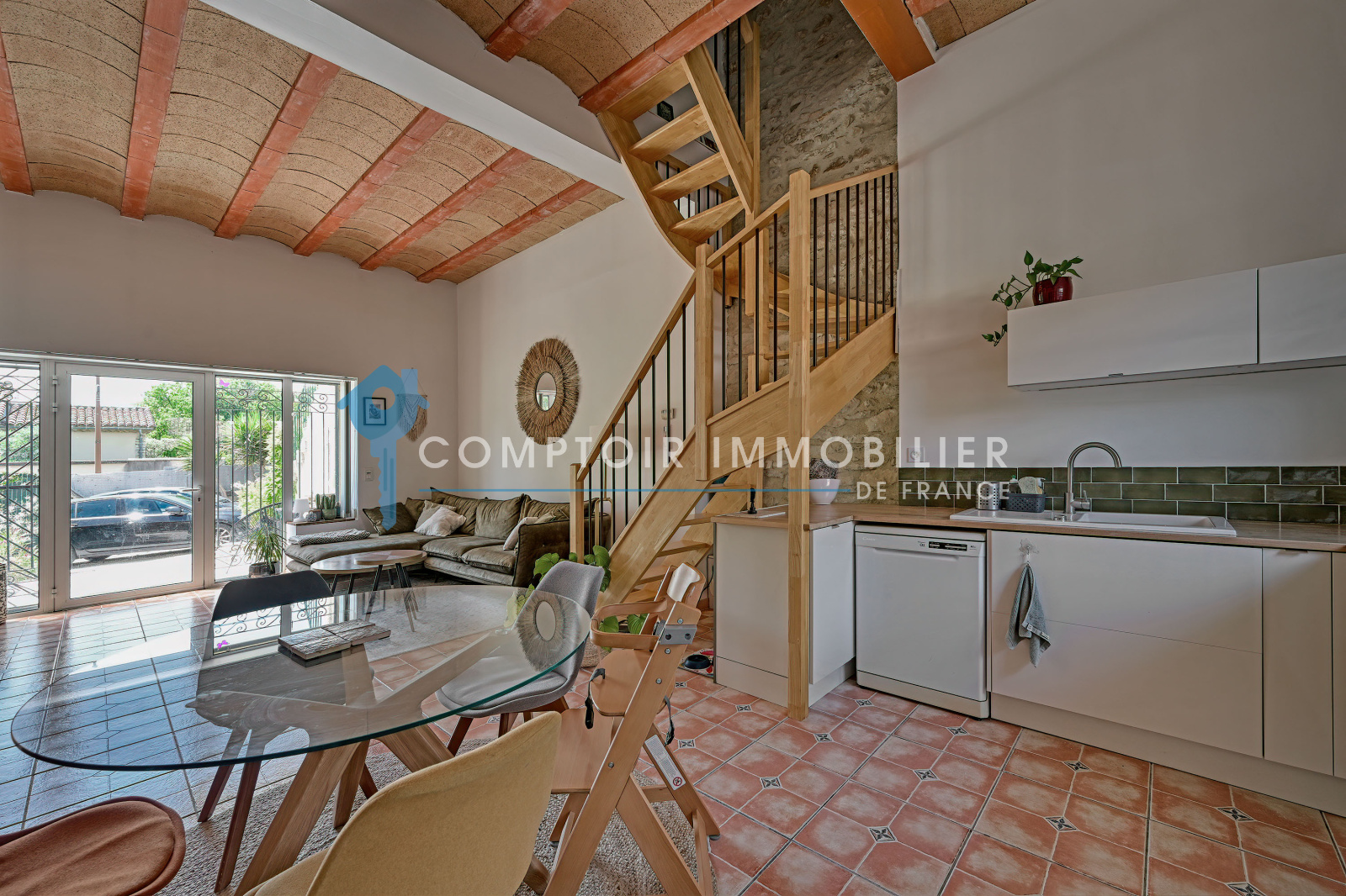 Au rez de chaussée vous trouverez une grande pièce de vie lumineuse avec wc et buanderie