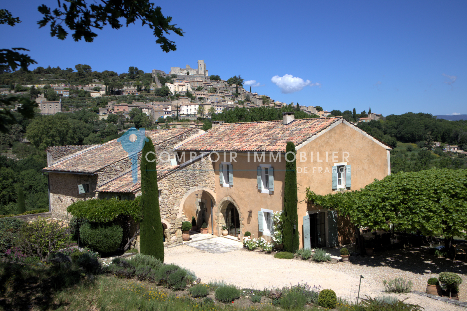 Commentaire : Propriété pleine de charme et d’authenticité tout en bénéficiant d’un confort moderne. La grande piscine, le terrain de tennis, les vues époustouflantes (sur le village de Lacoste, le mont Ventoux, les monts de Vaucluse ses villages et la plaine), l’agréement du terrain et sa diversité en font un lieu unique.