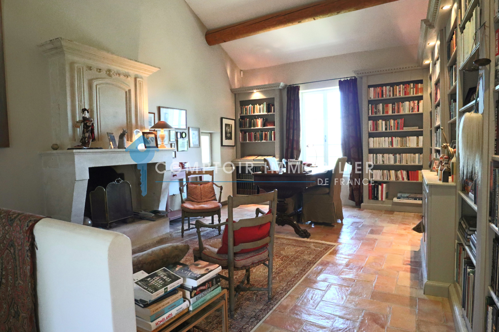 Bibliothèque avec cheminée,