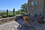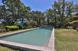 La grande piscine de 15 x 5 m est traité au sel et profite d’une vue magistrale sur le village de Lacoste et de son célèbre château.