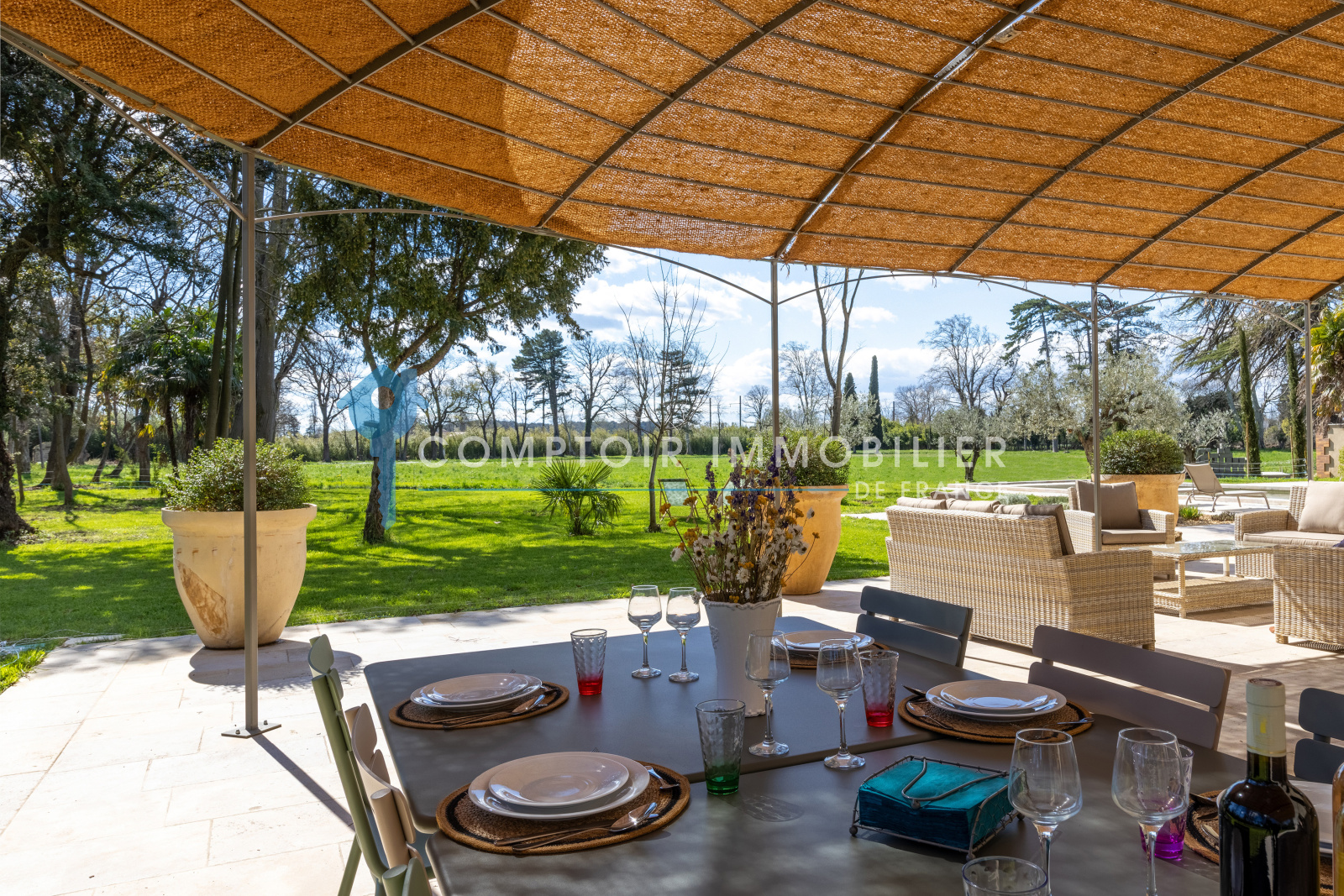 L'agence en Provence, située à Boulbon, vous propose une somptueuse propriété de 320 m², baignée de lumière naturelle. De grandes portes-fenêtres s'ouvrent sur une vaste terrasse, offrant une vue époustouflante sur les paysages champêtres et massif de fleurs, le tout sur 2 hectares de terrain arboré.