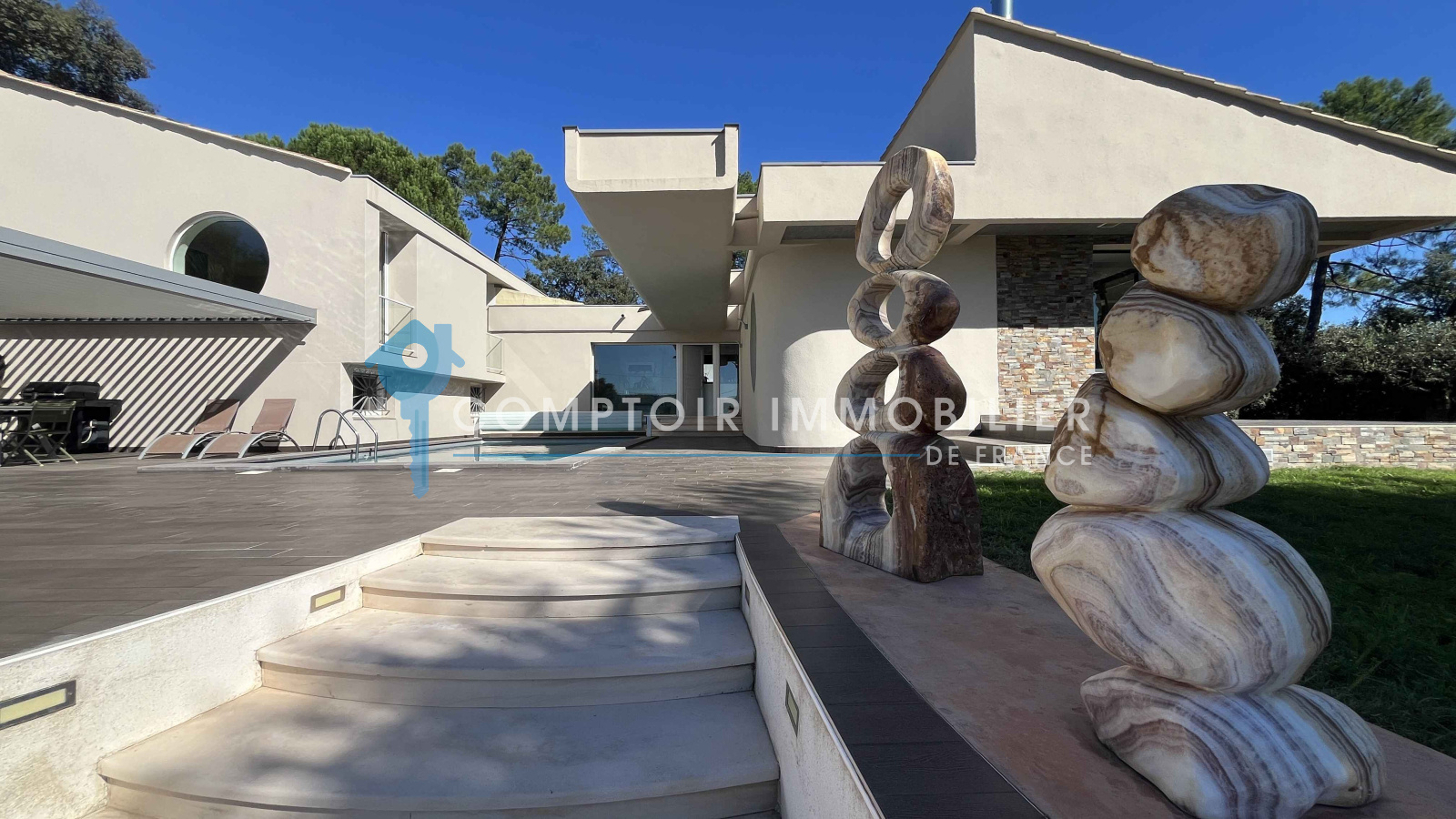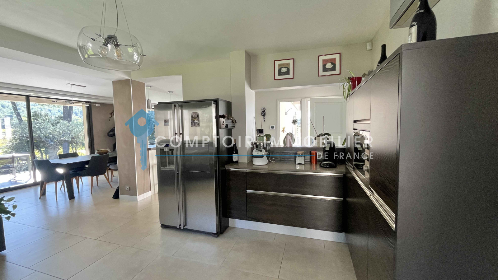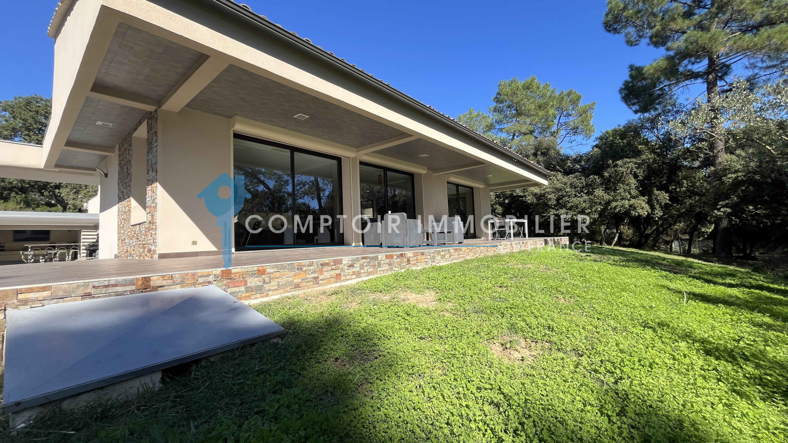 En bordure de la vallée de la Cèze et ses villages classés : Villa atypique, offrant un art de vivre paisible et raffiné. Signée d'un architecte, de style contemporain de grand standing, elle se niche au cœur d’un immense parc boisé de presque 7000 m2, parfaitement entretenu. Dès l’entrée, vous serez séduits par les volumes généreux offrant plus de 250m2 habitables, avec une luminosité exceptionnelle qu’offrent les larges baies vitrées ouvertes sur la nature. La villa se compose de 4 chambres spacieuses, dont une suite parentale avec dressing et salle d'eau privative avec patio zen. Une salle de bain et 2 wc viennent compléter ses prestations. Le vaste espace de vie et son poêle à bois chaleureux s’ouvre sur une superbe terrasse menant à la piscine et à son pool house, invitant à la détente et à la convivialité. En souplex vous attendent pour votre bien être, une salle de sport de grand volume et une buanderie. Les prestations sont de très belles factures : Architecture contemporaine et lignes épurées, Vue dégagée, Garage de 70m2 (transformable en habitation) et double carport, Climatisation réversible par pompe à chaleur, domotique, et finitions haut de gamme, Un espace extérieur clôturé de plus de 6700m2 avec tennis. Un bien rare où confort moderne, esthétique et cadre naturel se conjuguent à la perfection. Localisation : en campagne à proximité des commodités et des axes principaux (30 mn environ A9 et A7. Un Bien d’exception.