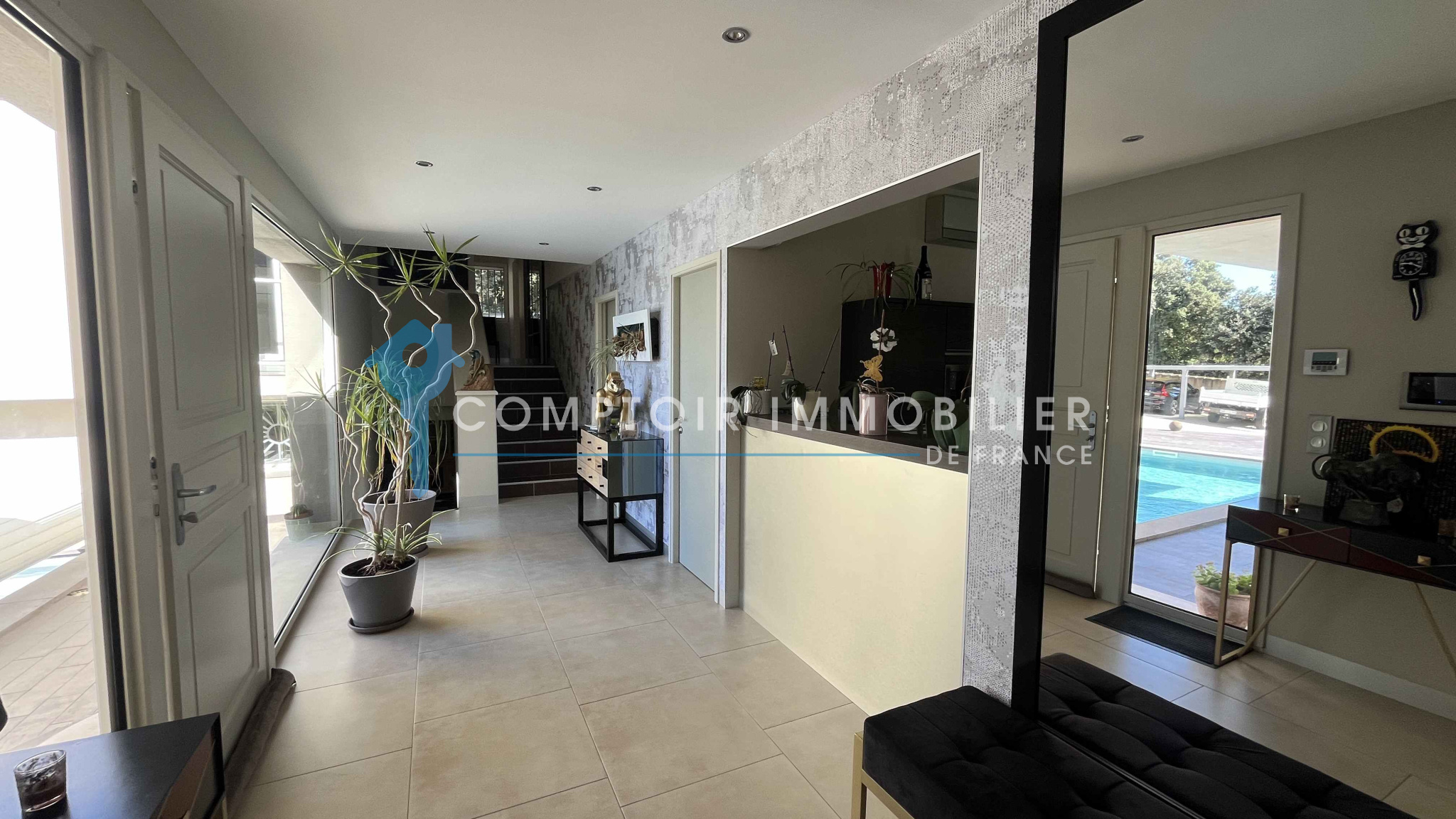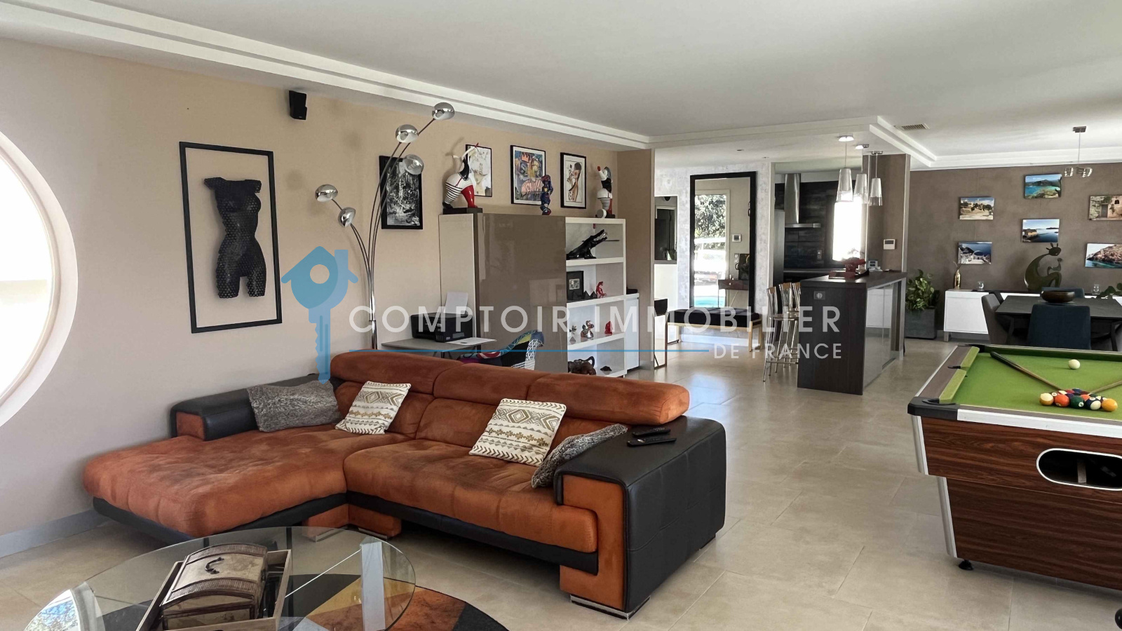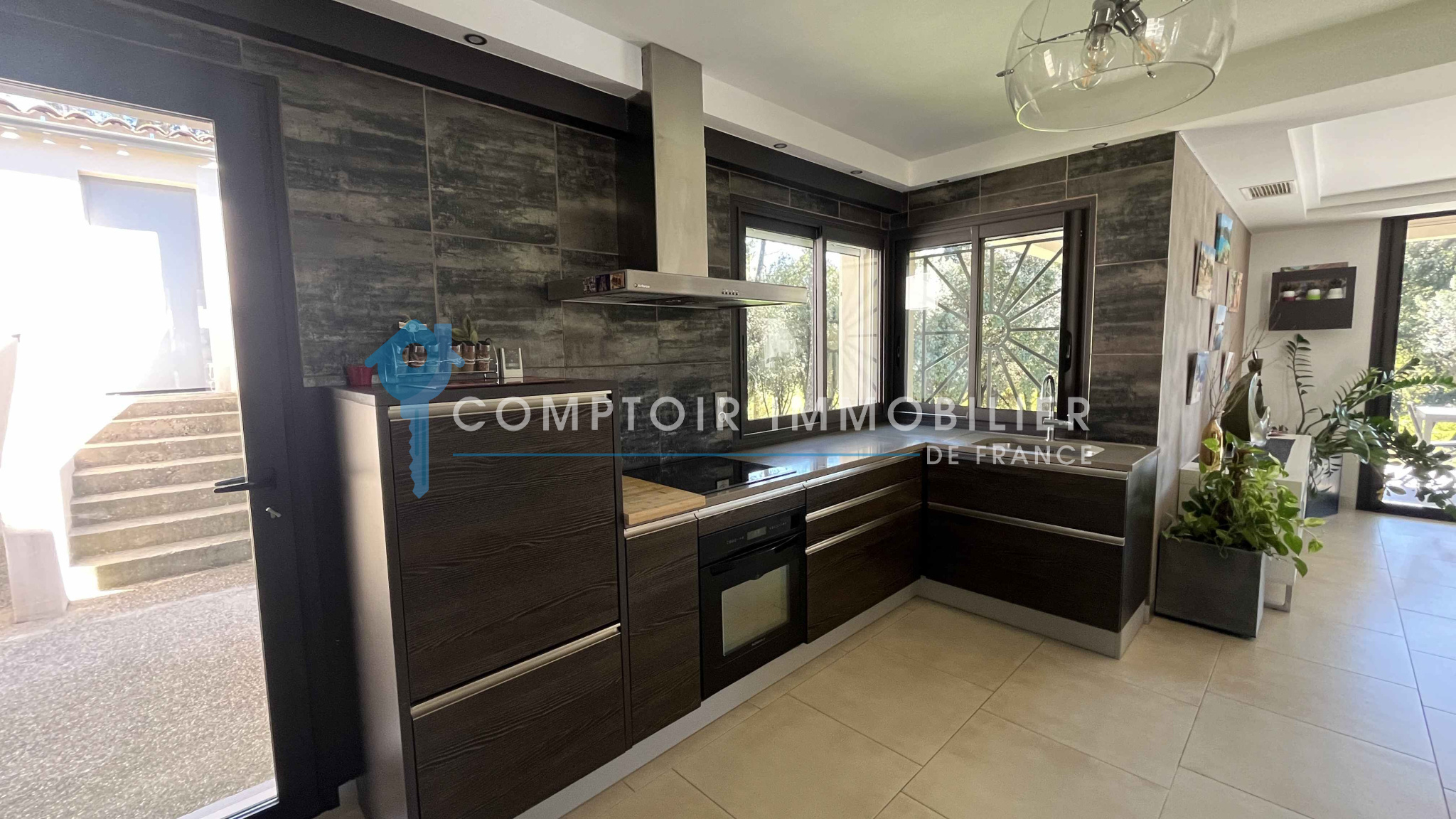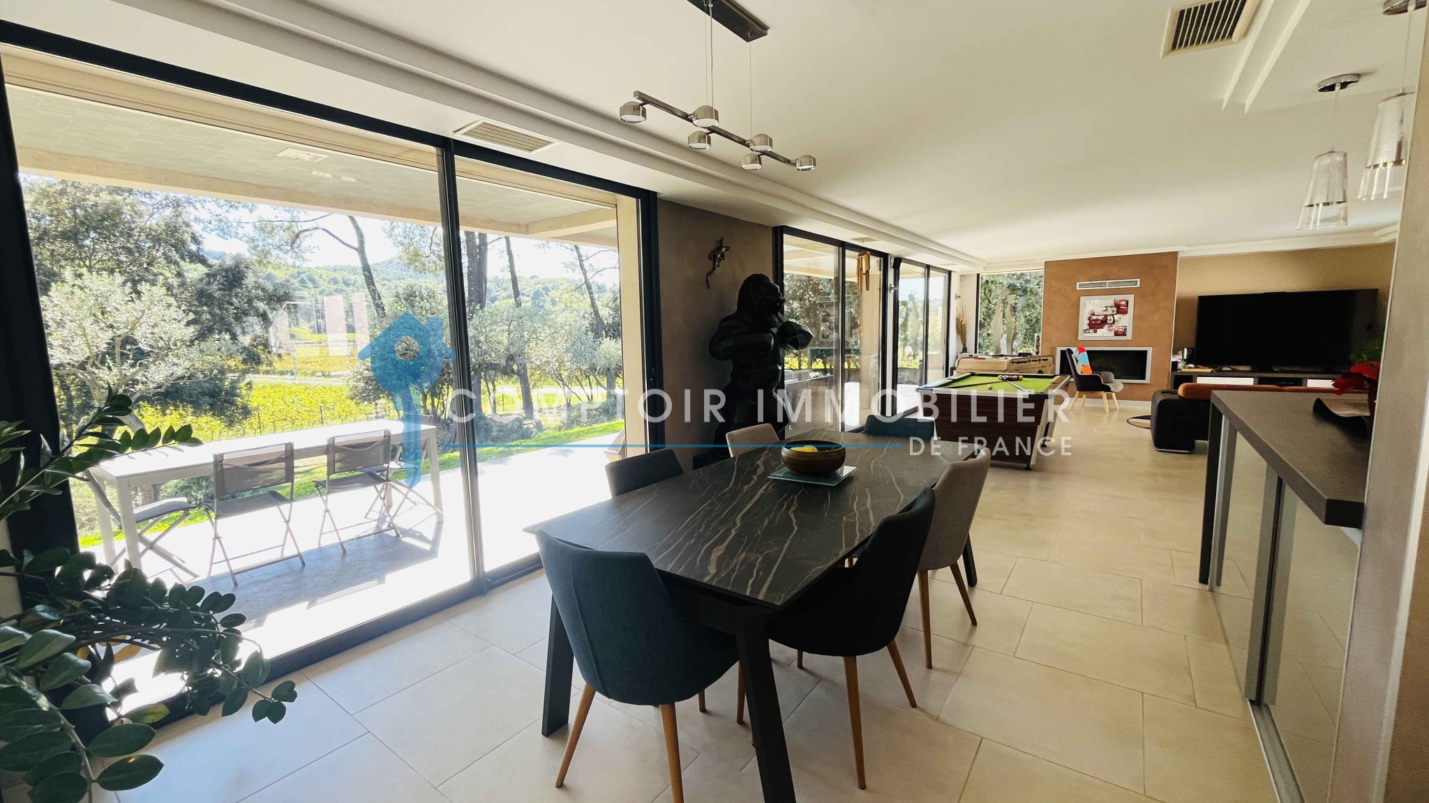 En bordure de la vallée de la Cèze et ses villages classés : Villa atypique, offrant un art de vivre paisible et raffiné. Signée d'un architecte, de style contemporain de grand standing, elle se niche au cœur d’un immense parc boisé de presque 7000 m2, parfaitement entretenu. Dès l’entrée, vous serez séduits par les volumes généreux offrant plus de 250m2 habitables, avec une luminosité exceptionnelle qu’offrent les larges baies vitrées ouvertes sur la nature. La villa se compose de 4 chambres spacieuses, dont une suite parentale avec dressing et salle d'eau privative avec patio zen. Une salle de bain et 2 wc viennent compléter ses prestations. Le vaste espace de vie et son poêle à bois chaleureux s’ouvre sur une superbe terrasse menant à la piscine et à son pool house, invitant à la détente et à la convivialité. En souplex vous attendent pour votre bien être, une salle de sport de grand volume et une buanderie. Les prestations sont de très belles factures : Architecture contemporaine et lignes épurées, Vue dégagée, Garage de 70m2 (transformable en habitation) et double carport, Climatisation réversible par pompe à chaleur, domotique, et finitions haut de gamme, Un espace extérieur clôturé de plus de 6700m2 avec tennis. Un bien rare où confort moderne, esthétique et cadre naturel se conjuguent à la perfection. Localisation : en campagne à proximité des commodités et des axes principaux (30 mn environ A9 et A7. Un Bien d’exception.