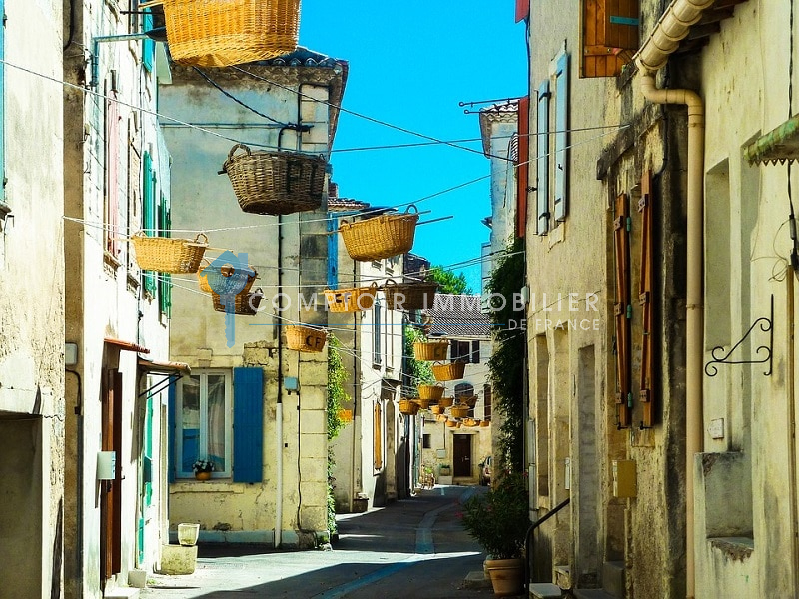 Dans le magnifique village de Vallabrègues, la maison se compose en rez de chaussée d’une cuisine équipée et d’un salon avec cheminée, un toilette invité.