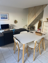 Elle se compose au rdc d'un grand salon cuisine américaine, un wc et une buanderie.