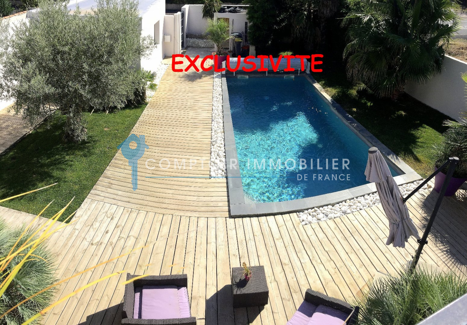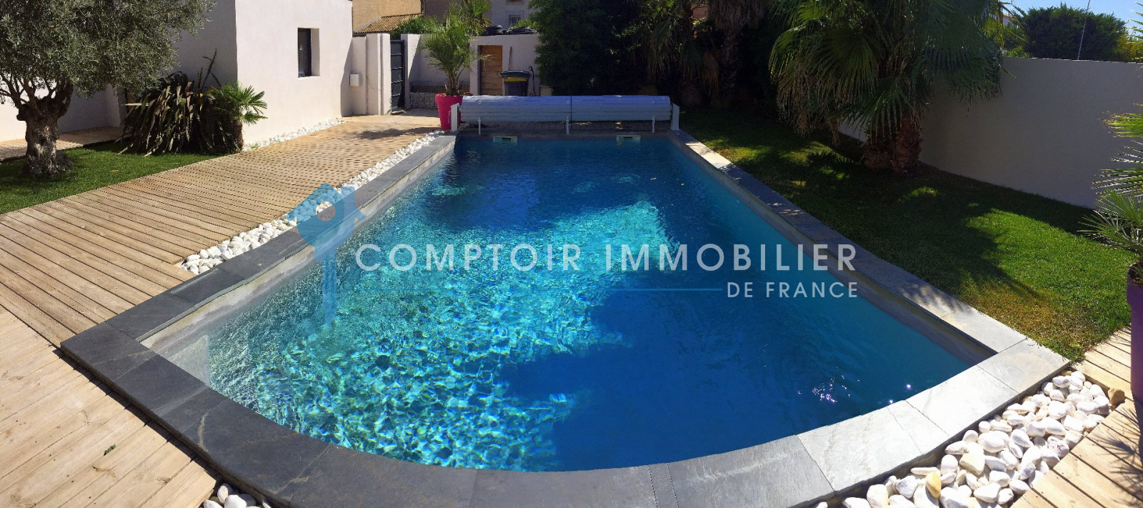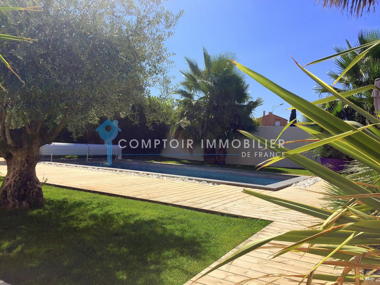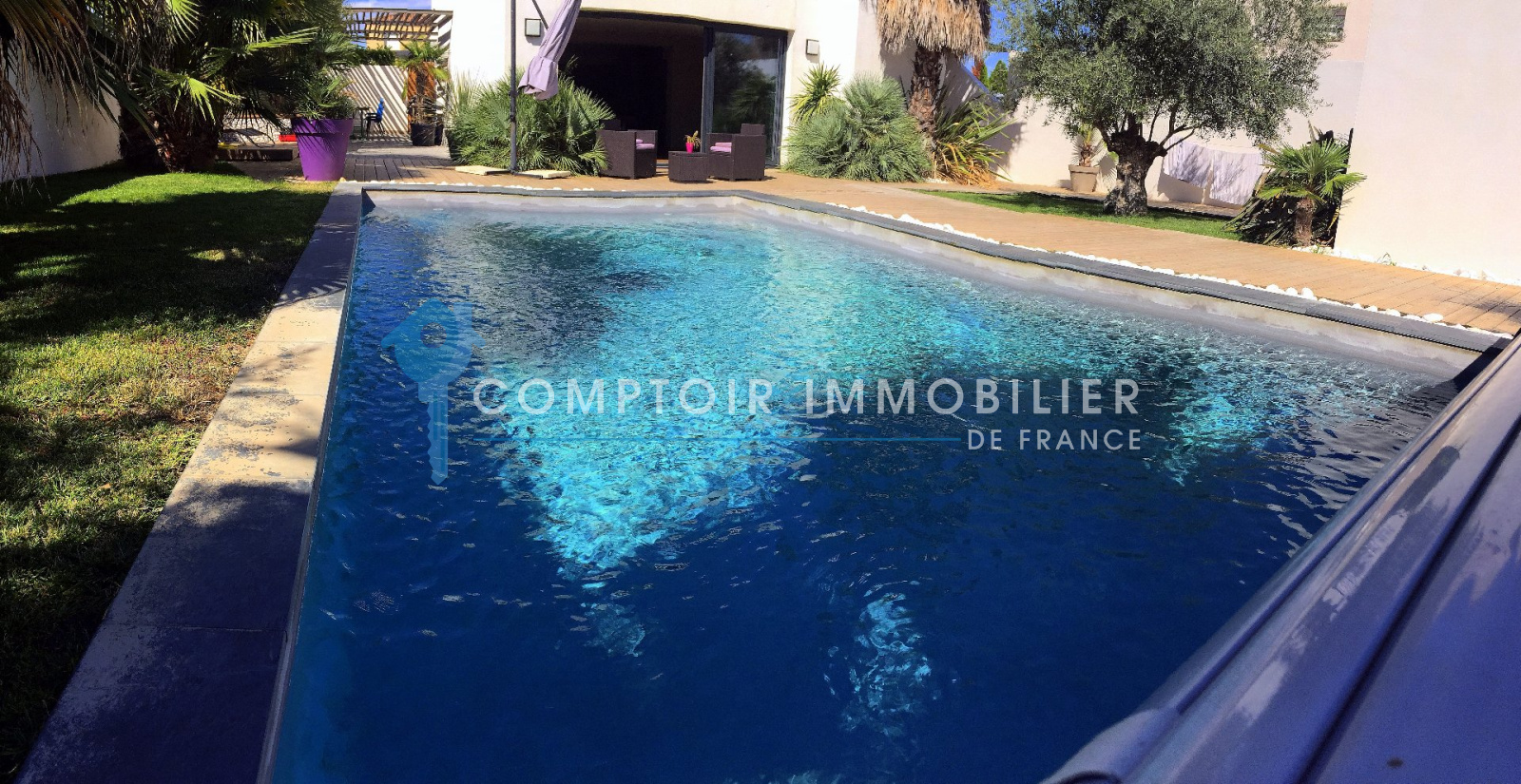 En Exclusivité, à Villeneuve les Maguelone, l'unique village qui bénéficie d'un accès direct à la plage et qui est à dix minutes de Montpellier (accès autoroute A9). Dans un quartier résidentiel, en zone non inondable et à deux pas des commerces ! Cette maison de plus de 296 m² comprend un appartement T3 de 80 m² avec son jardin et son accès indépendant de la maison. Possibilité de revenus complémentaires non négligeables, près de 7000 euros par an ! La maison bénéficie de nombreux matériaux et matériels de qualité, comme la pompe à chaleur gainable, menuiseries et volets roulant alu, cumulus thermodynamique etc... De beaux volumes vous attendent, le séjour baignée de lumière par la grande baie vitrée exposé plein Sud avec vue sur la piscine, la suite parentale de 37m² bénéficiant d'une double exposition Sud, Sud/Ouest et son accès direct à la terrasse de 35m². Vous trouverez quatre chambres supplémentaires, buanderie, coin bureau, garage. La piscine 8x4 bénéficie d'une triple exposition et se retrouve au milieu d'un magnifique jardin paysagé de type tropical. Bien rare et de qualité. COMPTOIR IMMOBILIER DE FRANCE - Christophe BAULO - 06 50 197 197 - Plus d'informations sur www.cif-immo.com (réf. 6930) Honoraires charge vendeur