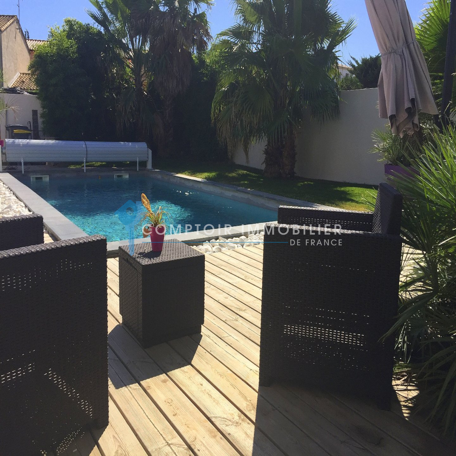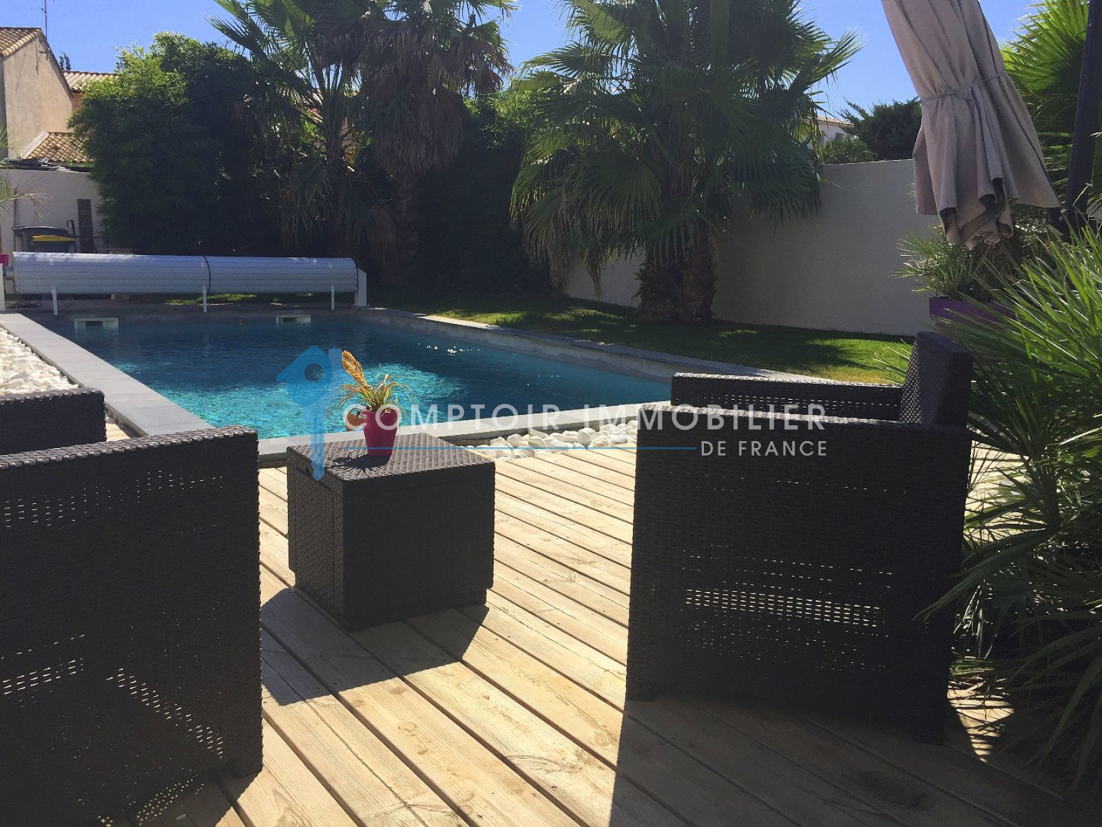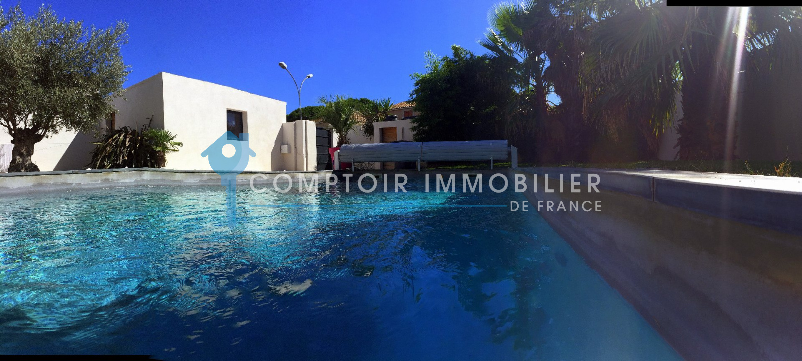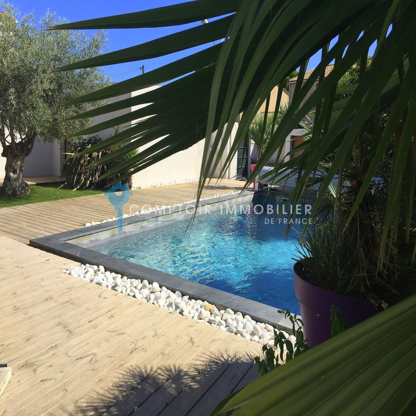 En Exclusivité, à Villeneuve les Maguelone, l'unique village qui bénéficie d'un accès direct à la plage et qui est à dix minutes de Montpellier (accès autoroute A9). Dans un quartier résidentiel, en zone non inondable et à deux pas des commerces ! Cette maison de plus de 296 m² comprend un appartement T3 de 80 m² avec son jardin et son accès indépendant de la maison. Possibilité de revenus complémentaires non négligeables, près de 7000 euros par an ! La maison bénéficie de nombreux matériaux et matériels de qualité, comme la pompe à chaleur gainable, menuiseries et volets roulant alu, cumulus thermodynamique etc... De beaux volumes vous attendent, le séjour baignée de lumière par la grande baie vitrée exposé plein Sud avec vue sur la piscine, la suite parentale de 37m² bénéficiant d'une double exposition Sud, Sud/Ouest et son accès direct à la terrasse de 35m². Vous trouverez quatre chambres supplémentaires, buanderie, coin bureau, garage. La piscine 8x4 bénéficie d'une triple exposition et se retrouve au milieu d'un magnifique jardin paysagé de type tropical. Bien rare et de qualité. COMPTOIR IMMOBILIER DE FRANCE - Christophe BAULO - 06 50 197 197 - Plus d'informations sur www.cif-immo.com (réf. 6930) Honoraires charge vendeur