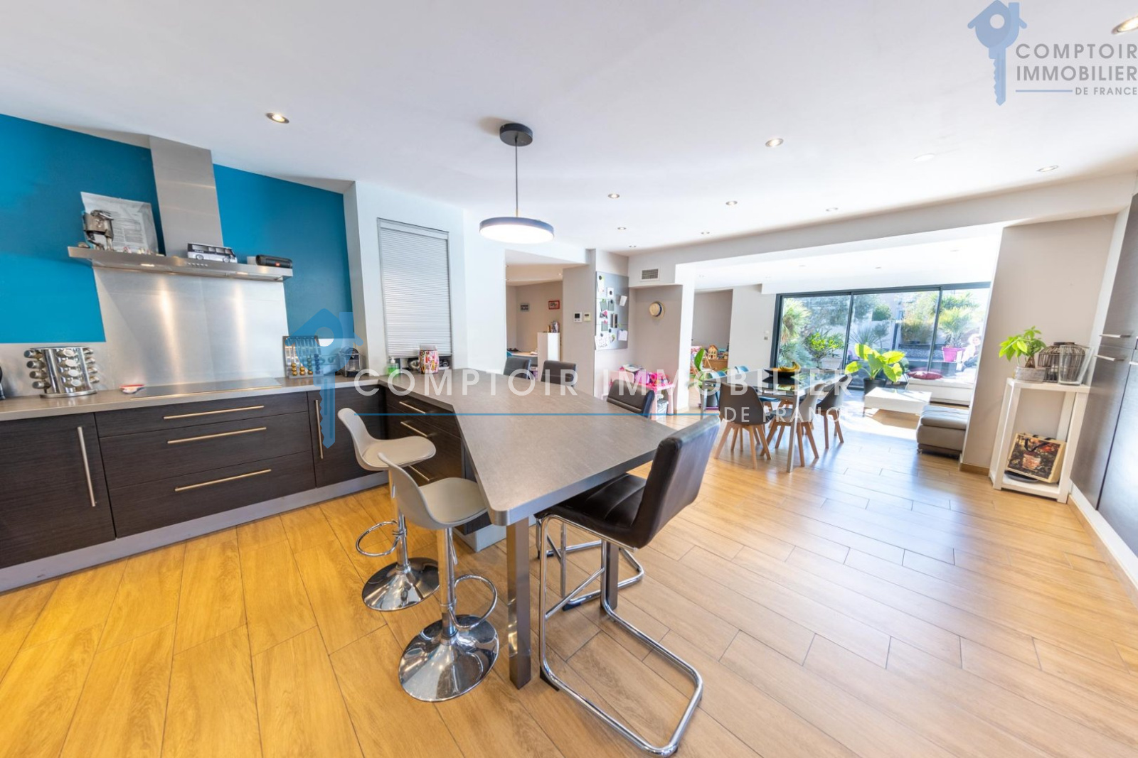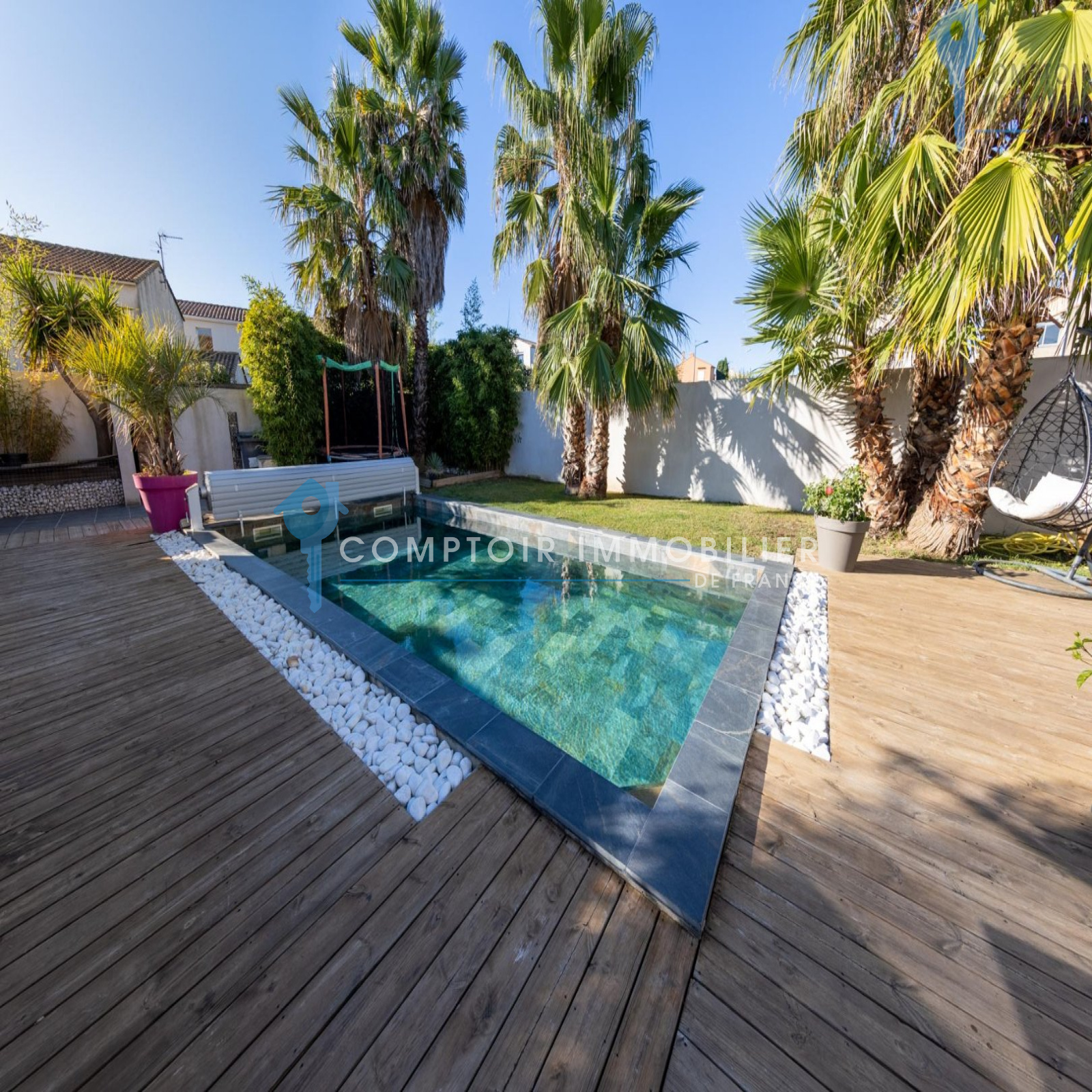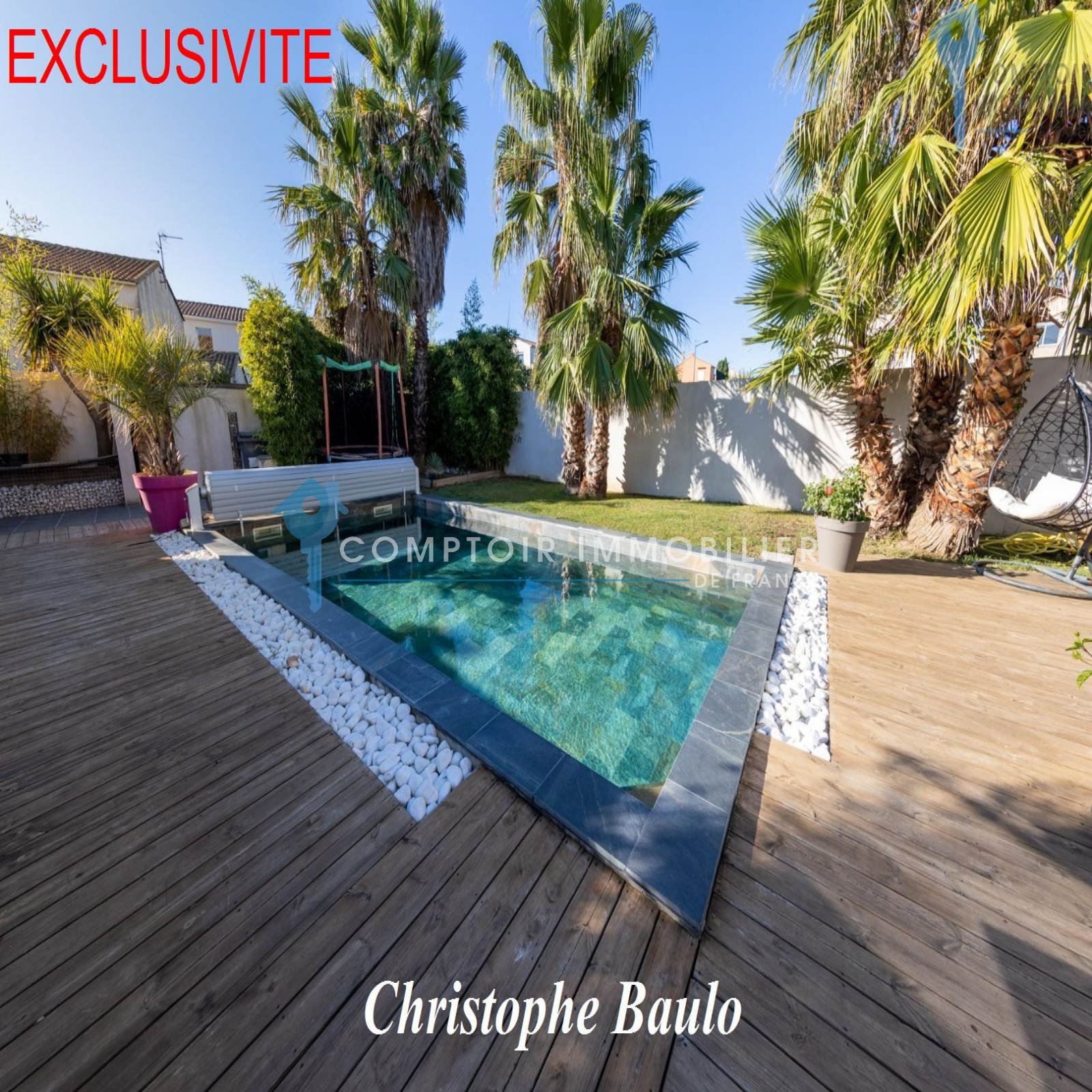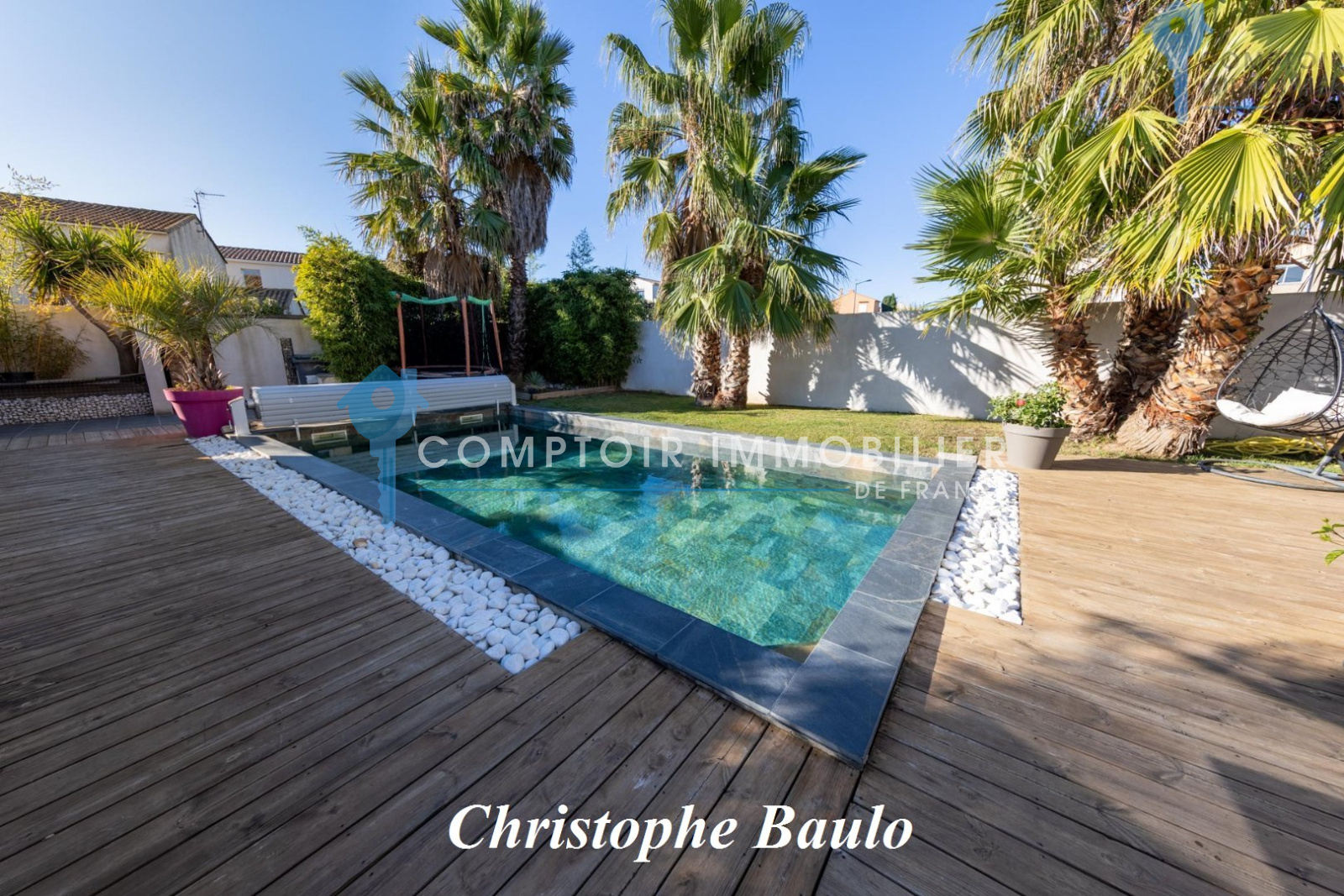 En Exclusivité, à Villeneuve les Maguelone, l'unique village qui bénéficie d'un accès direct à la plage et qui est à dix minutes de Montpellier (accès autoroute A9). Dans un quartier résidentiel, en zone non inondable et à deux pas des commerces ! Cette maison de plus de 280 m² comprend un appartement T3 de 80m² avec son jardin et son accès indépendant de la maison. Possibilité de revenus complémentaires non négligeables, près de 10000 euros par an ! La maison bénéficie de nombreux matériaux et matériels de qualité, comme la pompe à chaleur gainable, menuiseries et volets roulants alu, cumulus thermodynamique etc... De beaux volumes vous attendent, le séjour baigné de lumière par la grande baie vitrée exposée plein Sud avec vue sur la piscine, la suite parentale de 37m² bénéficiant d'une double exposition Sud, Sud/Ouest et son accès direct à la terrasse de 35m². Vous trouverez quatre chambres supplémentaires, buanderie, coin bureau, garage. La piscine 8x4 bénéficie d'une triple exposition et se retrouve au milieu d'un magnifique jardin paysagé de type tropical. Bien rare et de qualité. Honoraires charge vendeur COMPTOIR IMMOBILIER DE FRANCE - Christophe BAULO - 06 50 19 71 97 - EI Agent commercial RSAC N° 522 682 475 - Ville du greffe : MONTPELLIER - Plus d'informations sur www.cif-immo.com (réf. 15070)