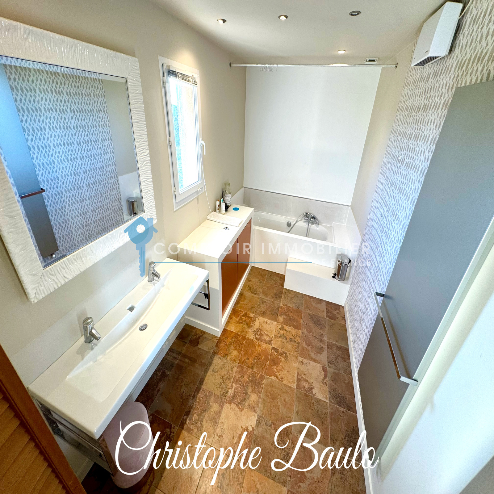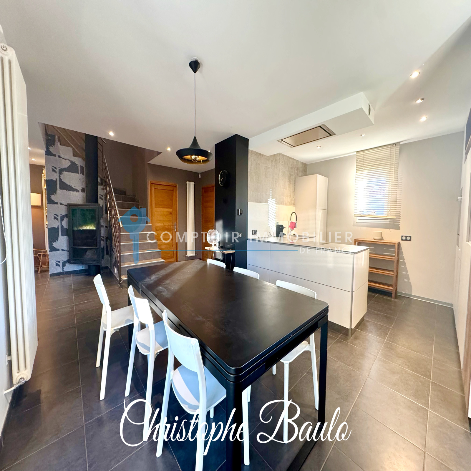 Cette maison située au calme, bien exposée, bénéficie d'un jardin bien arboré et sans vis-à-vis. La maison est non mitoyenne et bénéficie d'un spacieux garage. Au rdc vous trouverez 60m2 de pièce à vivre, une suite parentale et à l'étage une seconde suite parental, deux chambres etc... Vous serez proches des commodités, centre du village , collège, médecins etc…Bien rare et de qualité