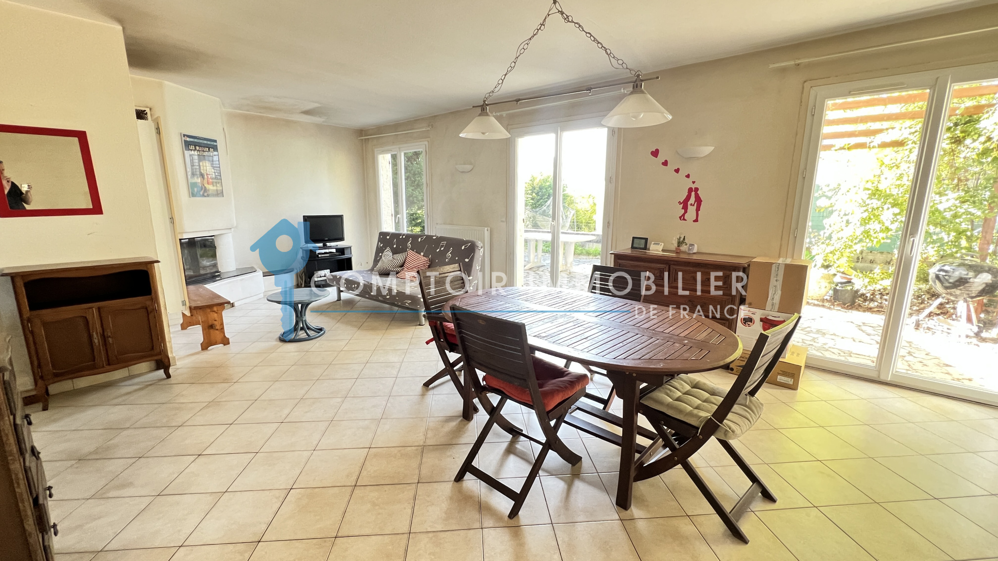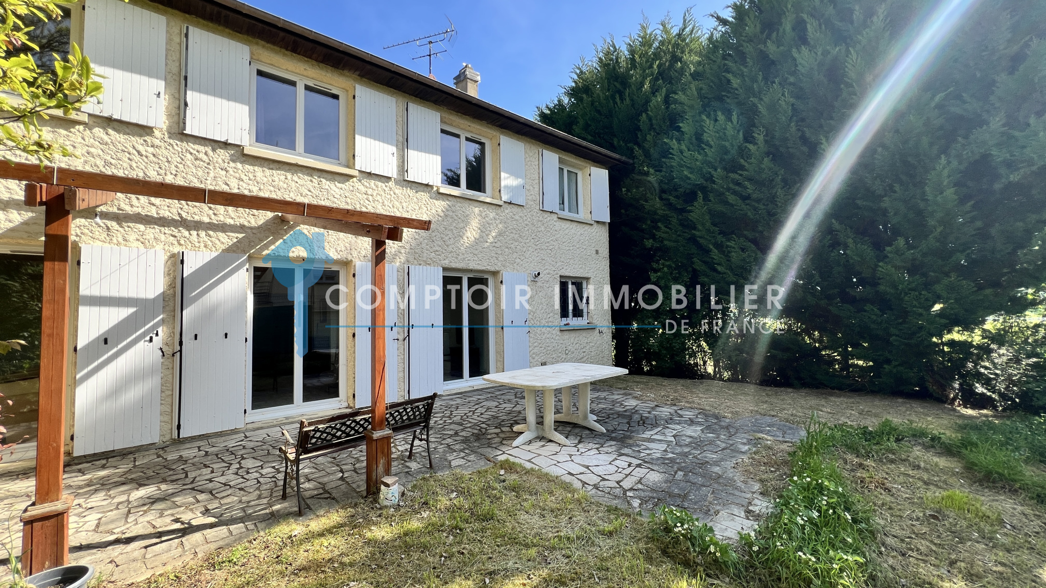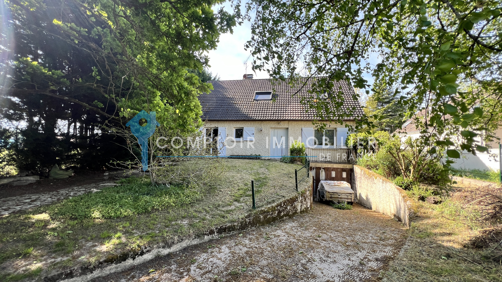 Nainville les Roches - Votre agence CIF Gatinais vous propose en Exclusivité cette maison individuelle d'environ 143m2 avec mode de vie de plain pied et élevée sur sous sol total comprenant au rdc : entrée cathédrale, salon/séjour avec cheminée/insert, cuisine aménagée, une chambre, salle d'eau, wc et buanderie/chaufferie.