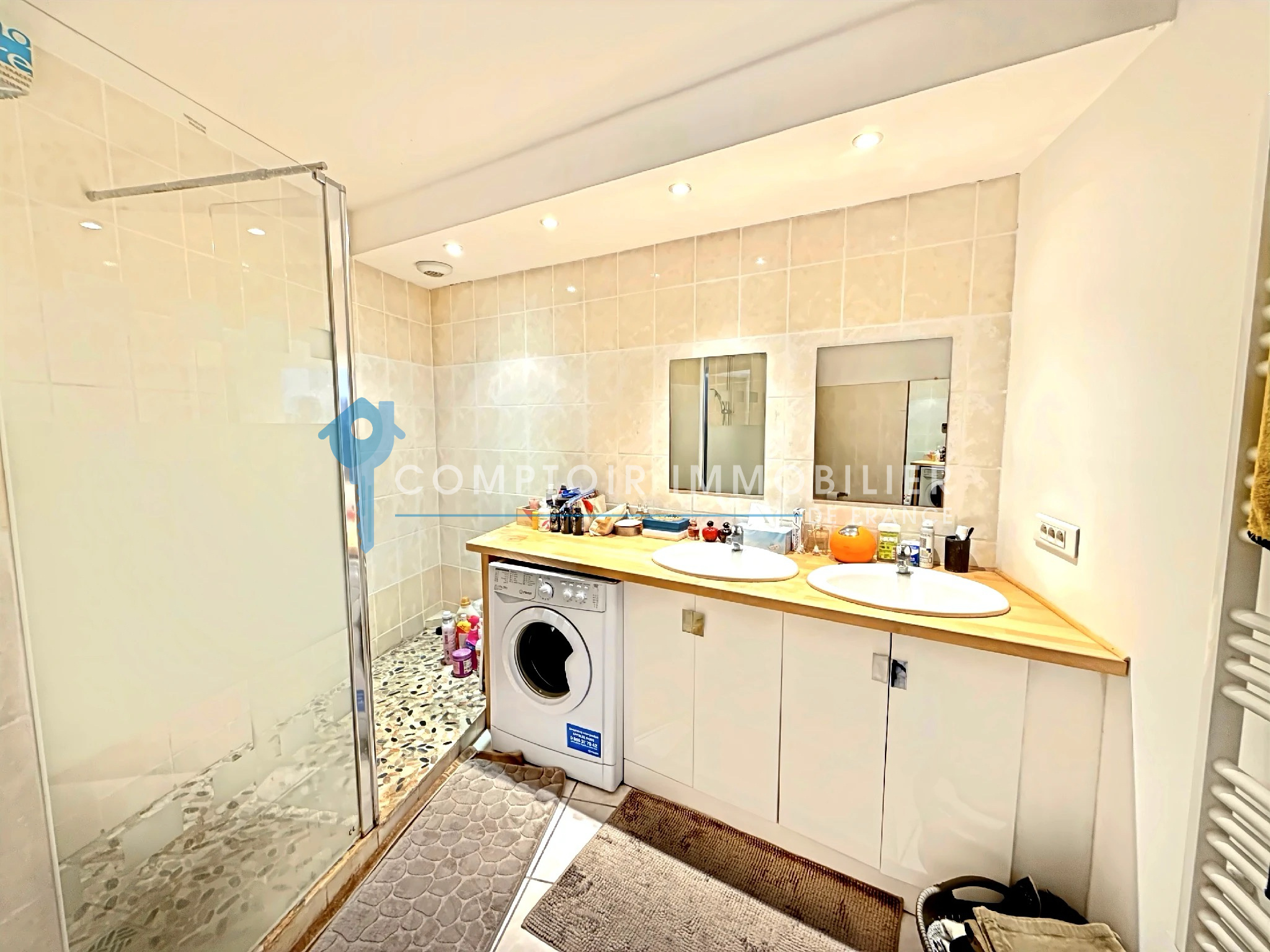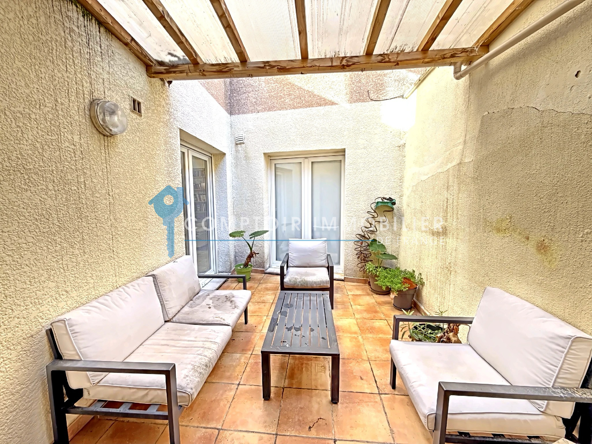 Elle se compose d'une belle pièce de vie avec sa cuisine équipée, d'une chambre, d'une salle d'eau et dispose d'un exterieur rare avec terrasse + un patio semi-couvert de 12 m2 . De plus elle dispose d'une place de parking couverte .
