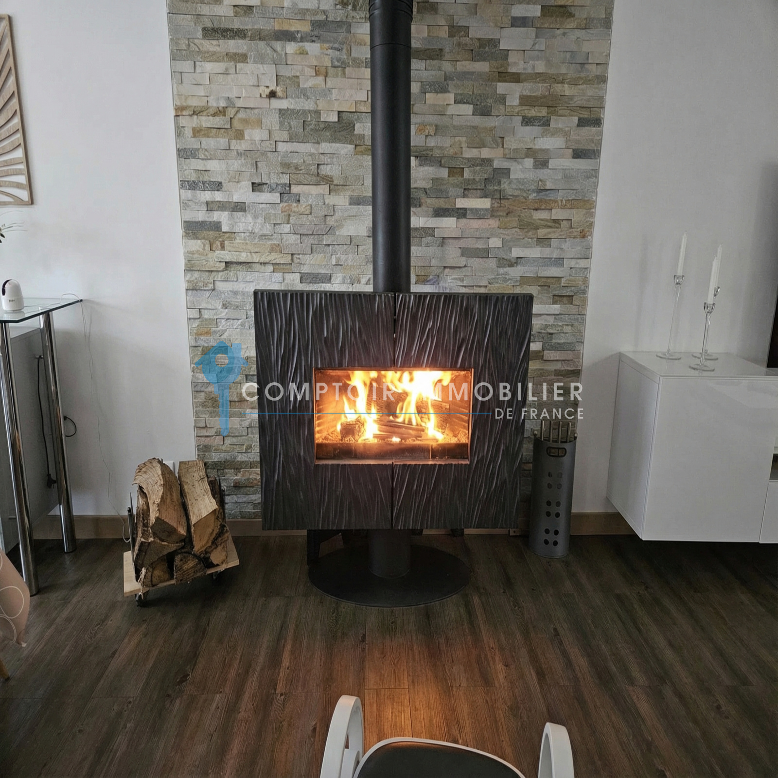 Le chauffage est assuré par un système central au fuel, complété par une cheminée bois, apportant un confort appréciable en hiver.