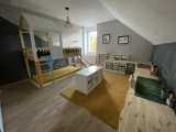 Entrée 1 bureau, grand salon séjour cuisine équipée, accès terrasse,1 sdb (Baignoire douche italienne wc)