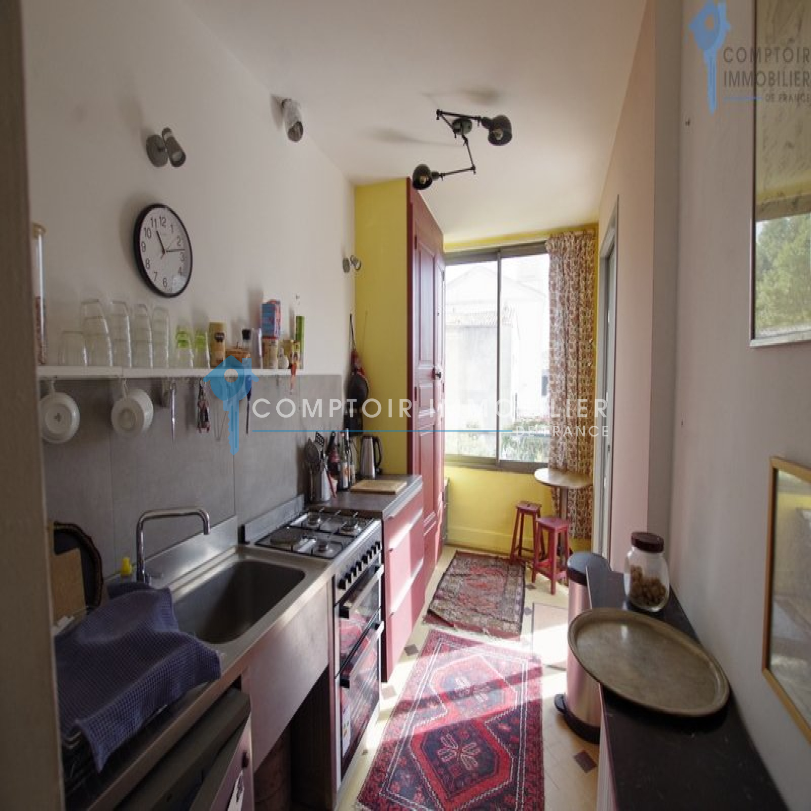 Et coté gauche, un T2 de 40 m2 comprenant un séjour donnant sur un balcon avec coin cuisine de 25 m2, une salle d'eau avec WC et une chambre.