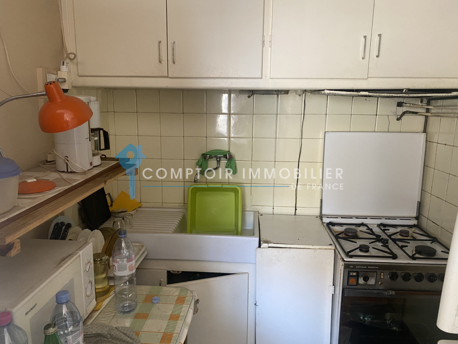 à l'étage une cuisine ouverte sur le salon, 1 chambre,1 sde .