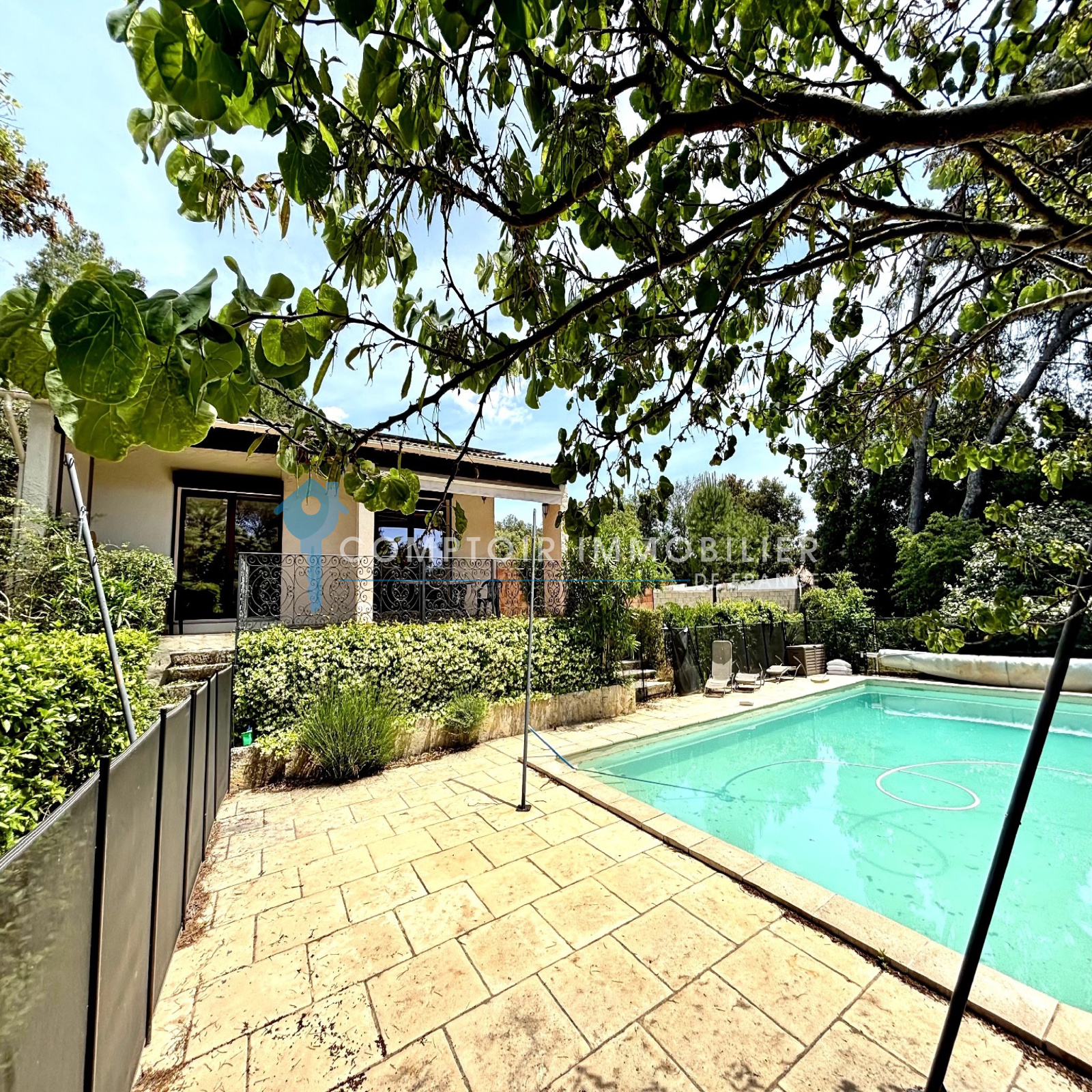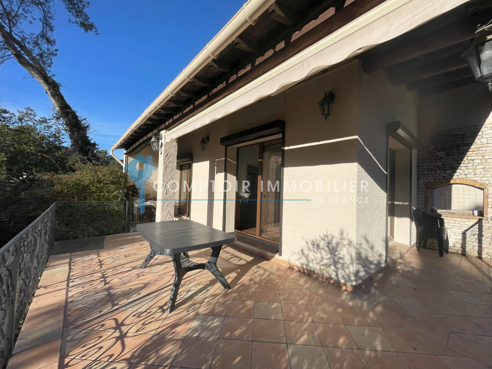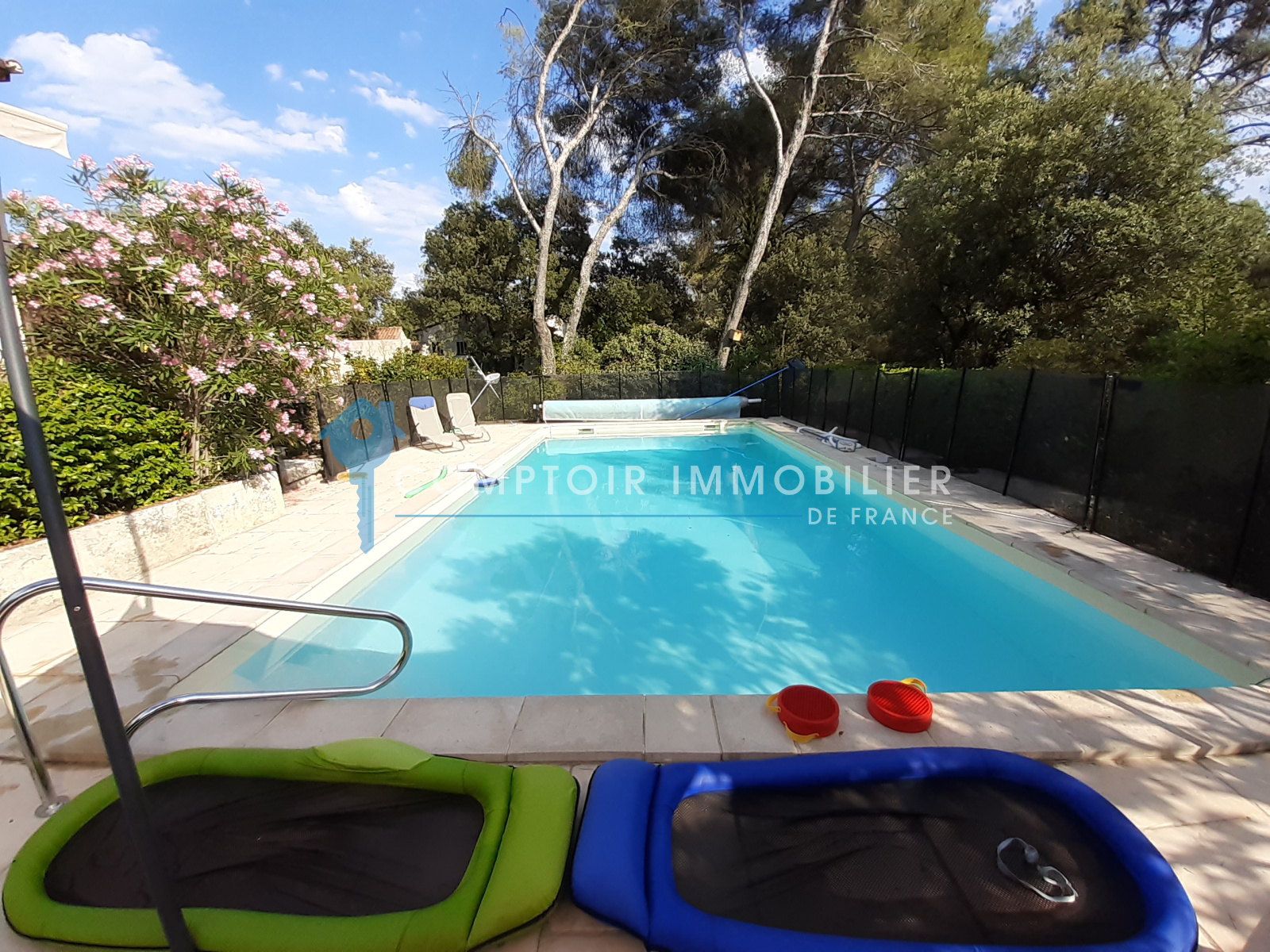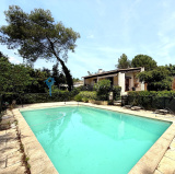 Aux abords d'une garrigue classée, dans une impasse, venez découvrir cette villa traditionnelle bâtie sur une parcelle entièrement clôturée, arborée d'essences méditerranéennes d'environ 1420m2, avec possibilité de stationner deux véhicules. Sa grande pièce de vie cathédrale avec cheminée insert, est ouverte sur la cuisine équipée totalisant 55m2, ce qui vous assurera convivialité en famille ou entre amis. Des placards intégrés et neufs offrent de nombreux espaces de rangement. La maison bénéficie de la climatisation réversible dans toutes les pièces. Les terrasses côté salon et cuisine sont agréables et spacieuses. Cette villa est équipée en RdC d'une suite parentale de 21 m2, en étage d'une seconde chambre avec salle d'eau avec toilette et d'un coin bureau en mezzanine. La villa bénéficie également en RdC d'un appartement attenant et communiquant composé d'une suite parentale, cuisine équipée et une entrée indépendante. Les trois salle d'eau avec toilettes, le toilette de l'entrée et le célier sont équipés de la VMC. A l'extérieur l'espace piscine 10X5 avec traitement au sel est sécurisée et sans vis à vis. Les terrasses côté salon et cuisine sont agréables, spacieuses et couvertes.