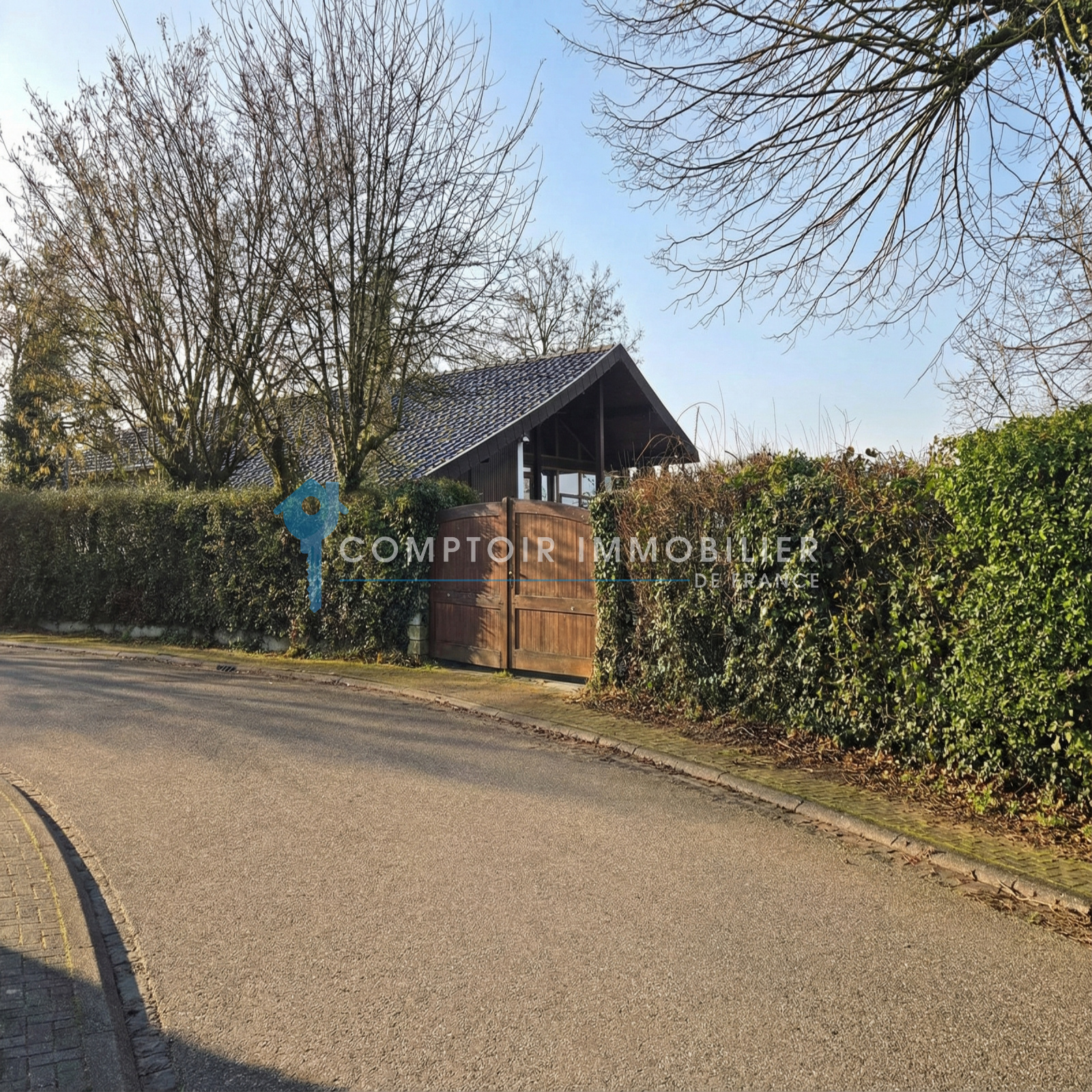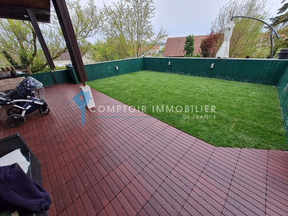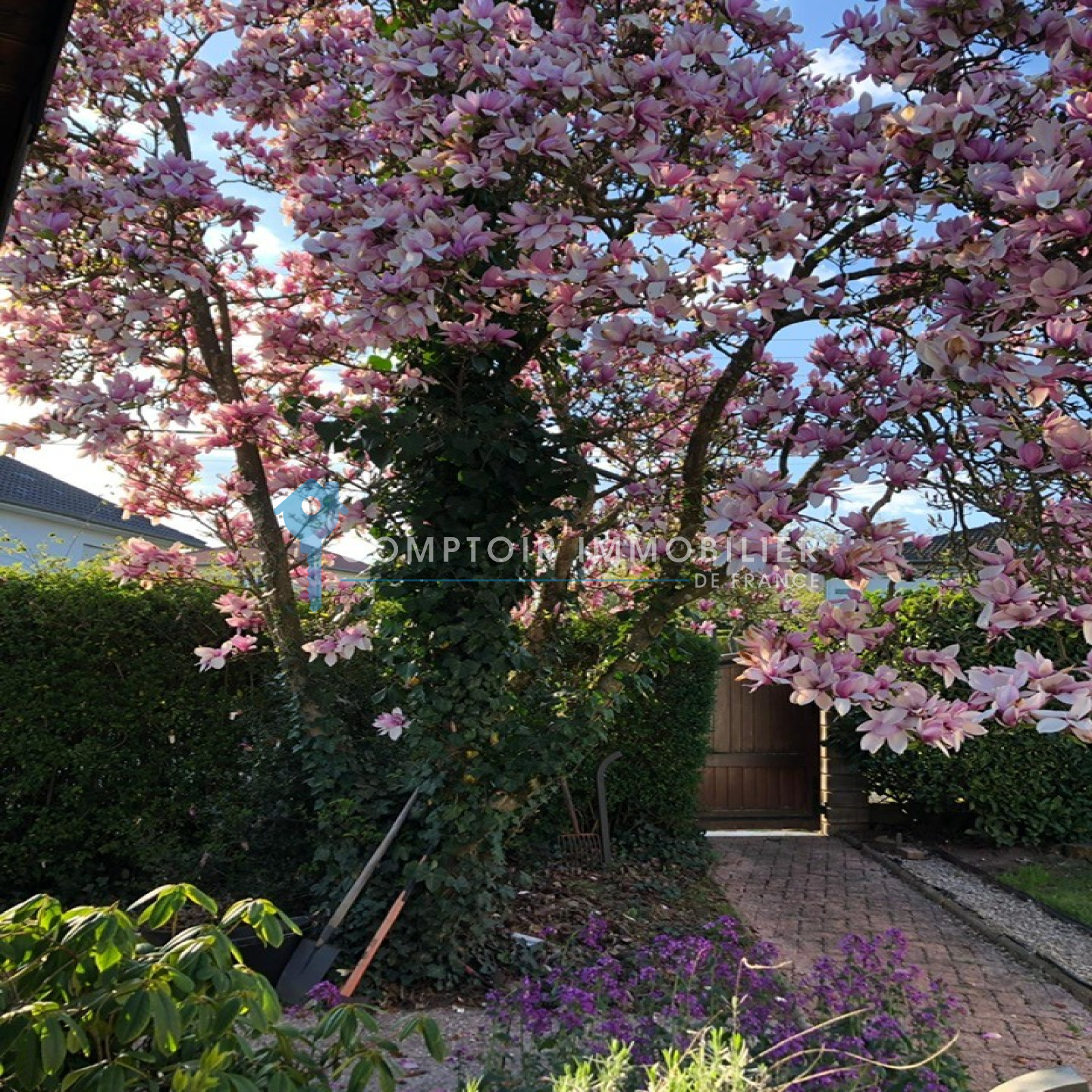 Accès terrasse jardin clos et arboré.