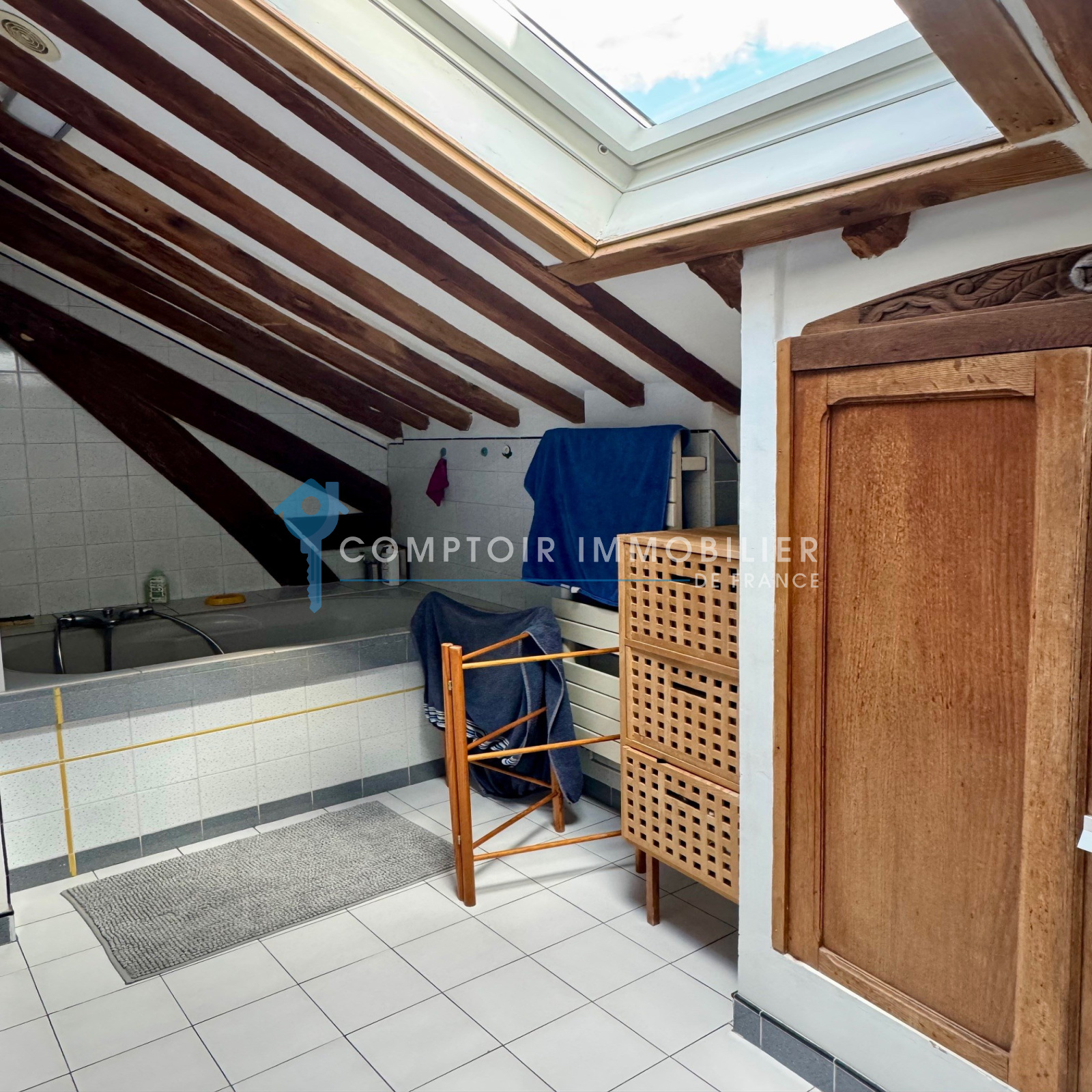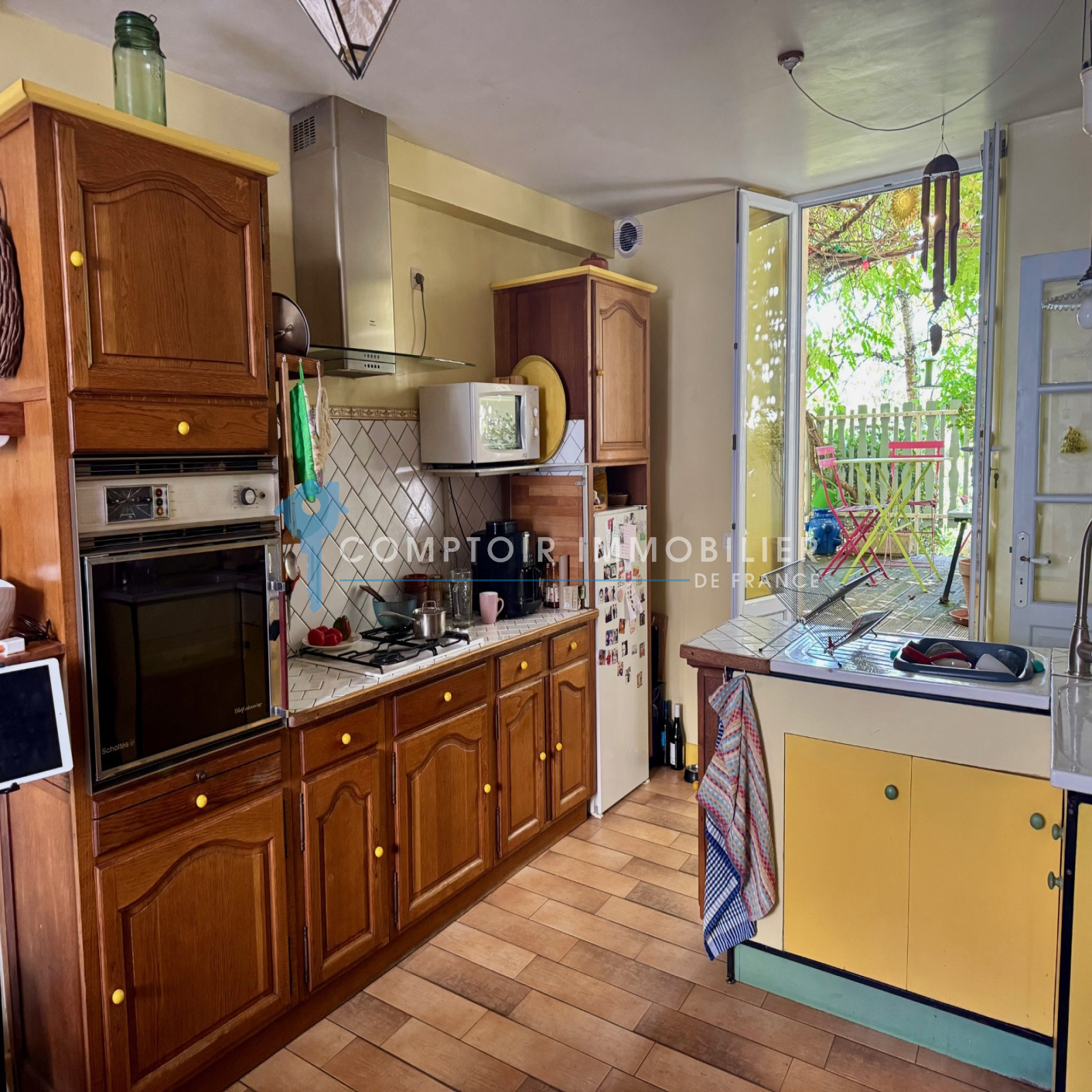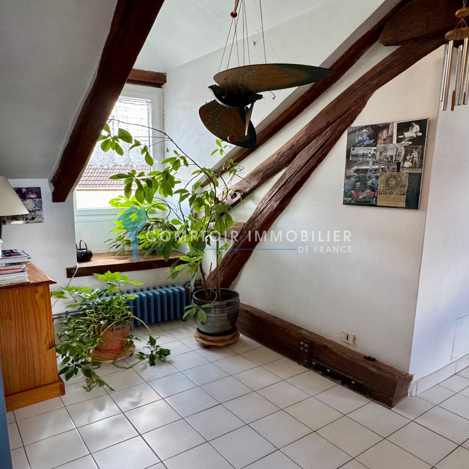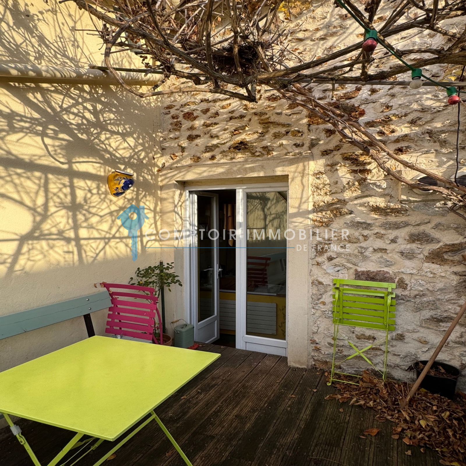 Dept (91) Essonne - A Vendre à Corbeil-Essonnes secteur Moulin Galant - MAISON DE VILLE 99 m² avec cave totale et grand garage. Idéalement située à 5 minutes à pieds de la gare et des écoles, cette charmante maison de ville se compose au rdc d'une entrée, un séjour de 24 m², une cuisine de 22 m² avec accès à une jolie terrasse arborée et au calme, une chambre. A l'étage un palier dessert 2 grandes chambres, une salle de bain et un wc séparé. Une cave en sous-sol de 47 m² divisée en une buanderie, un atelier, une pièce et en plus un garage de 20 m². Chauffage au gaz (chaudière à condensation combinée avec des panneaux solaires), fenêtres PVC en double et triple vitrage, volets roulants à l'étage. Accès à une cour commune avec jardin. Le charme de l'ancien proche des commodités!