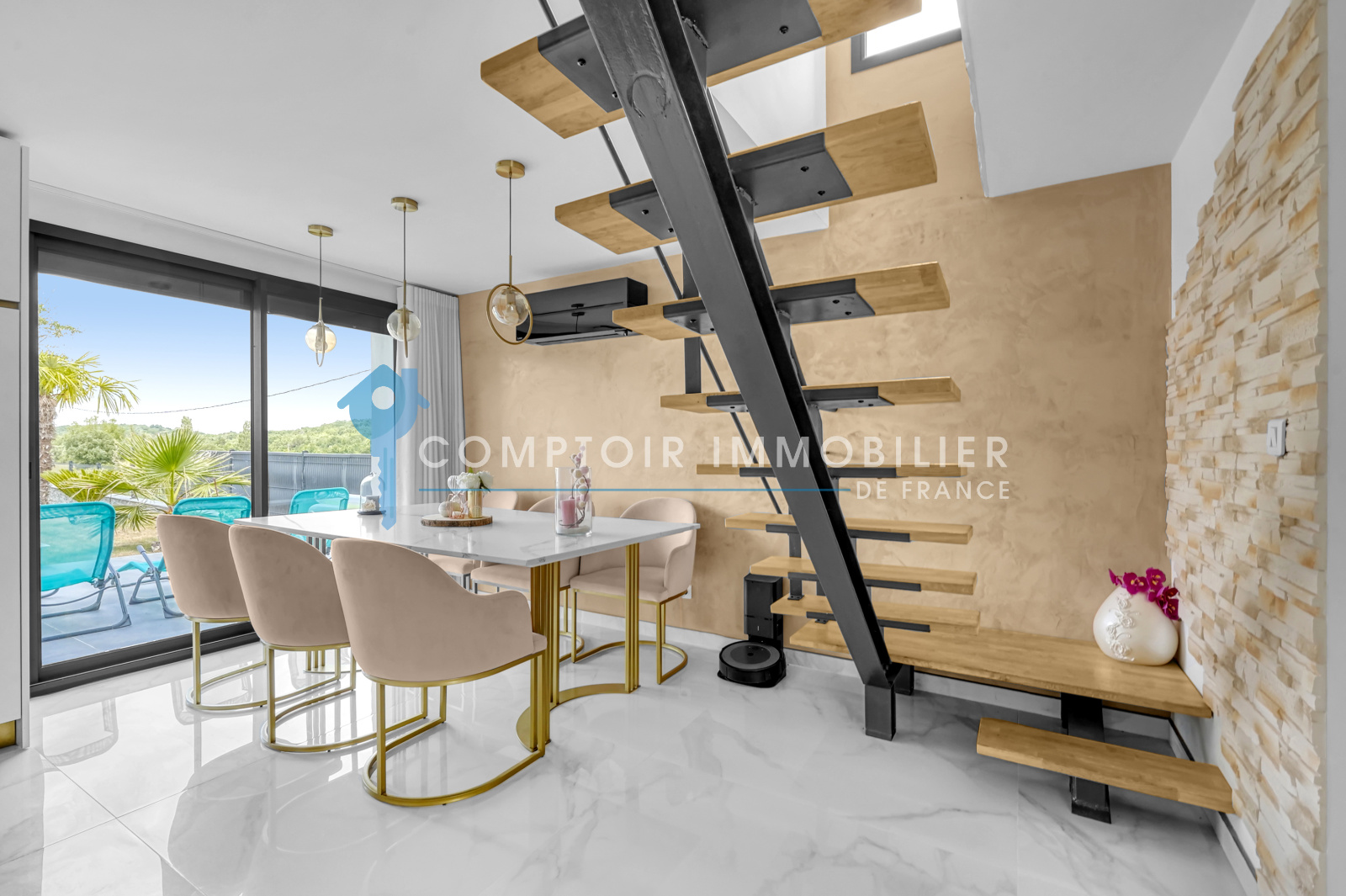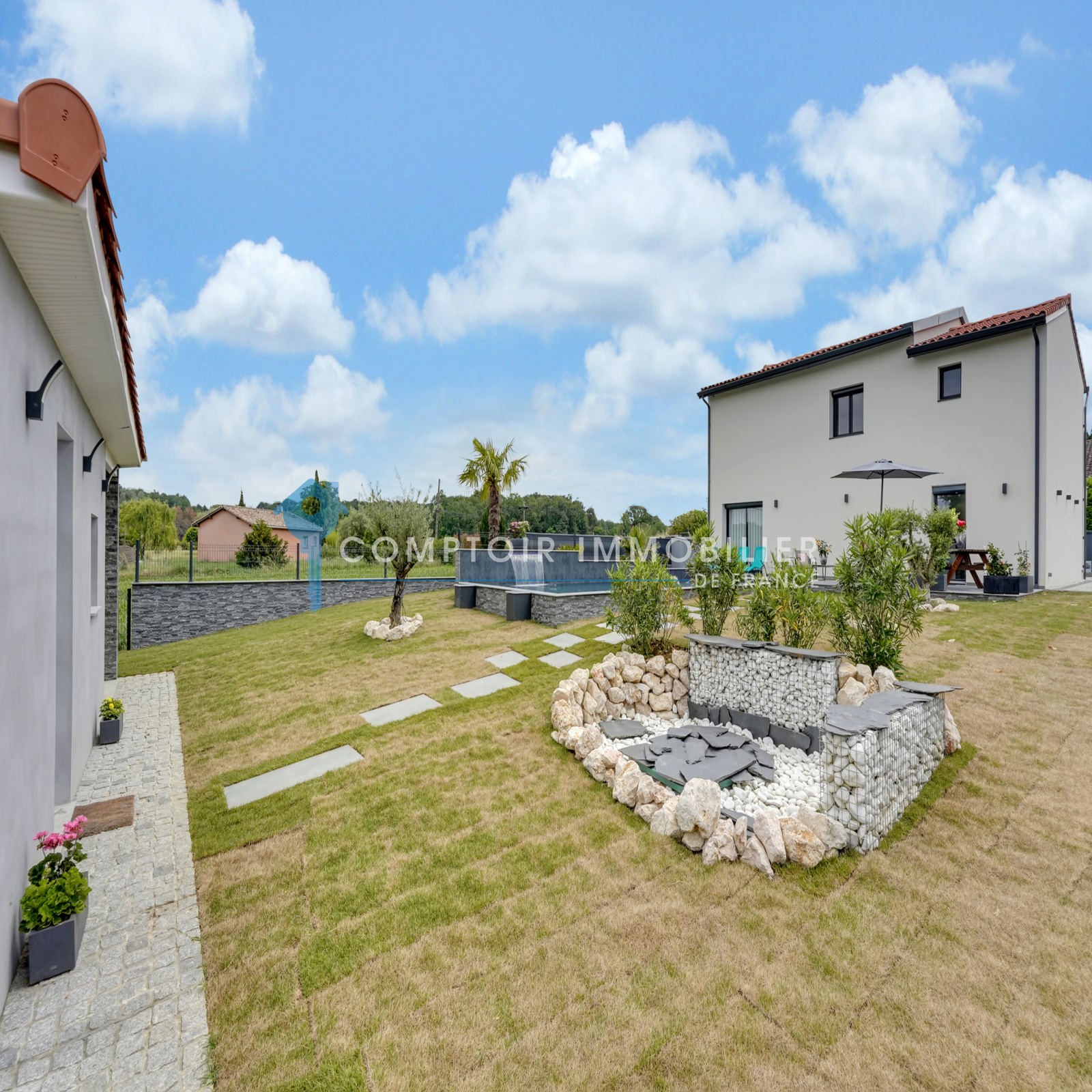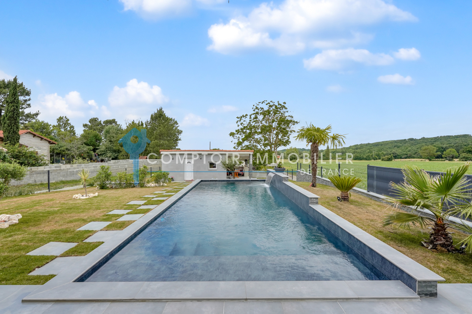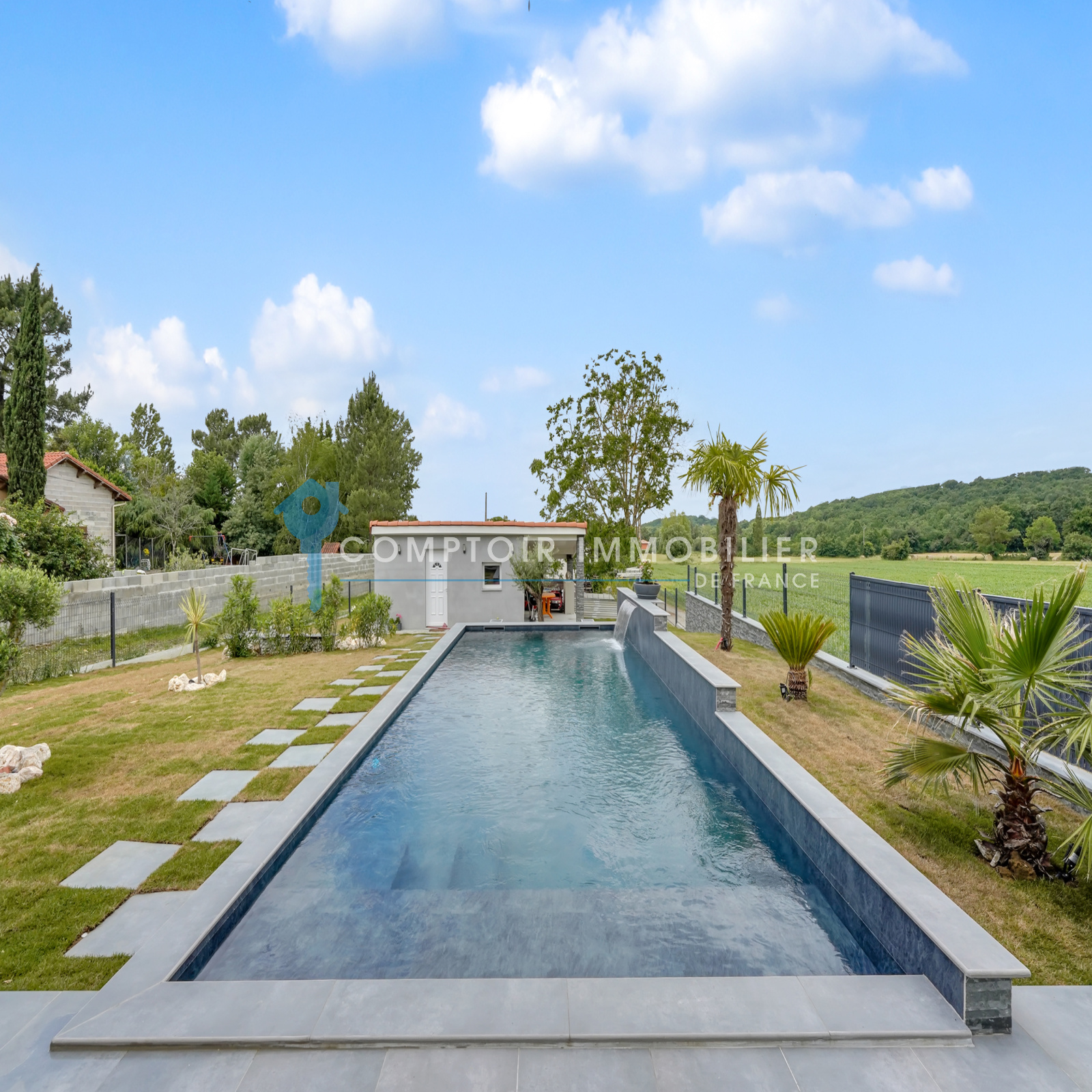 Magnifique villa 6 pièces au calme et aux prestations haut de gamme. L'intérieur compte un vaste hall d'entrée équipé de nombreux rangements, un espace de vie lumineux avec cuisine ouverte équipée et cellier/buanderie attenant, un bureau, un espace nuit comprenant 4 chambres dont une suite parentale avec grand dressing. Pour votre bien-être, ses 2 salles de bain représentent un point de confort indéniable. La surface habitable développe environ 165m². La construction s'est achevée en 1970 et la rénovation date de 2021, dans un environnement où la quiétude et la campagne vous raviront. Vous disposerez d'une terrasse spacieuse donnant sur une magnifique piscine miroir avec cascade dotée d'un remplissage automatique. Un studio indépendant avec cuisine et salle d'eau vous permettra d'accueillir aisément et en toute autonomie votre famille et amis. Un terrain au calme de 1117m². Arrêt de bus à proximité. La propriété vous fait profiter d'une aire de parking privative pour garer plusieurs voitures et un carport. Le prix est de 425 000 €. COMPTOIR IMMOBILIER DE FRANCE - Nathalie ADJEDJ - O6 68 10 98 25 - EI Agent commercial RSAC N° 880 159 652 - Ville du greffe : TOULOUSE - Plus d'informations sur www.cif-immo.com (réf. 17444) Honoraires charge vendeur