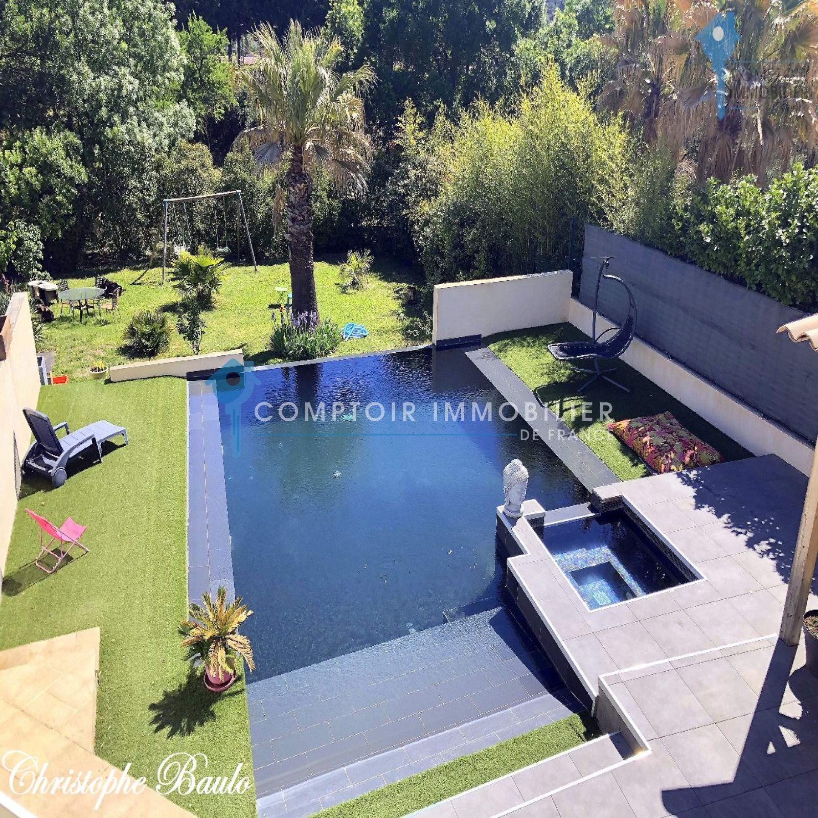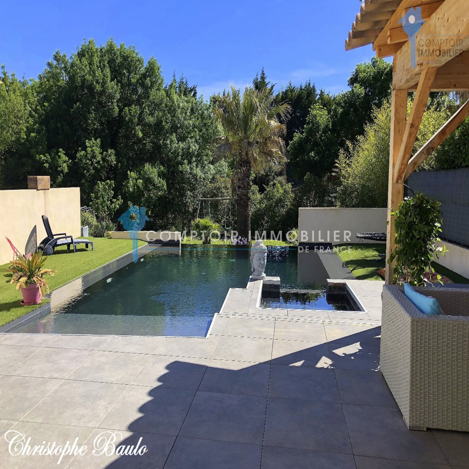 En Exclusivité, à 5 minutes de Montarnaud, située au calme, en zone non inondable, exposée plein Sud et sans vis-à-vis. Rare et unique, cette villa d'architecte récente de 160m² quasiment de plain-pied saura vous séduire par ses nombreuses prestations haut de gamme, comme le raffraîchissement et chauffage au sol par pompe à chaleur, l'aspiration centralisée, l'alarme etc... Vous apprécierez certainement la cheminée insert se trouvant dans le séjour cathédrale qui lui-même bénéficie d'une agréable vue sur l'espace piscine. Le terrain de plus de 1000 m² est agrémenté par un magnifique jardin paysagé, une piscine à débordement chauffée avec un jacuzzi intégré !! Le pool house vous permettra de faire de bonnes grillades pour les repas en famille et entre amis. A noter que vous bénéficierez d'un garage de plus de 140 m², ceci vous permettant de rentrer plusieurs véhicules, faire une salle de sport, salle de jeu, bricoler etc...De nombreuses surprises vous attendent encore, ce qui en fait un bien rare et de qualité. COMPTOIR IMMOBILIER DE FRANCE - Christophe BAULO - 06 50 197 197 - Plus d'informations sur www.cif-immo.com (réf. 10149) Honoraires charge vendeur