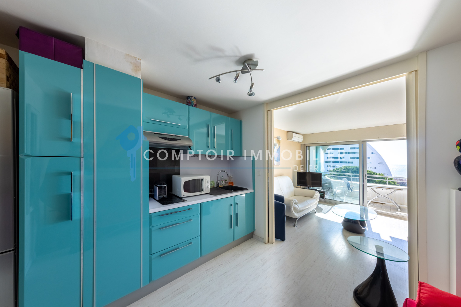 D'une superficie de 28 m², ce studio lumineux et moderne se compose d'une pièce de vie optimisée avec un espace nuit, une cuisine équipée et aménagée avec goût, ainsi qu'une salle d'eau contemporaine. Une grande baie vitrée ouvre sur une terrasse de 7M² où vous pourrez profiter d'une vue panoramique sur la Méditerranée.